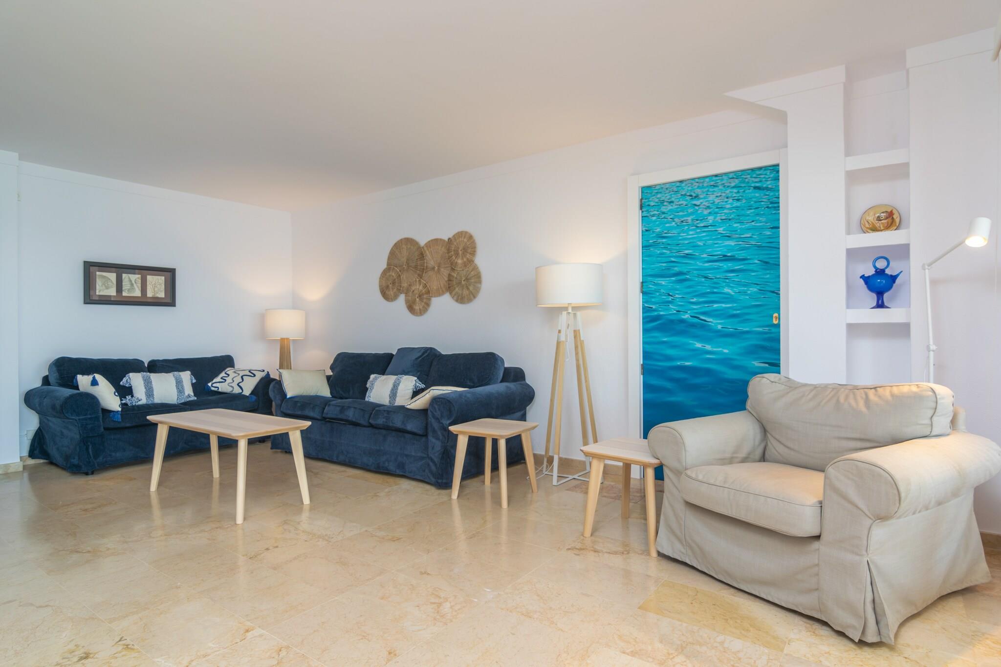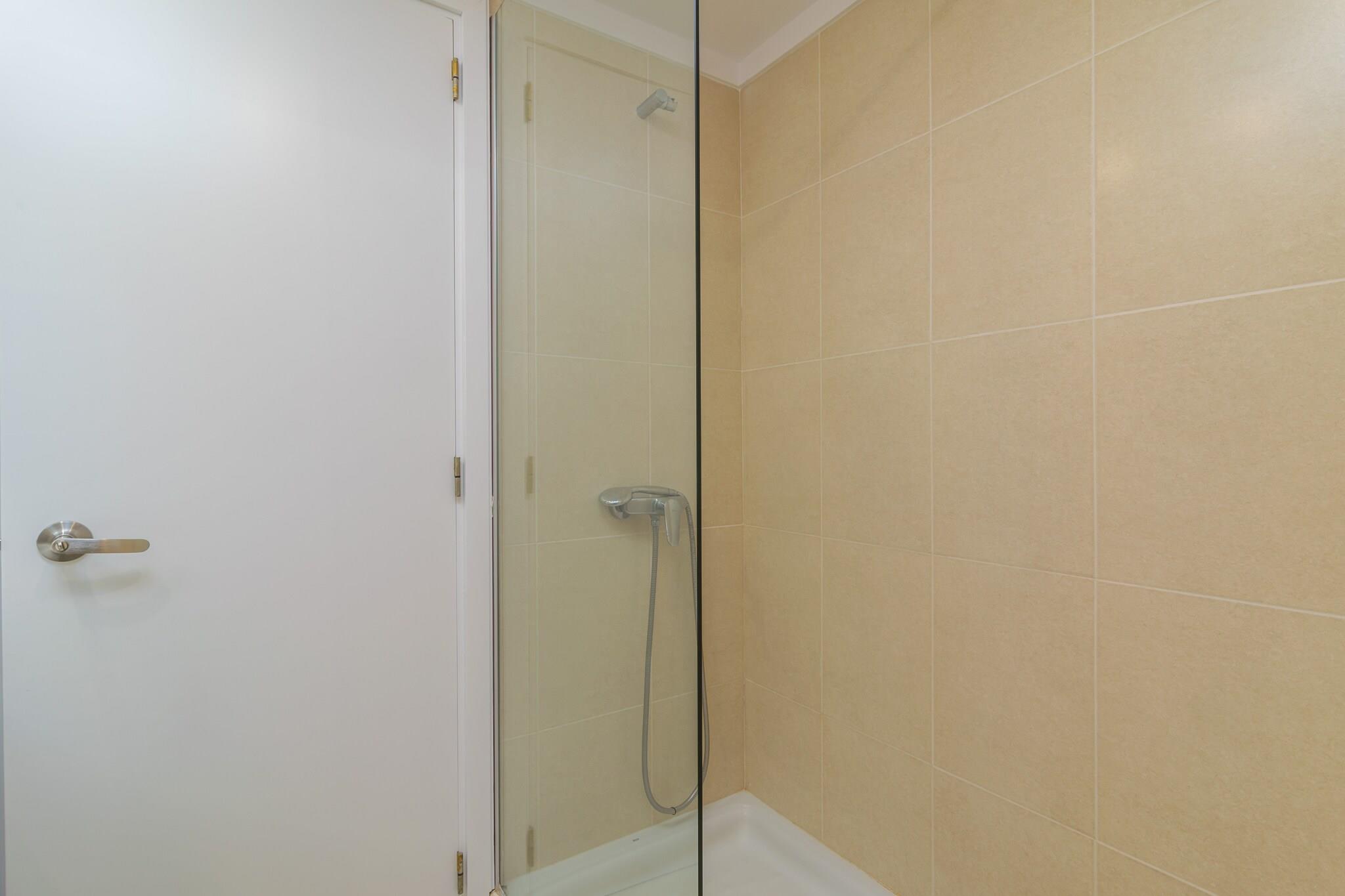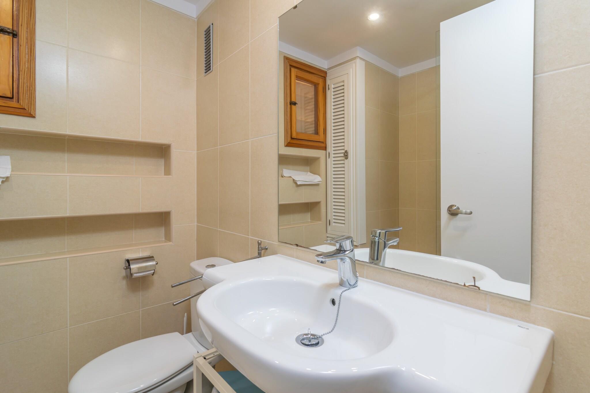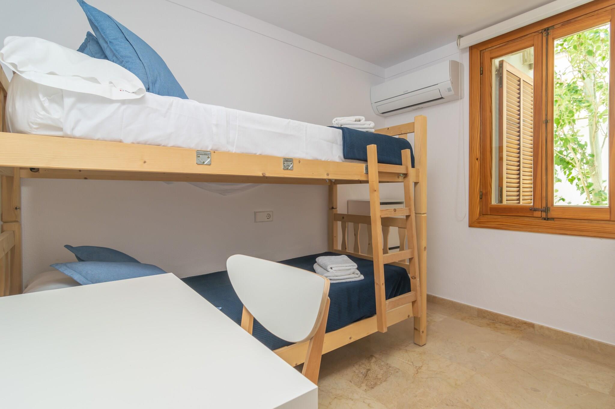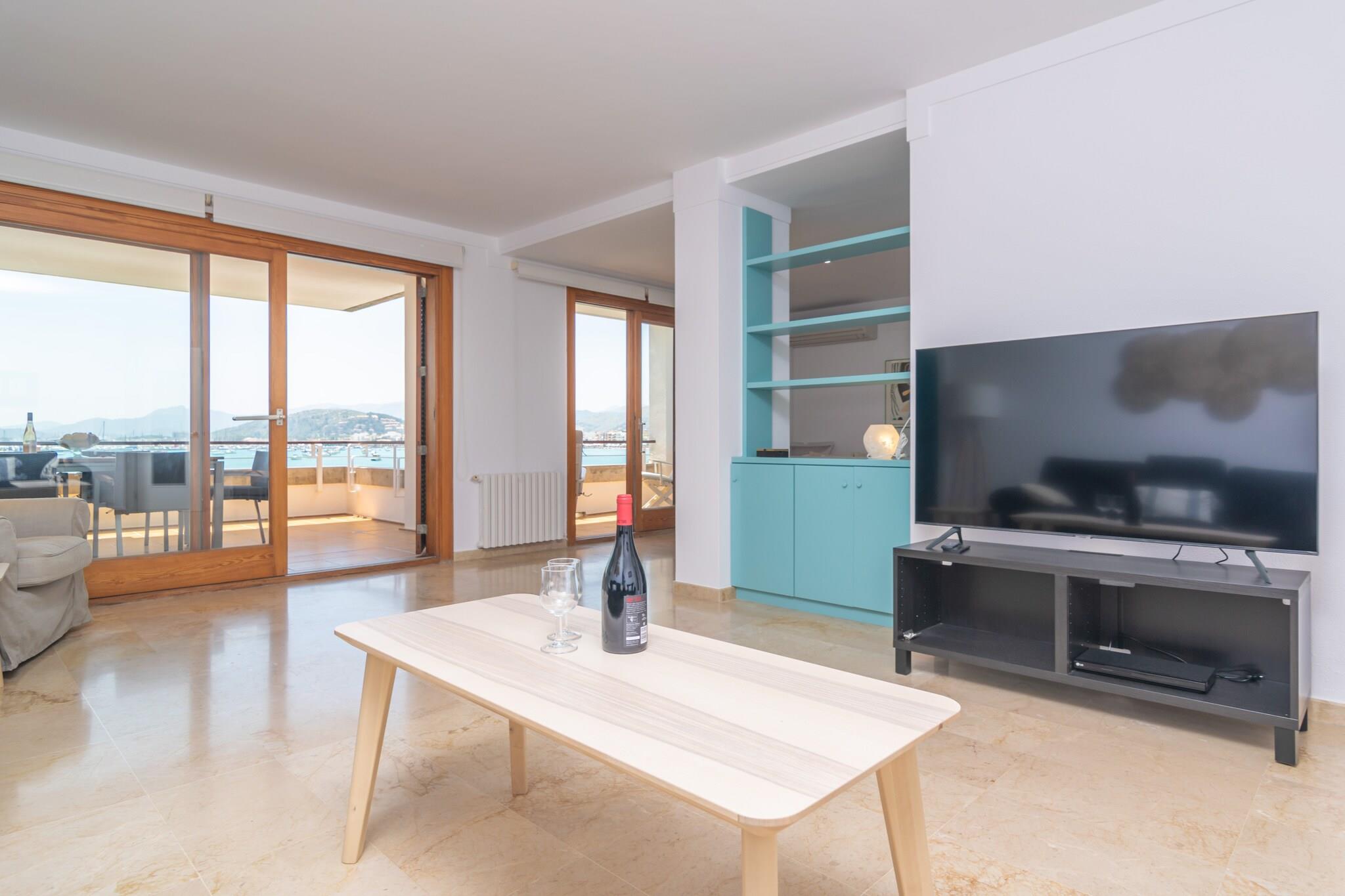 Begynd din dag med morgenmad på terrassen, hvor du kan nyde panoramaudsigten over Middelhavet og de nærliggende bjerge. Udendørsområdet er perfekt til solbadning, afslapning med en drink eller til at nyde måltider med sine kære. Lejligheden ligger i en bygning og har direkte naboer, men tilbyder et fredeligt tilflugtssted. Indvendigt er lejligheden i et plan smagfuldt indrettet og designet til komfort. Den lyse stue/spisestue har AC og et Smart TV, mens det uafhængige køkken er udstyret med en keramisk kogeplade og alle nødvendige redskaber. Der er også vaskemaskine, strygejern og strygebræt. De tre soveværelser med aircondition inkluderer et med to enkeltsenge og adgang til balkon, et med en dobbeltseng og en-suite bruser og et med en køjeseng. Et andet badeværelse med bruser og centralvarme fuldender faciliteterne. Babyudstyr er tilgængeligt efter anmodning. Kun 200 meter fra Playa Pollença er lejligheden ideelt placeret for strandelskere og opdagelsesrejsende. Gå en tur langs den naturskønne promenade, nyd lokale restauranter, eller besøg nærliggende perler som Pollença, Alcúdia, Formentor og Cala Sant Vicenç. Kæledyr og arrangementer er ikke tilladt. Udvendig parkering til en bil er tilgængelig. Turistskat og eventuelle gebyrer kan være gældende.