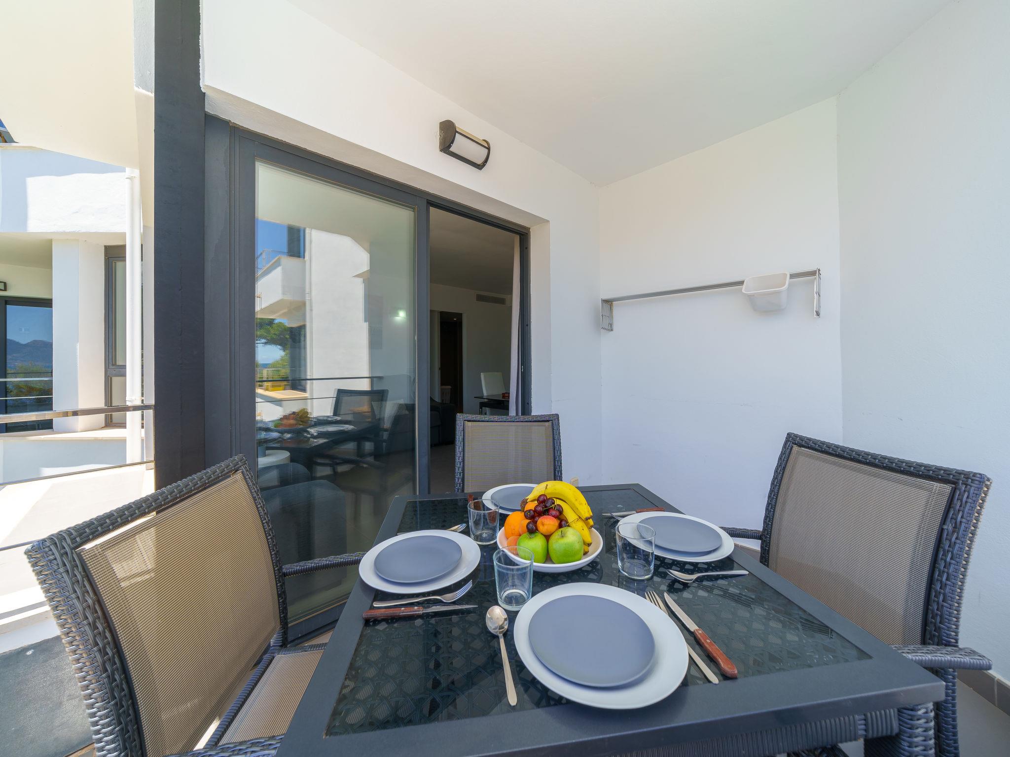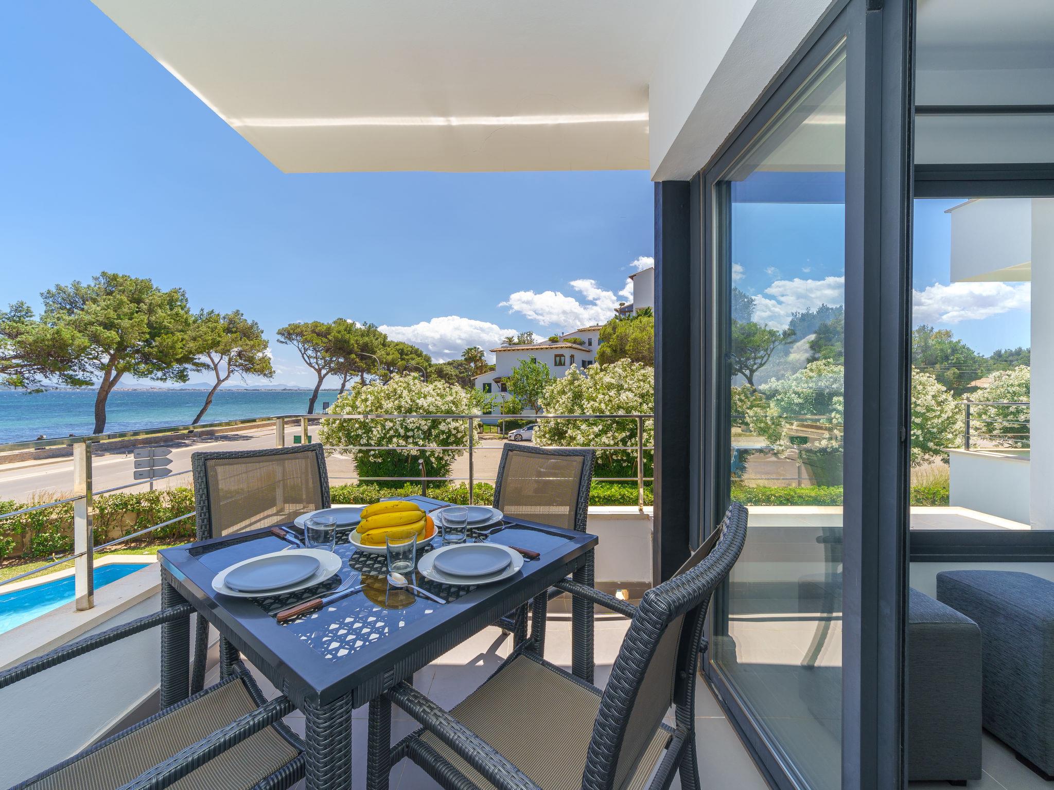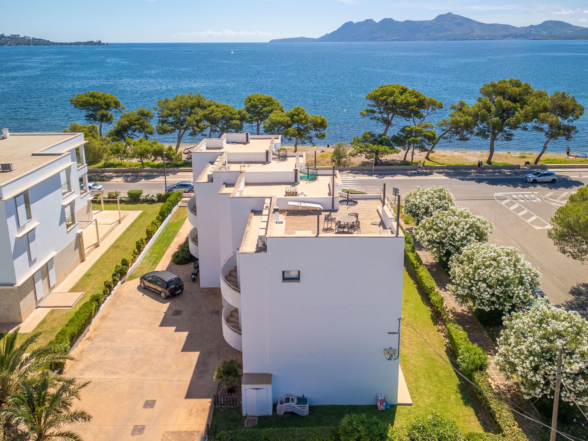 Modern, beautiful, comfortable apartment block "Oratge Beach Views". In the resort 900 m from the centre of Port de Pollença, in a quiet, sunny position, excellent location: right in the centre but still quiet, 2.5 km from the edge of the forest, 10 m from the sea, 10 m from the beach, road to cross. For shared use: garden with lawn, swimming pool (8 x 4 m, depth 40 - 165 cm, seasonal availability: 01.Jan. - 31.Dec.). Outdoor shower. Private: terrace (6 m2). In the house: internet access, WiFi, air conditioning, washing machine. Public car park at 25 m, public parking on the road. Shop 1.2 km, grocery 500 m, supermarket 600 m, restaurant 50 m, bar 100 m, bakery 1.5 km, pedestrian zone 600 m, bicycle rental 900 m, pub garden 50 m, 10 minute walk to the centre, bus stop 500 m, sandy beach 10 m, shingle beach 50 m. Sports harbour 1.7 km, marina 1.7 km, golf course (18 hole) 9.8 km, tennis 2 km, walking paths from the house 1.5 km, cycle lane 1.5 km. Nearby attractions: Pollença Pueblo 6.7 km, Far de Formentor 23 km, Ciudad Romana de Alcúdia 7 km, Playa de Formentor 12 km, Cala Sant Vicenç 11.2 km, Mercado Local Miércoles 8-13h. Hiking paths: Cala Boquer, Atalaya de Alcúdia, Serra de Tramuntana. Please note: no lift. Object suitable for 2 adults. Airfield 66 km from the property. Neighbourhood highly sensitive to noise. Quietness and good behaviour expected.