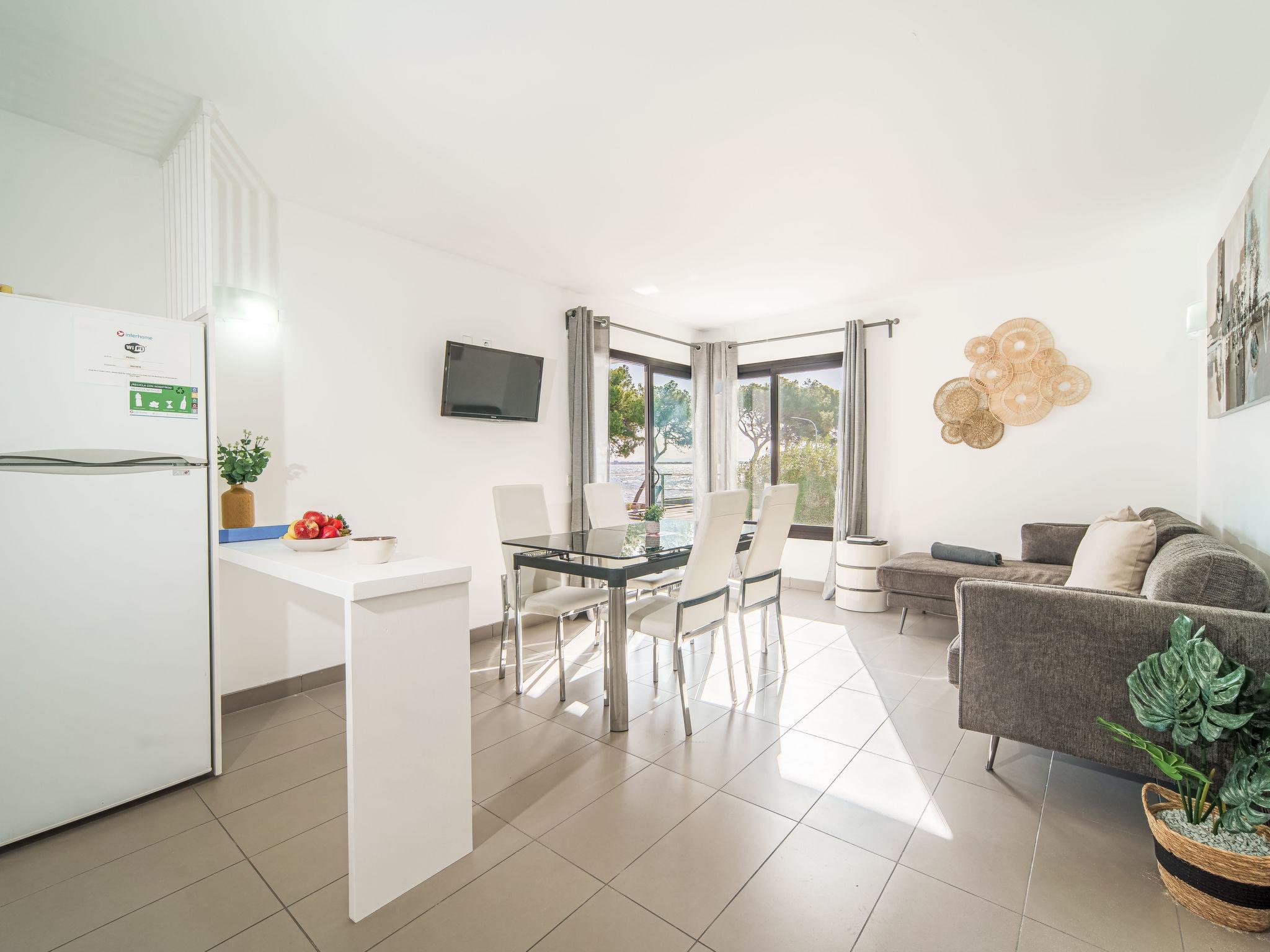 "Oratge Beach Views", 2-room apartment 57 m2 on 1st floor. Object suitable for 2 adults. Practical and comfortable furnishings: open living/dining room with dining table, digital TV, flat screen, air conditioning and forced-air heating. Exit to the balcony. 1 double bedroom with panoramic window with 1 french bed (150 cm, length 190 cm), digital TV, flat screen, air conditioning and forced-air heating. Open kitchen (oven, dishwasher, 3 ceramic glass hob hotplates, toaster, kettle, microwave, freezer, electric coffee machine). Shower/WC. Balcony. Balcony furniture. Marvellous view of the sea, the swimming pool, the countryside and the resort. Facilities: washing machine, iron, children's high chair, baby cot, hair dryer. Internet (WiFi, free). ETVPL/15860 // Reg. Nr.: ESFCTU00000703000015415400000000000000000ETVPL/158602