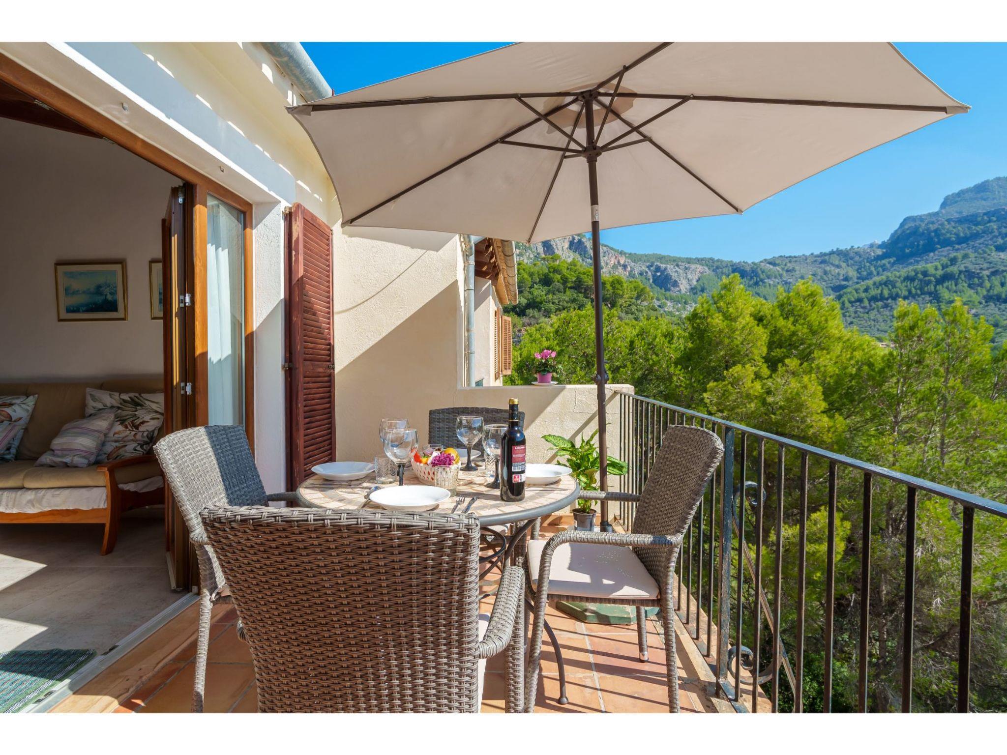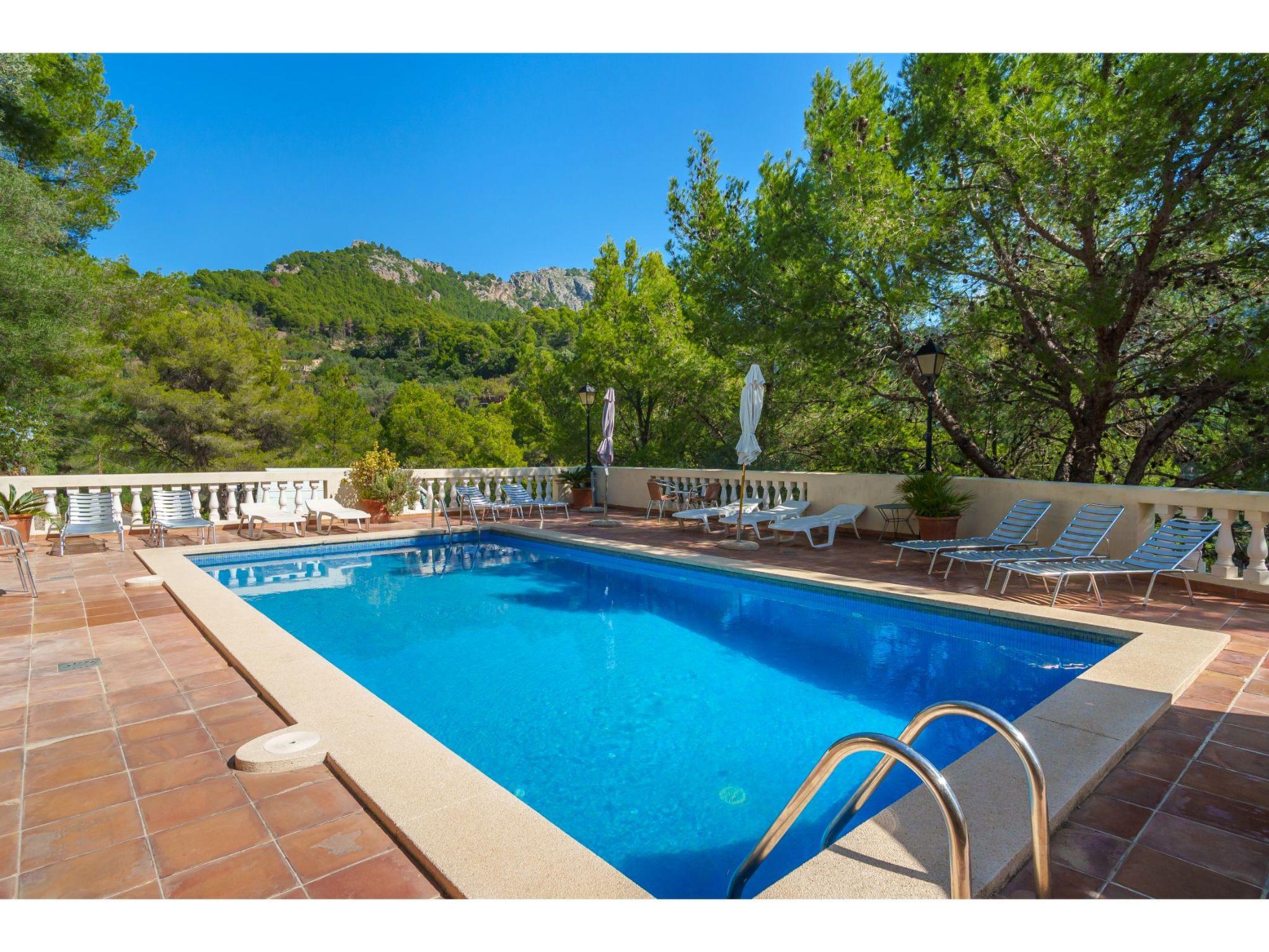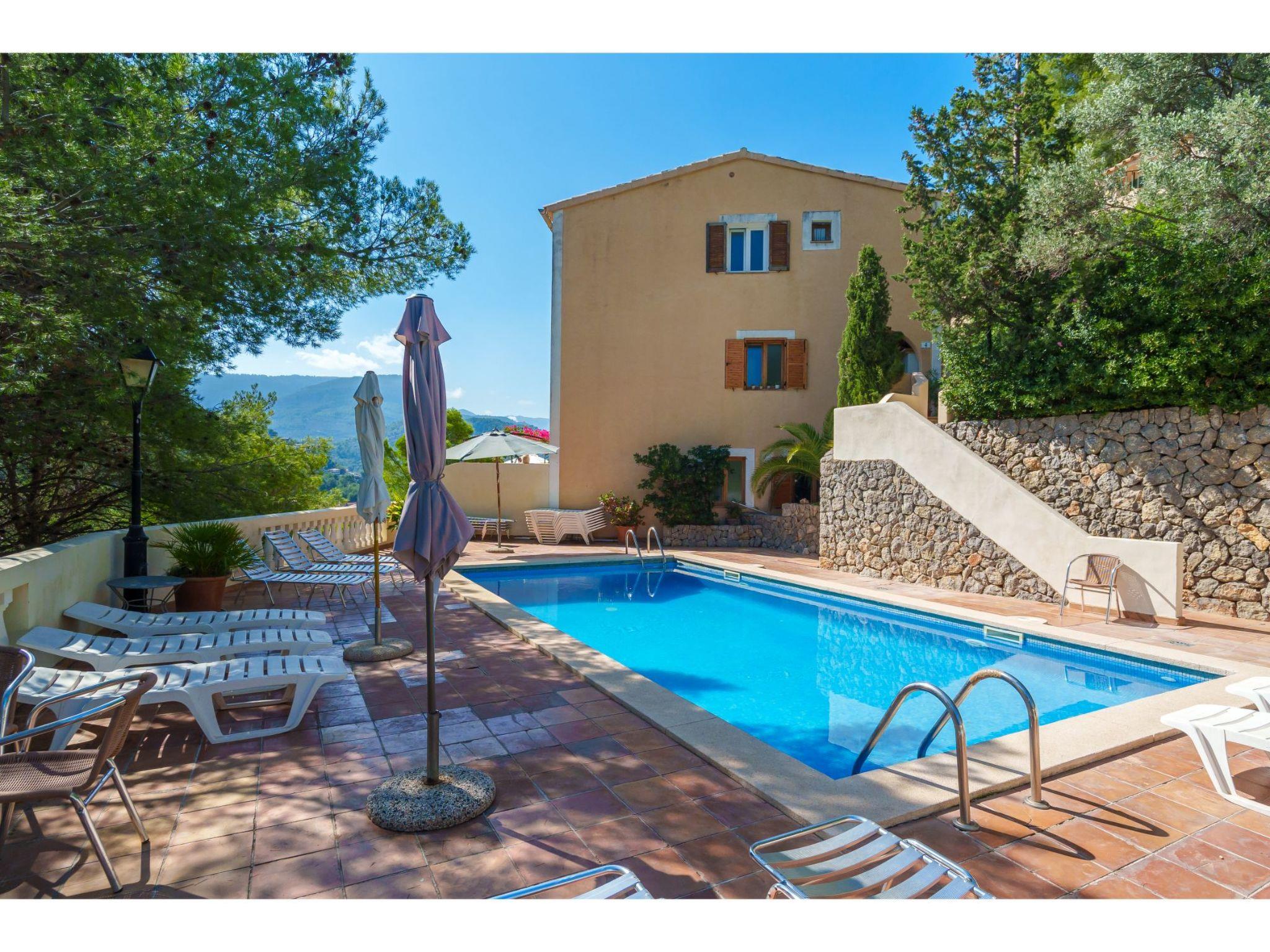 Port de Sóller: Group of 9 apartments, on a slope surrounded by pine trees beautiful, cosy, comfortable apartment block "Can Guillem Sea Views". In the resort 800 m from the centre of Port de Sóller, in a sunny position on top of a hill, 500 m from the edge of the forest, 1 km from the sea, 1.1 km from the beach. For shared use: swimming pool angular (10 x 5 m, seasonal availability: 01.May. - 30.Sep.). Terrace. In the house: internet access, WiFi, washing machine. Steep motor access. Parking at the house on the premises. Grocery 1 km, supermarket 1 km, restaurant 300 m, bar 300 m, 14 minute walk to the centre, bus stop 1 km, sandy beach 1 km. Sports harbour 1.3 km. Please note: suitable for families, suitable for seniors. Object suitable for 4 adults. There are steps to the swimming pool. Sun loungers.