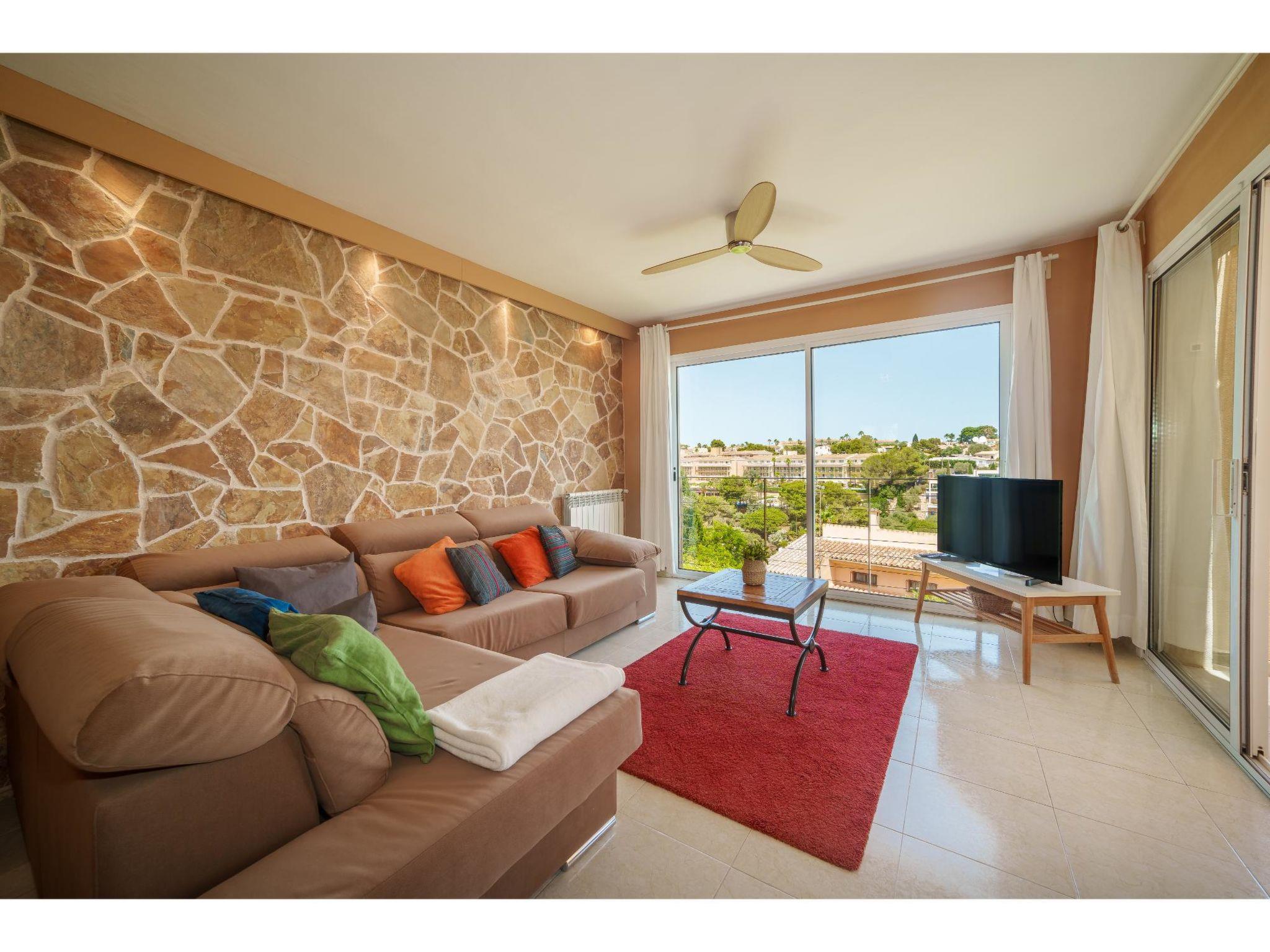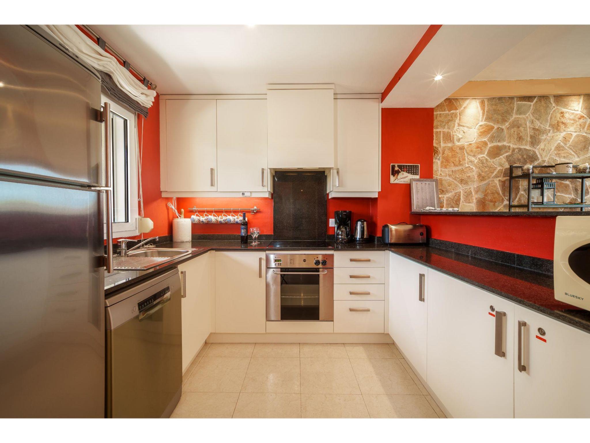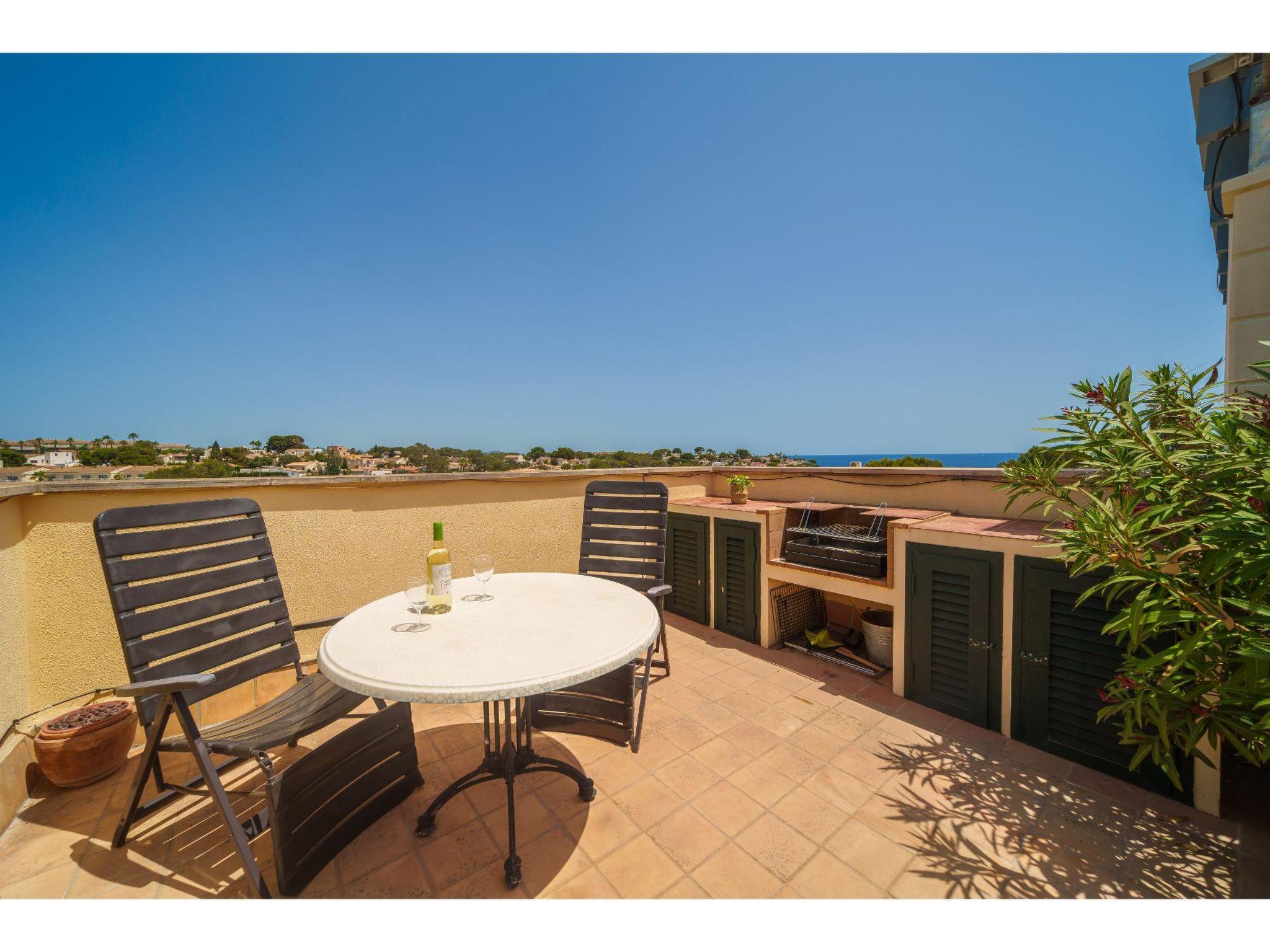 "Penthouse Las Palmeras", 4-room penthouse 120 m2 on 1st floor. Modern and tasteful furnishings: living/dining room with dining table, satellite TV, radio, air conditioning and fan. Exit to the terrace. 1 room with 1 double bed, shower/WC and air conditioning. Exit to the terrace. 1 room with 1 double bed and air conditioning. Exit to the terrace. 1 room with 1 double bed and air conditioning. Open kitchen (oven, dishwasher, 4 ceramic glass hob hotplates, toaster, kettle, freezer, electric coffee machine). Bath/WC. Heating. 2 terraces. Terrace furniture, deck chairs. Marvellous view of the sea. Facilities: washing machine, safe, children's high chair, baby cot, hair dryer. Please note: suitable for families. Non-smokers only. Smoke alarm. ETVPL/13615 // Reg. Nr.: ESFCTU00000702300085705700000000000000000ETVPL/136154