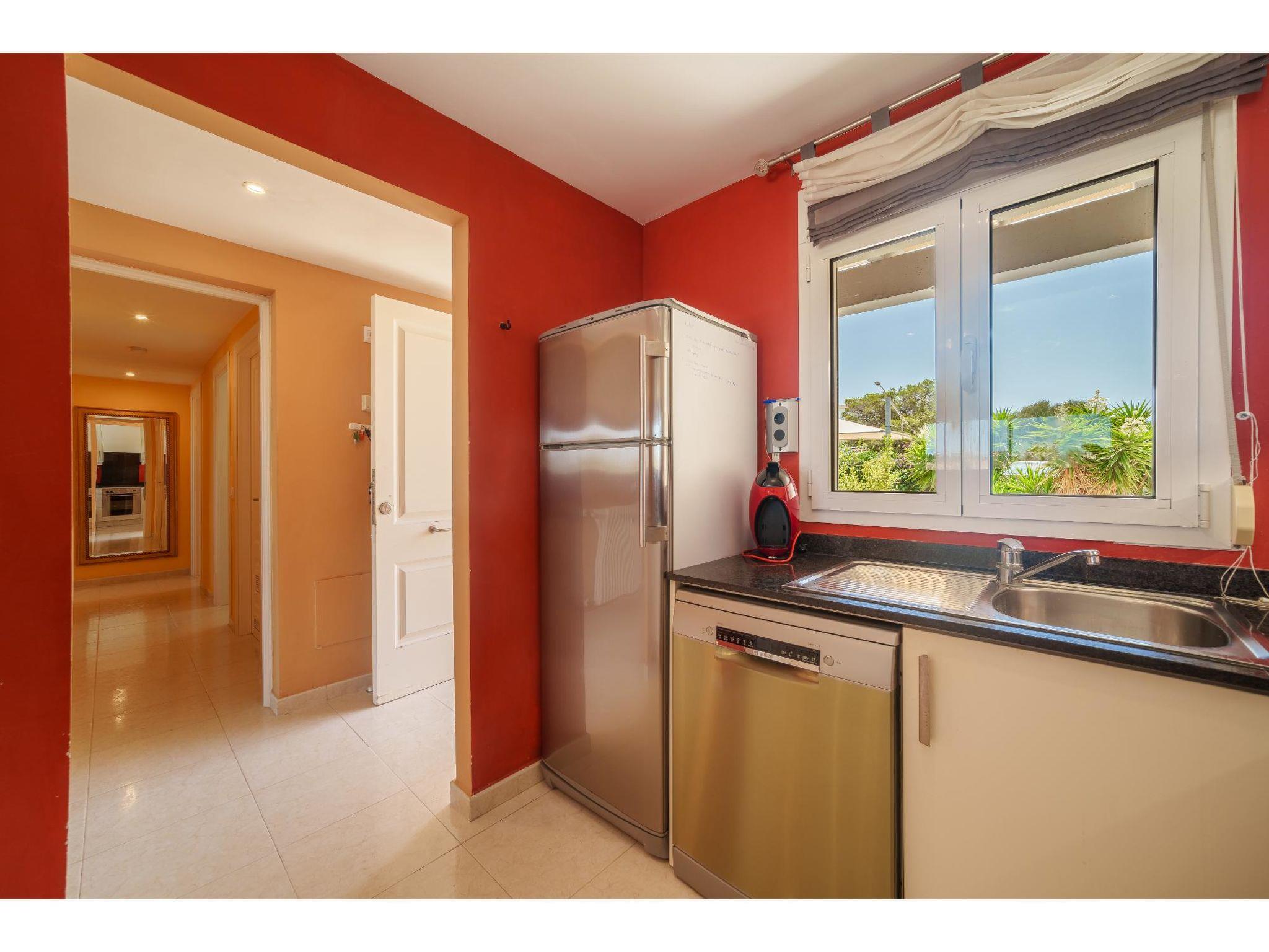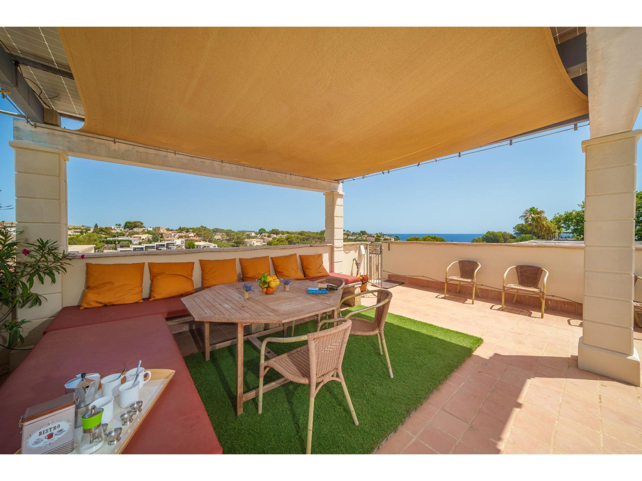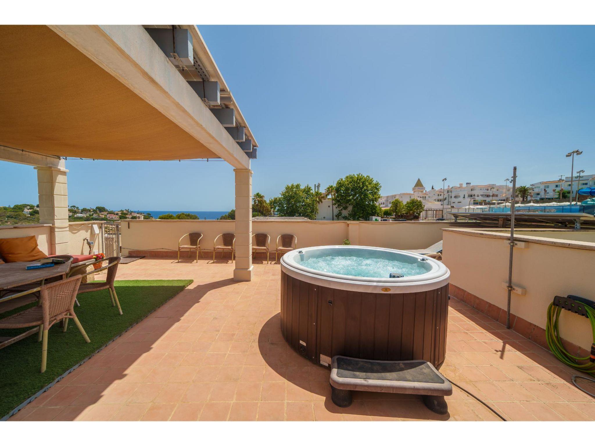 Residence "Penthouse Las Palmeras". 3 houses in the residence. 12 apartments in the residence. In the resort Porto Cristo Novo, 4 km from the centre of Porto Cristo, 16 km from the centre of Manacor, in a central, busy position, 200 m from the sea, 200 m from the beach. For shared use: property (fenced), terraced garden with plants and trees, swimming pool (14 x 6 m, seasonal availability: 01.Jan. - 31.Dec.). Outdoor shower. Private: hot tub, terrace (110 m2), garden furniture, barbecue. In the house: roof terrace. Stepped path to the house. Roofed, parking. Shop, grocery, supermarket 300 m, restaurant 60 m, bus stop 3.5 km, sandy beach "Cala Mendia" 200 m.