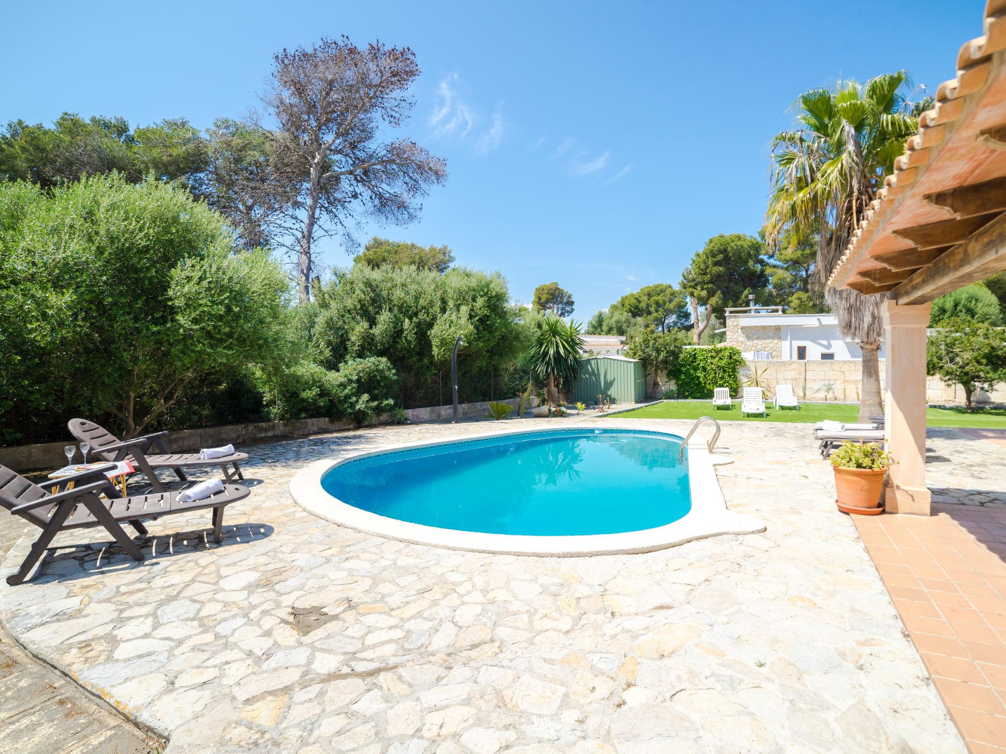 Porto Cristo 12 km from Manacor: Beautiful, cosy, comfortable house "Casa Sanso", 2 storeys. 1 km from the centre, in a quiet position, 100 m from the sea, 1 km from the beach. Private: garden with lawn 300 m2, swimming pool (8 x 4 m, seasonal availability: 01.Jan. - 31.Dec.). Unconventional pool shape. Patio (400 m2), pergola, terrace (60 m2), garden furniture, barbecue. In the house: with TV, WiFi. Single garage. Grocery 500 m, supermarket 1 km, shopping centre 500 m, restaurant, bus stop 2 km, railway station "Manacor" 12 km, sandy beach 1 km. Sports harbour 100 m, golf course (18 hole) 18 km, tennis 500 m. Nearby attractions: cuevas del drac 1 km. Please note: car recommended. Suitable for families. The owner does not accept any youth groups. Loading and unloading of baggage is possible at the holiday house.