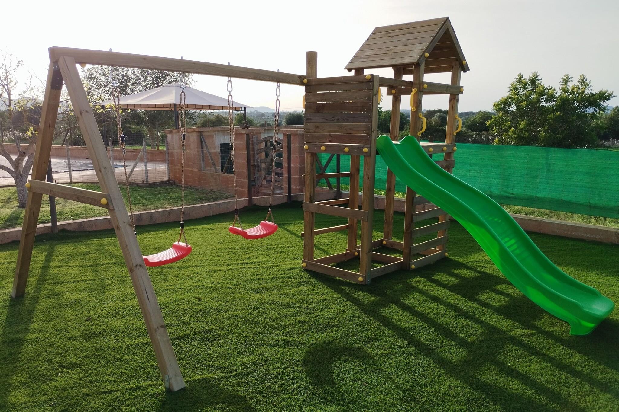 Træd udenfor til en privat saltvandspool, perfekt til at køle af under den mallorcanske sol. Ejendommen er fuldt indhegnet, hvilket sikrer sikkerhed for børn, og har en græsplæne med et fodboldmål, legeplads med gynger, tårn og rutsjebane. Flere verandaer og terrasser inviterer dig til at slappe af eller nyde måltider tilberedt på grillen, mens liggestole og skyggefulde områder sørger for lange eftermiddage, hvor du kan nyde middelhavsklimaet. Villaen er udstyret med gummibåde, parasoller og ekstra bekvemmeligheder for familier. Indenfor blander det to-etagers hjem traditionel charme med moderne bekvemmeligheder. Den rummelige spisestue har satellit-tv, AC med varme og et stort bord til seks. Det separate køkken er fuldt udstyret med gaskomfur og ovn, mens stueetagen også rummer et badeværelse med badekar og vaskefaciliteter. Ovenpå omfatter tre soveværelser med AC et en-suite med badekar og to dobbeltværelser. Familier kan anmode om barnesenge, høje stole, et puslebord og sengeheste, hvilket sikrer et behageligt ophold for alle aldre. Yderligere elementer som elektriske varmelegemer og bærbare ventilatorer er til rådighed for nemheds skyld. Villaen ligger i nærheden af ??Cala Anguila, Cala Magrana og Cala Mandía, en kort gåtur fra det gyldne sand og turkisblåt vand. Porto Cristo byder på restauranter, barer og butikker til et selvstændigt ophold, samt attraktioner som de berømte Drac-huler, der er hjemsted for en af ??de største underjordiske søer i verden. Golfentusiaster kan besøge Club de Golf de Son Servera 16,5 km derfra.
