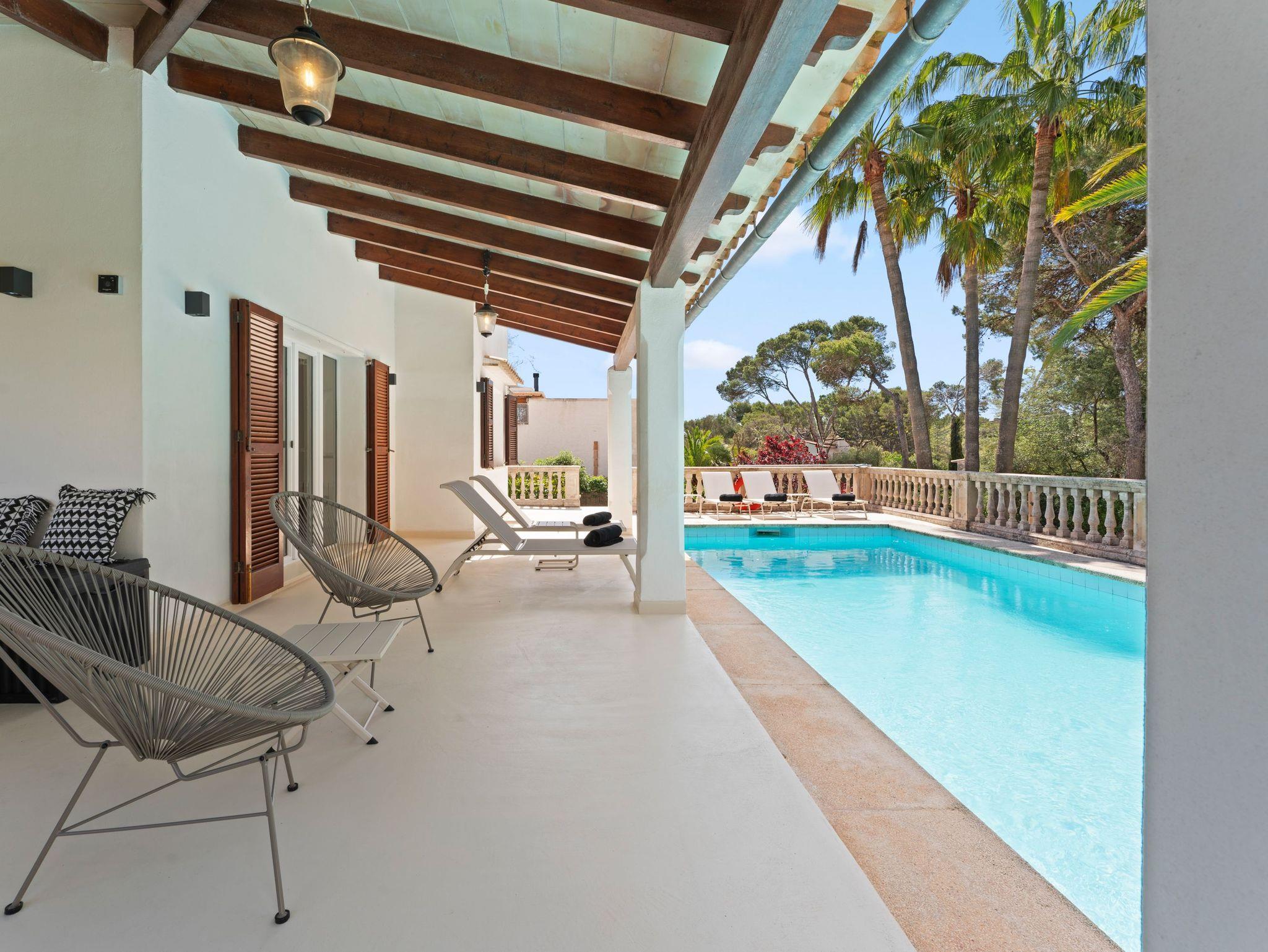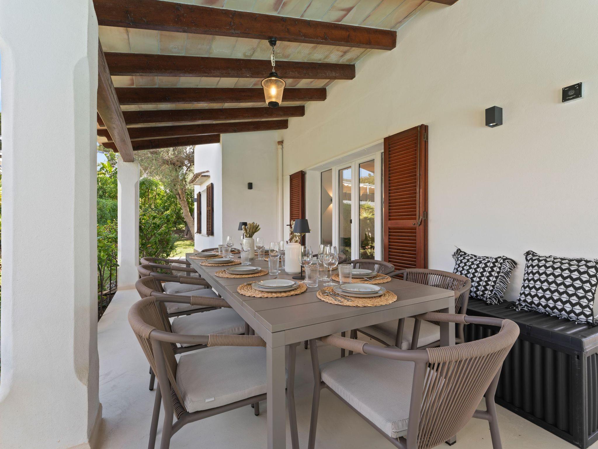 Der Außenbereich ist eine wahre Oase: eine geräumige Terrasse mit privatem Swimmingpool, umgeben von Grün, ideal zum Entspannen in der Sonne oder zum Essen im Freien. In einer ruhigen Umgebung, nahe am Meer gelegen, ist es der perfekte Rückzugsort für einen langsamen Urlaub auf Mallorca.
