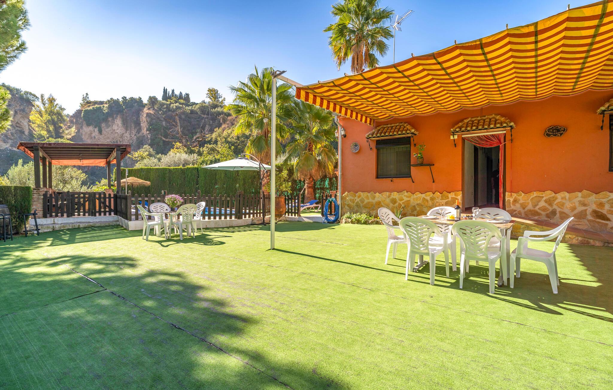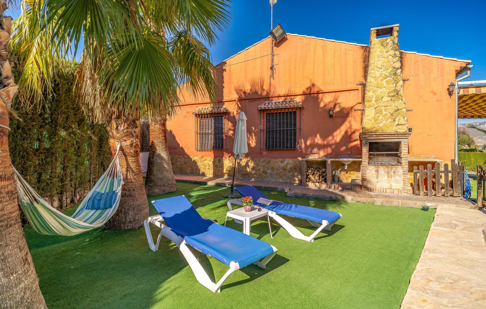 Dette charmerende feriehus med hvælvede lofter og åben pejs emmer af stemningen fra et andalusisk landsted og skaber en hyggelig atmosfære, hvor I vil føle jer helt tilpas. De kærligt indrettede rum og det varme miljø lægger op til afslapning og byder på alt, hvad I skal bruge for en rolig og behagelig ferie. Udendørsområdet er også et højdepunkt: Tag en dukkert i poolen, slap af på de komfortable liggestole i solen, og nyd aftener med grillmad under åben himmel, mens I nyder de lune middelhavsaftener.