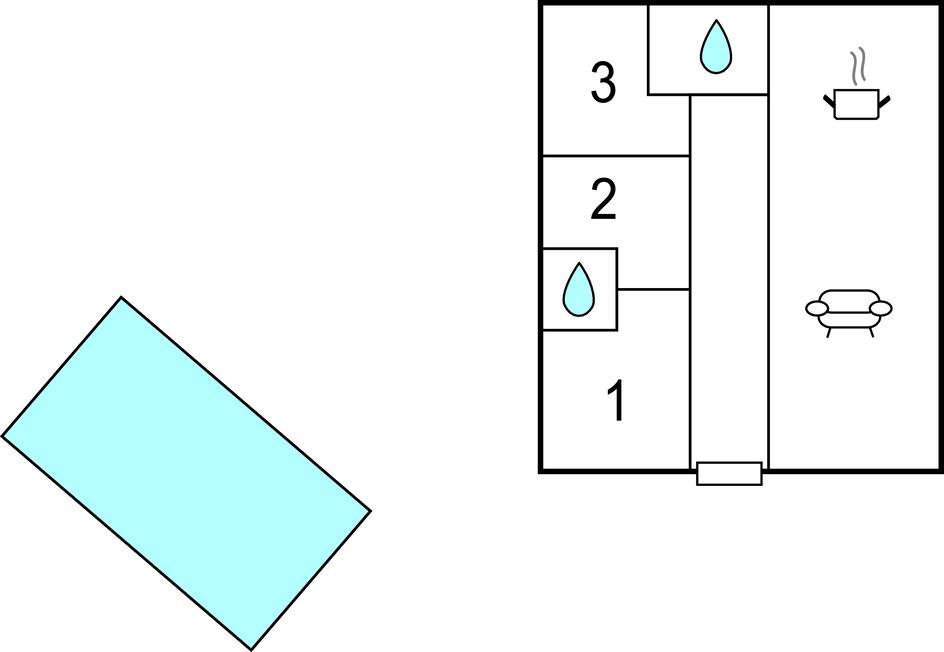 Badeværelse 5m2 (nr. 1) - WC. Varmt og koldt vand. Bruser