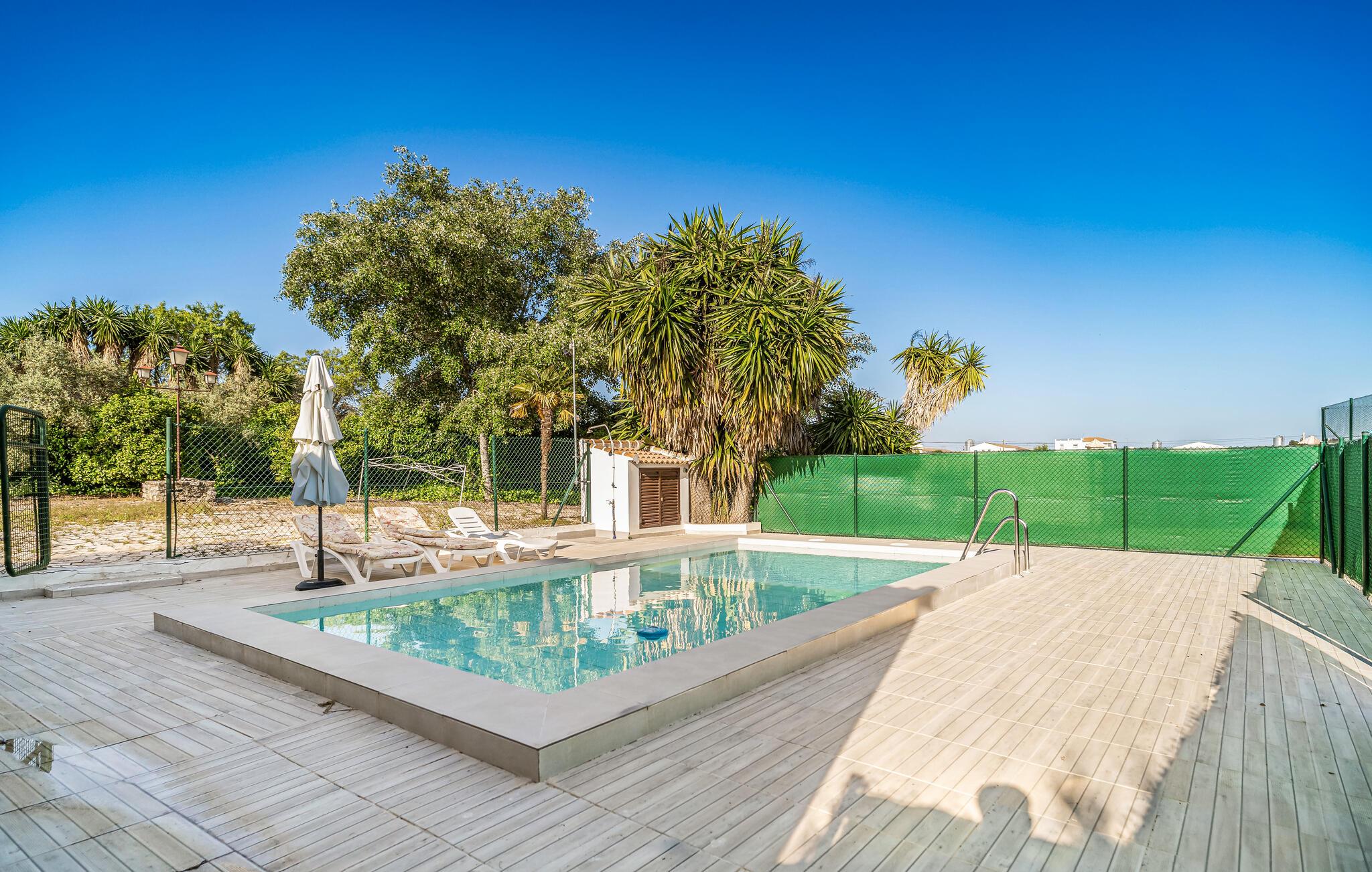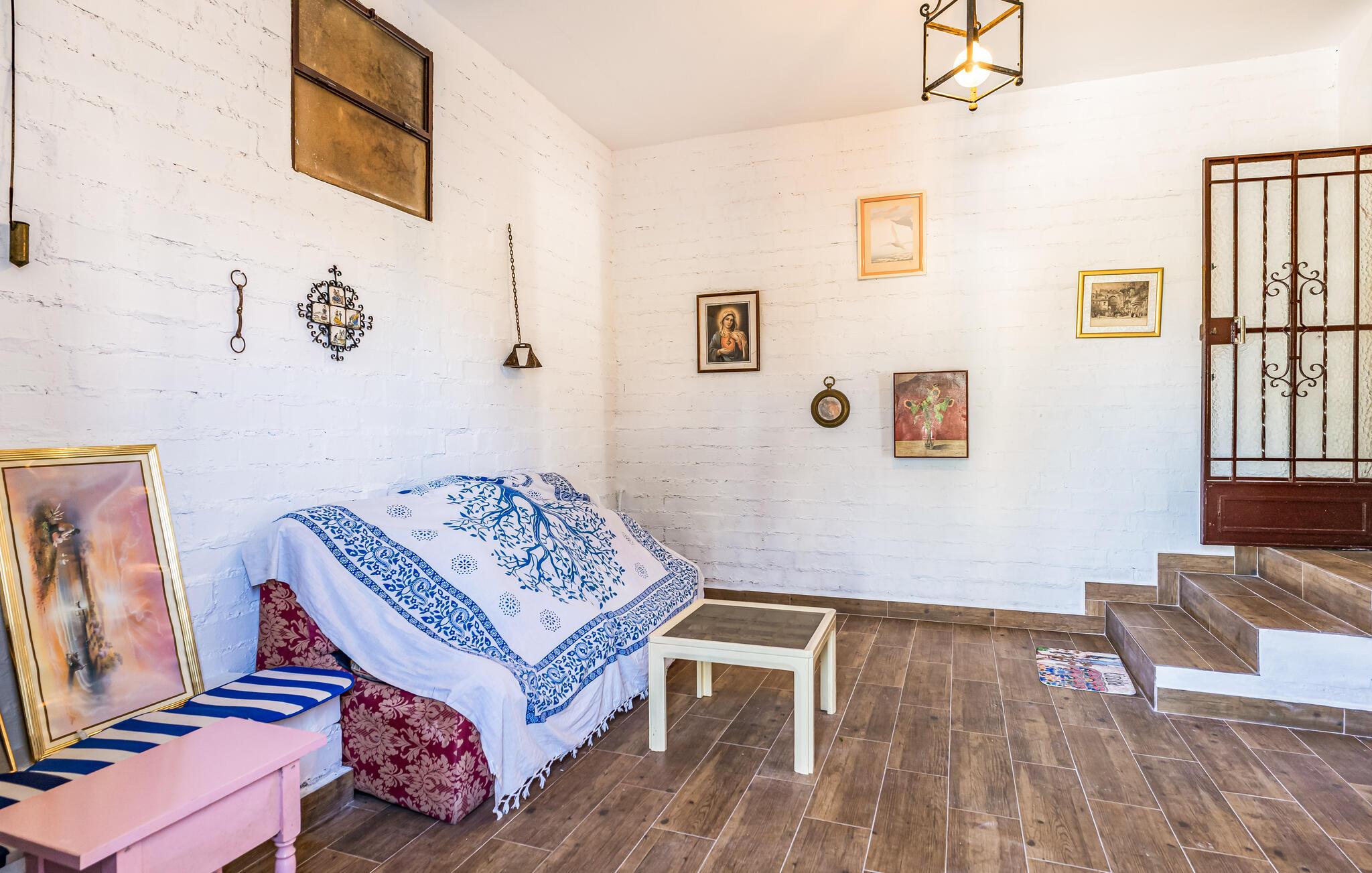 Her er der en privat udendørspool, hvor I kan køle ned, samt en terrasse med havemøbler, hvorfra I kan nyde solen og en rolig brunch. Huset har en meget rolig og fredelig beliggenhed, grunden er beskyttet og giver jer også det ideelle sted at gå tur med jeres hund. Indenfor er der fine gamle detaljer, herunder skakternede fliser i hele huset, lysekroner og en pejs.