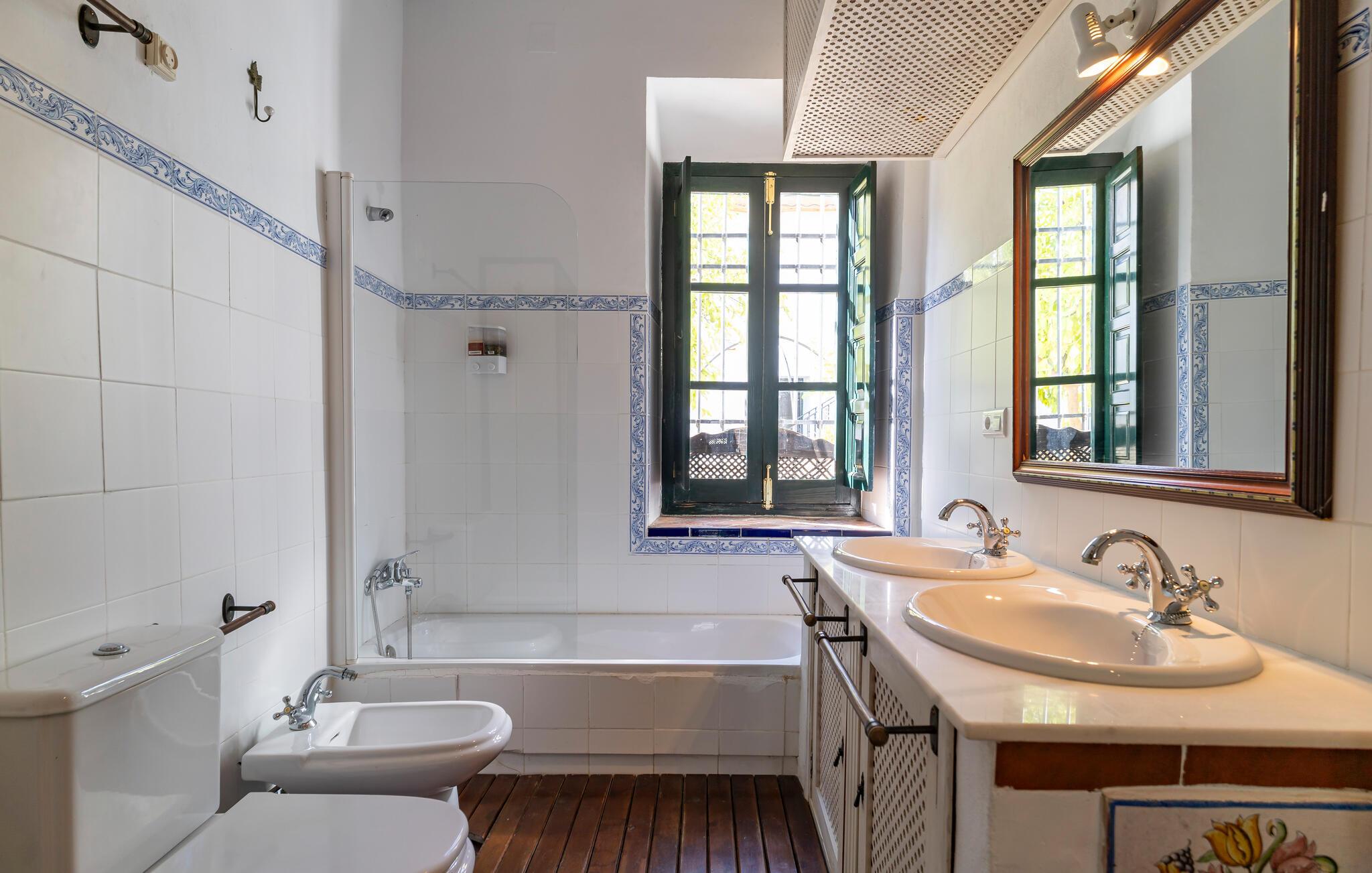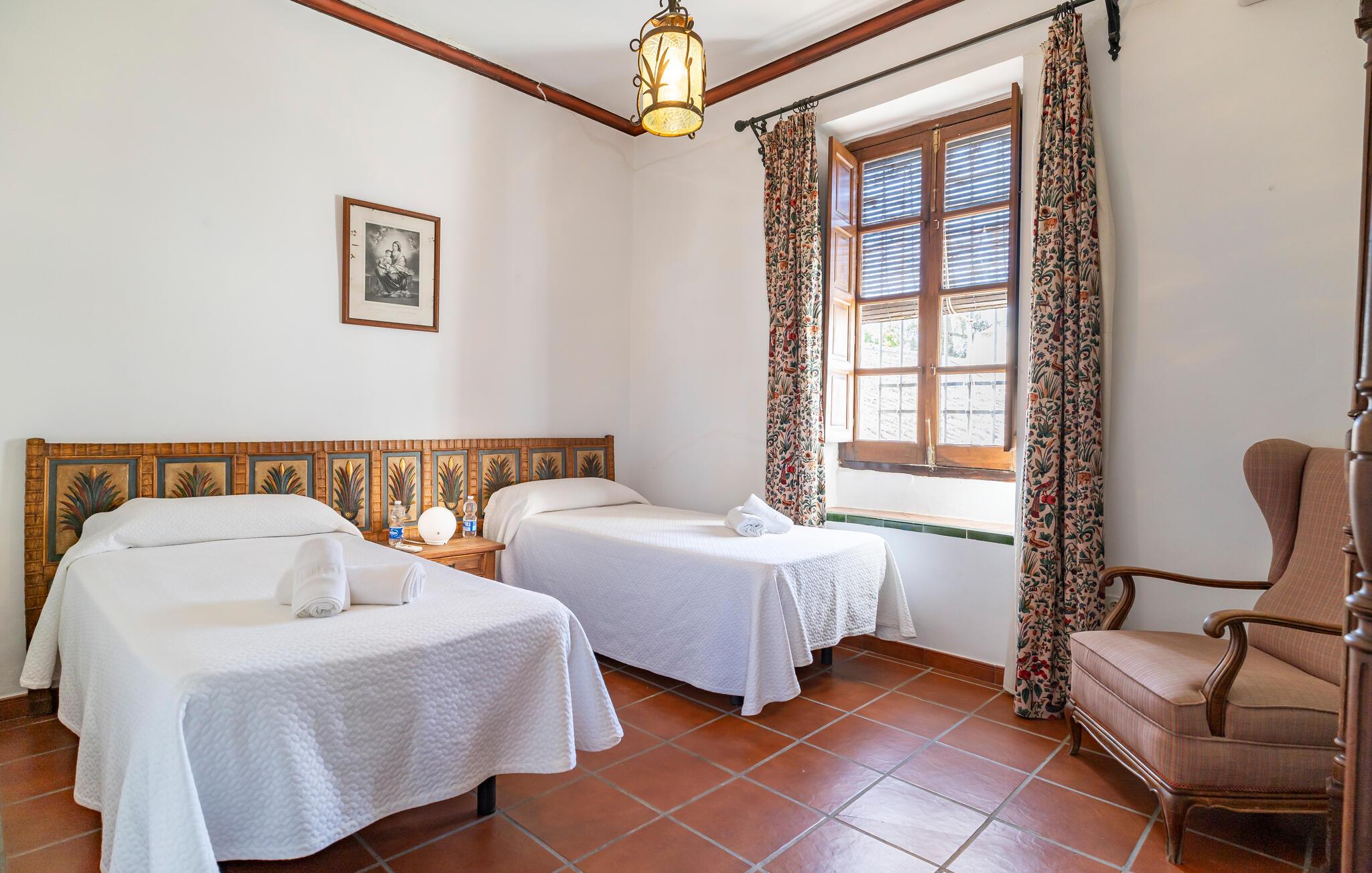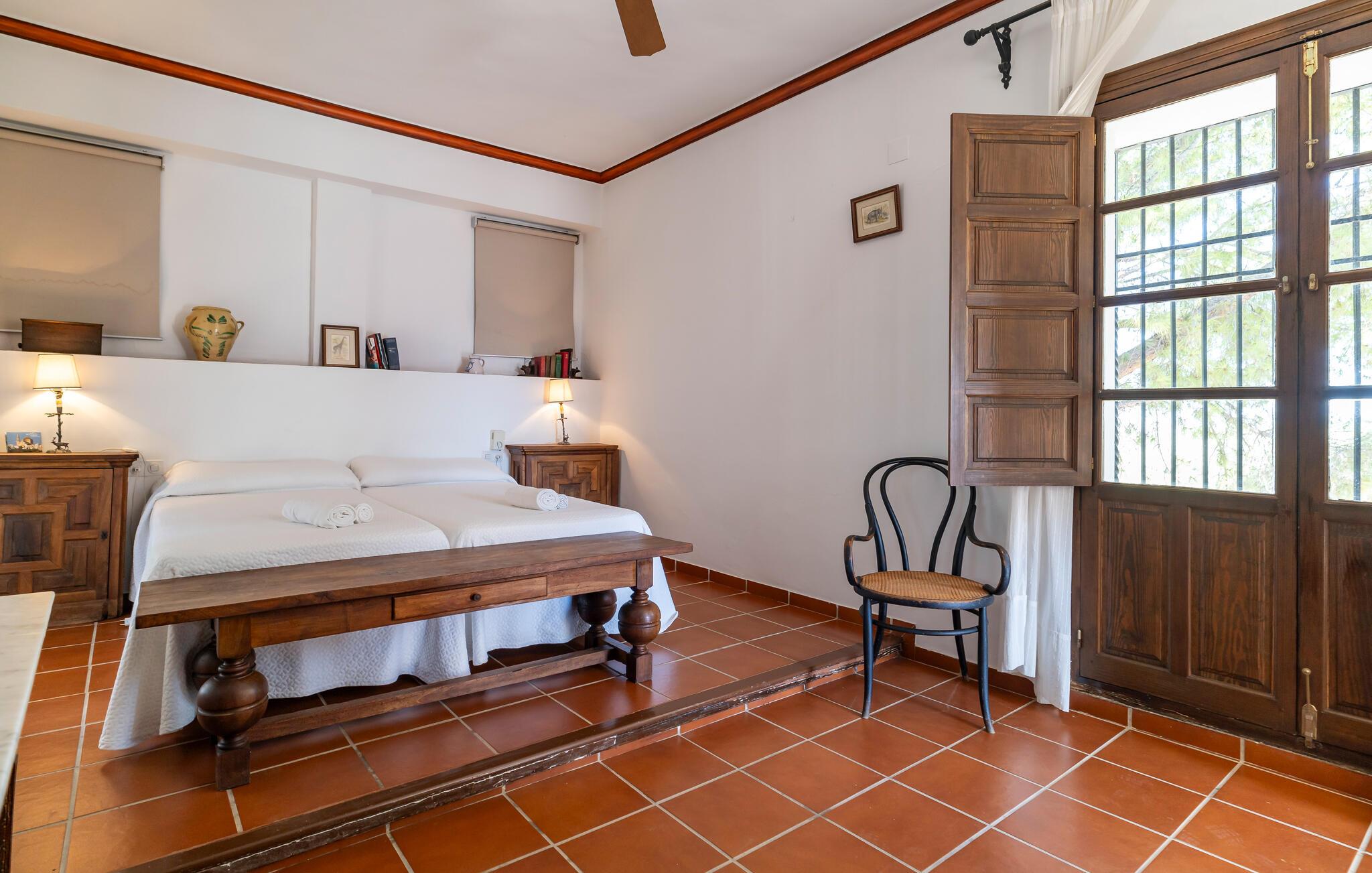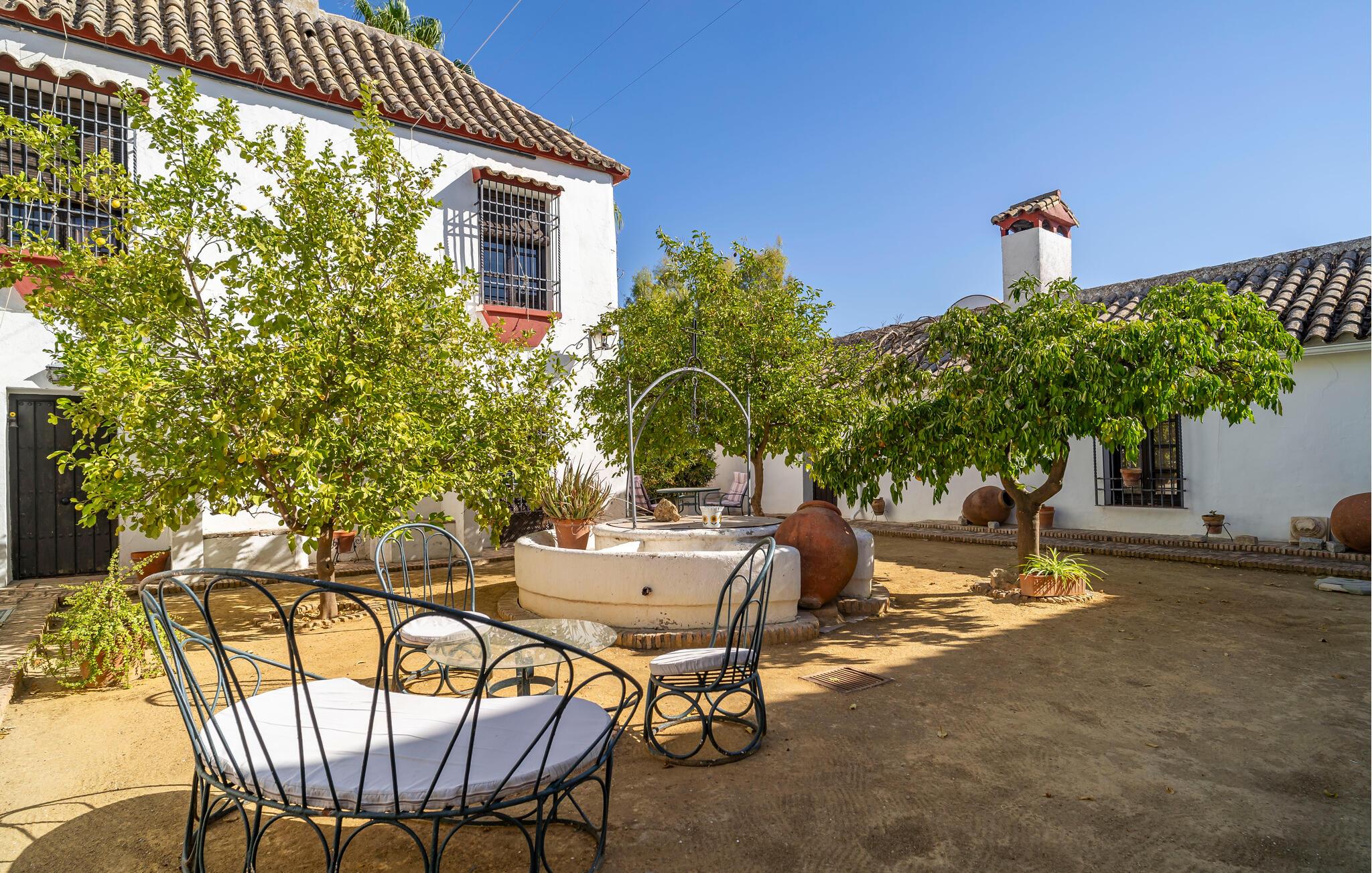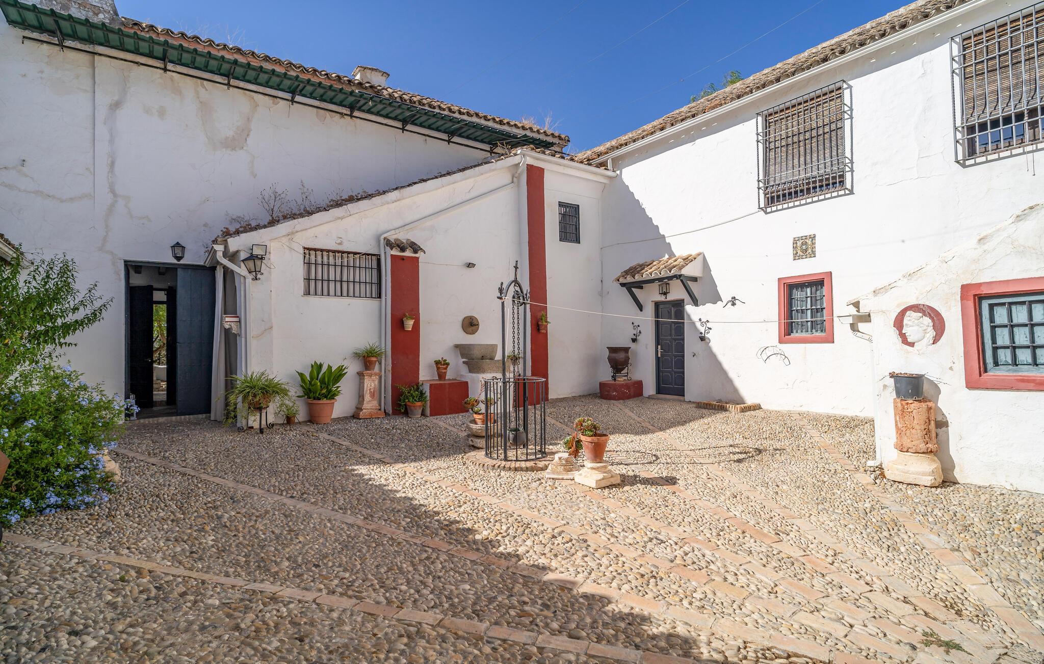 Dette autentiske og rummelige landsted i Puente Genil inviterer jer til at opleve charmen ved det andalusiske landliv. Med høje lofter, synlige bjælker og åbne pejse skaber stedet en unik atmosfære, der kombinerer hygge og tradition. Huset har masser af plads til en stor familie eller en vennegruppe, som kan nyde sociale aftener i aktivitetsrummet med billard og bordfodbold. Den store have med pool indbyder til forfriskende dyk og er det perfekte sted at nyde det andalusiske klima i fulde drag.