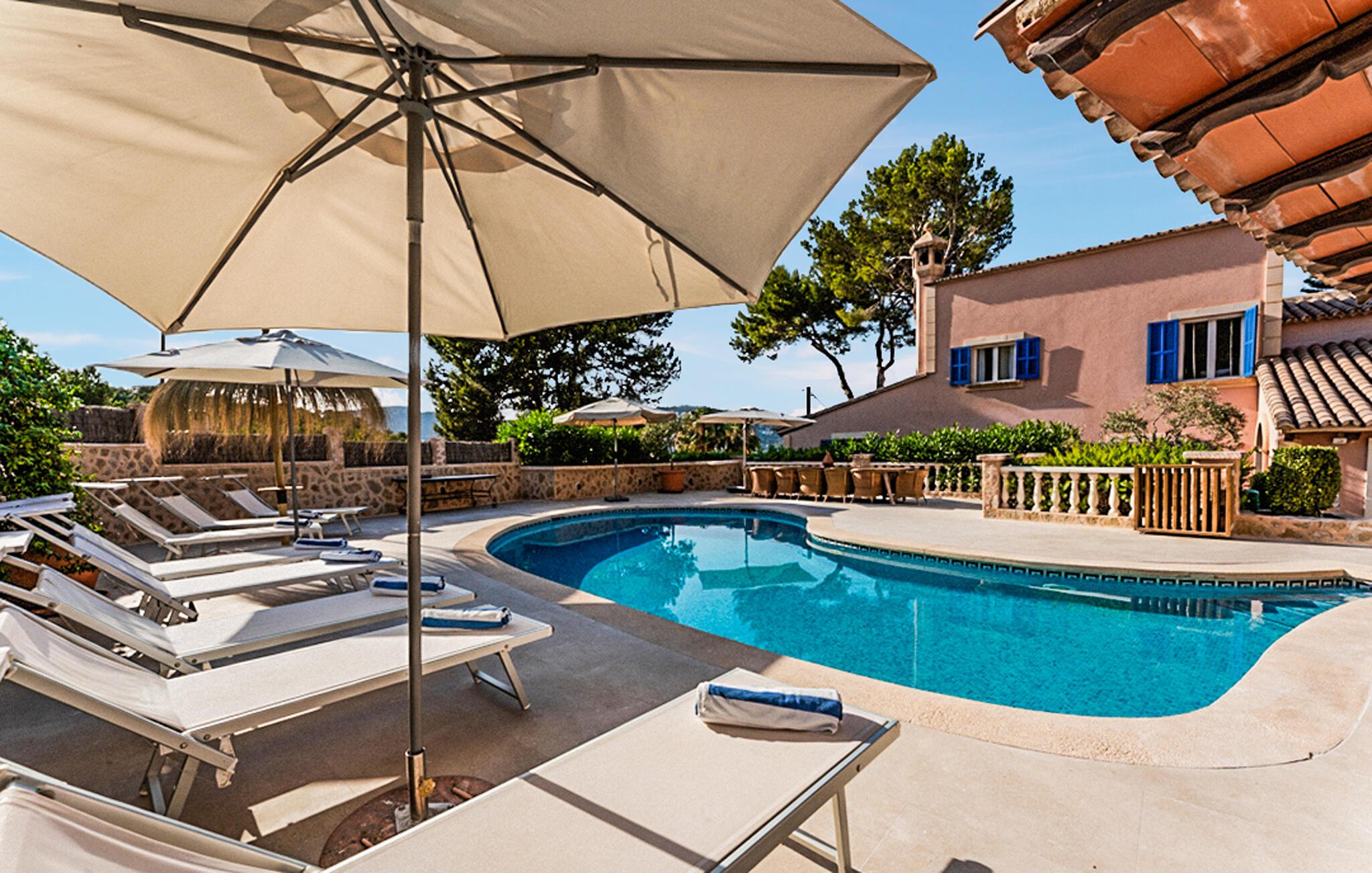 Det smukt udformede udendørsområde udstråler middelhavscharme og kan prale af en charmerende pool, hvor I kan slappe af på behagelige liggestole. Nyd et glas vin ved solnedgang og nyd jeres tid sammen med stemningsfulde grillaftener under åben himmel.