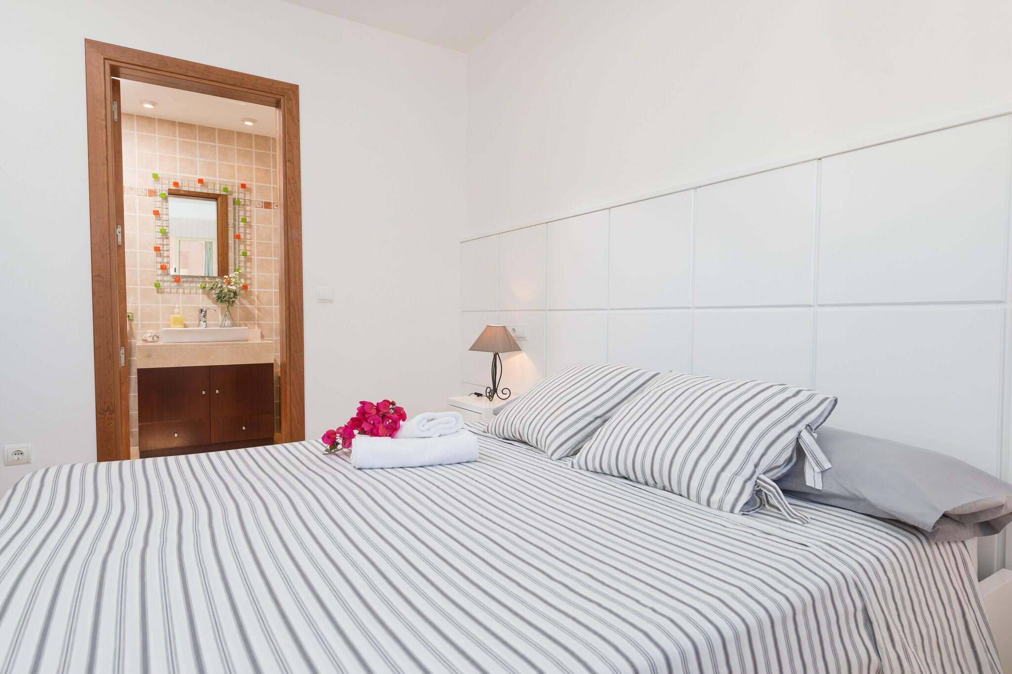 Nyd en stor morgenmad på terrassen, som har et bord med stole til 6 personer. Det lille haveområde byder på to liggestole, perfekt til at læse noget interessant eller sole sig i, selvom du nok får lyst til at gå til stranden, som ligger kun 130 meter væk, og nyde solen og havbrisen. Den to etagers hytte med en størrelse på 90 m2 er ideel til familier og små grupper af venner. I stuen, med en stor sofa, vil du tilbringe en behagelig tid med at læse en god bog, se tv (satellit-tv) eller tage en lur. Spiseområdet kan rumme op til 6 personer. Det uafhængige køkken tilbyder dig alt, hvad du har brug for til din ferie: mikroovn, mikroovn, kedel, opvaskemaskine, blender, elektrisk ovn, vitro keramisk kogeplade og et køleskab med fryser. Der er selvfølgelig også vaskemaskine, strygejern og strygebræt. Et toilet fuldender stueetagen. Går du ovenpå finder du de tre soveværelser. Et af soveværelserne tæller med en dobbeltseng og et en-suite badeværelse med hydromassagekar, det andet har to enkeltsenge og det sidste har en enkeltseng. I Puerto de Alcúdia finder du masser af restauranter for enhver smag; frisk fisk, fremragende kød, pizza og pasta, sushi, tapas, smagsmenuer og typisk mallorcansk køkken. Hvis du føler dig lidt sulten, byder de talrige snackbarer på sandwich, hamburgere og salater. Til din kaffe- eller tepause finder du masser af cafeterier på promenaden. Der er også masser af butikker der; ved siden af butikker med tøj, sko og souvenirs finder du nemt små supermarkeder til dagligvareindkøb. Som reaktion på Coronavirus (COVID-19) er yderligere sikkerheds- og sanitetsforanstaltninger i kraft på denne ejendom. Turistlicens: ETV/6821