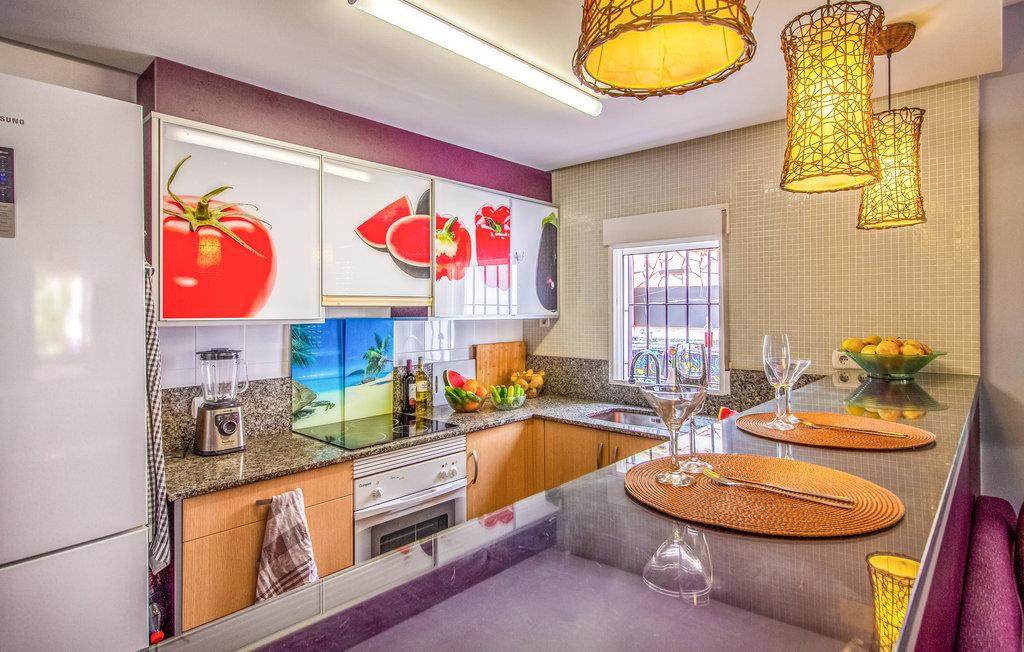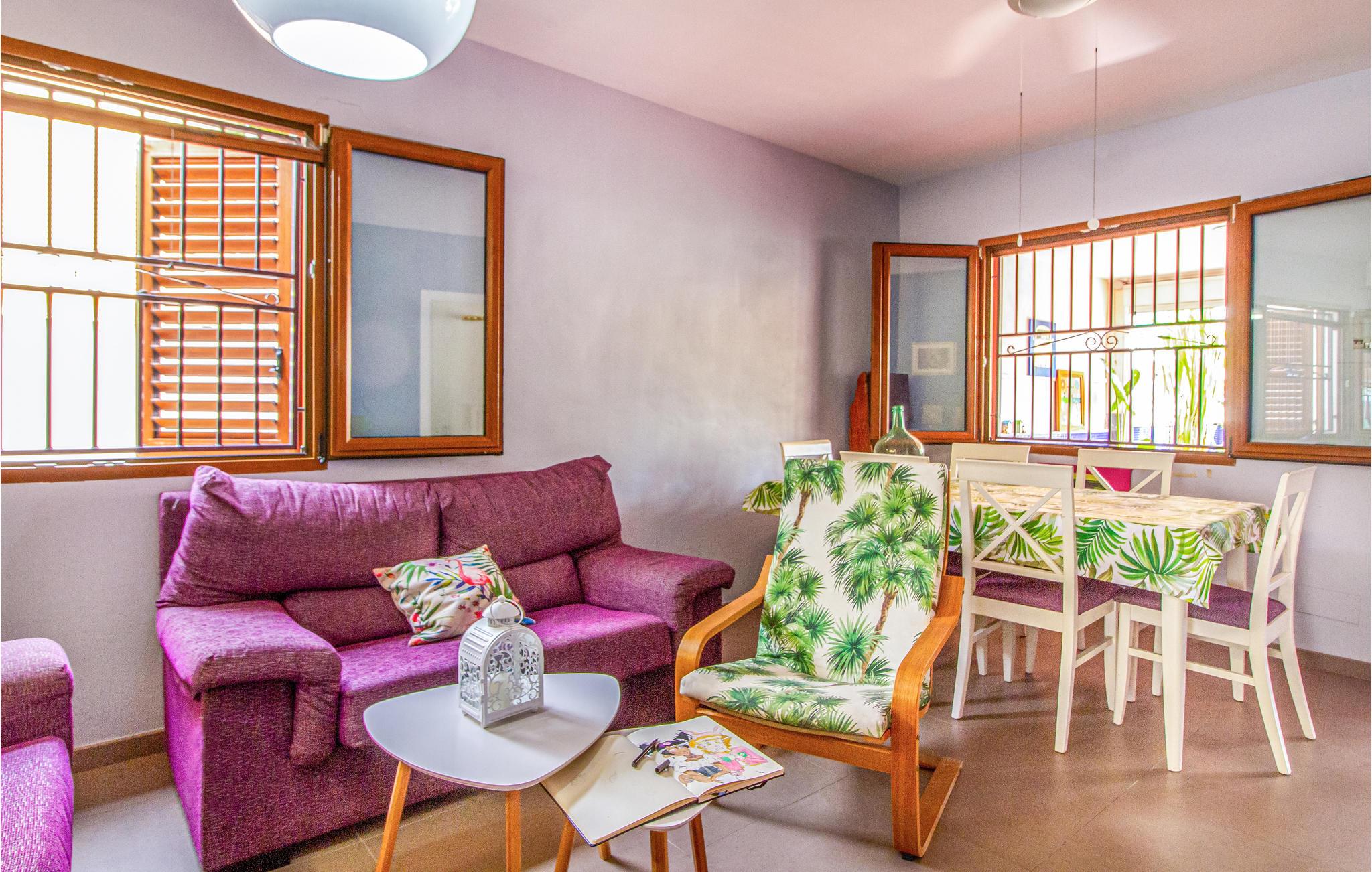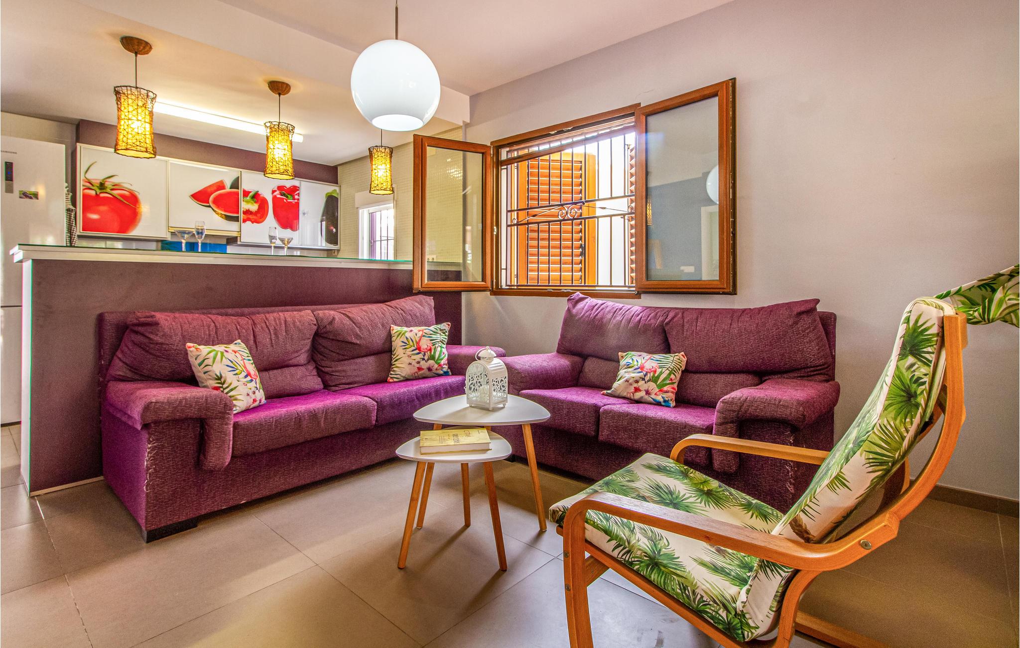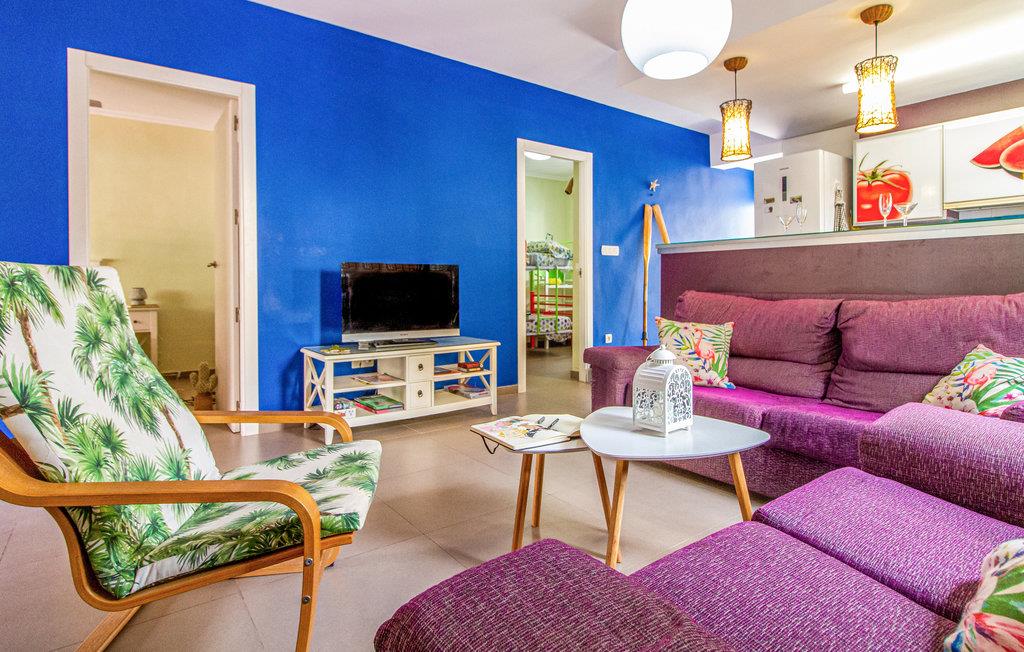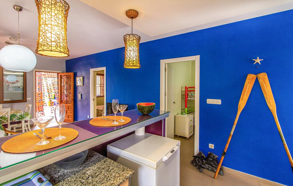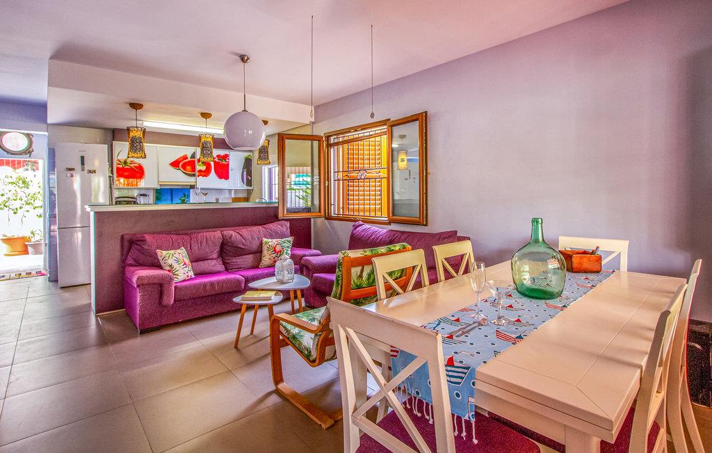 Denne ferielejlighed på Murcia-kysten er en fin ramme om en afslappende ferie i det sydspanske. Værelserne er farverige, og I kan se frem til komfortable møbler og gode faciliteter, så I kommer ikke til at mangle noget. Glæd jer til hyggelige timer i stuen med åbent køkken efter en begivenhedsrig feriedag.