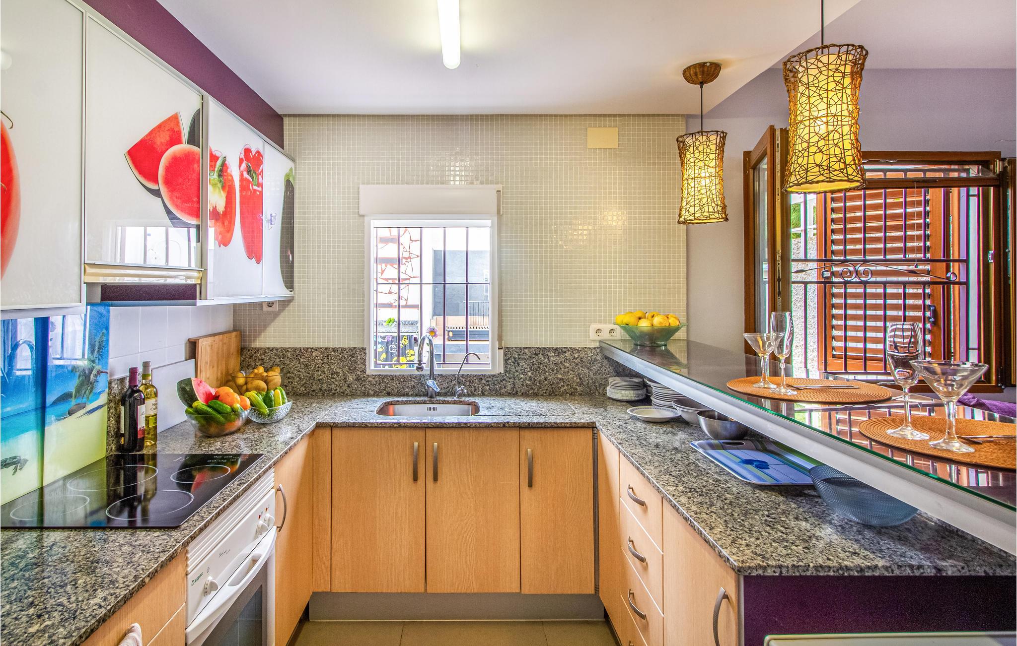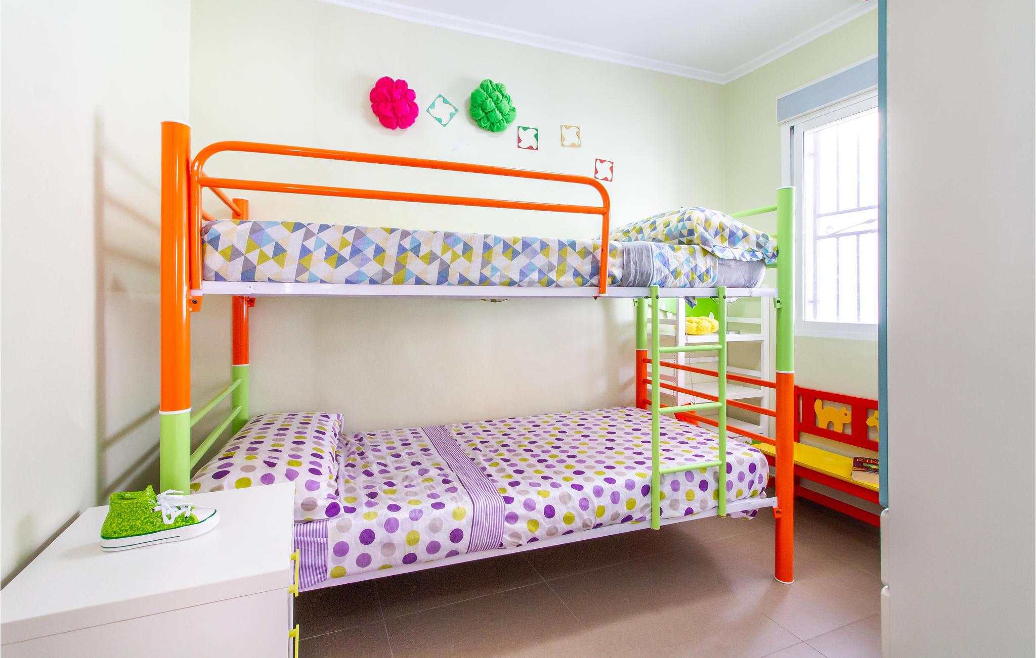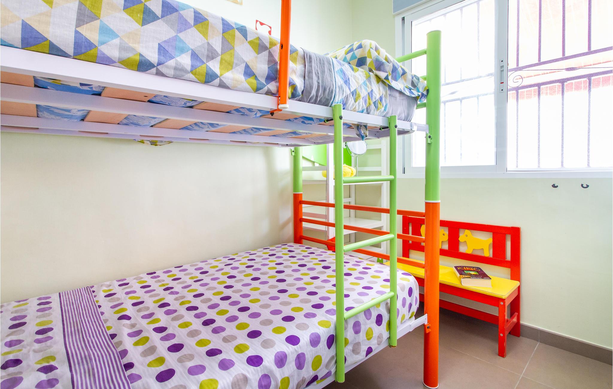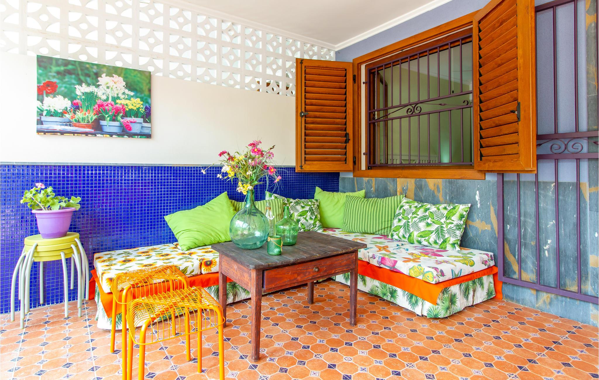 Denne ferielejlighed på Murcia-kysten er en fin ramme om en afslappende ferie i det sydspanske. Værelserne er farverige, og I kan se frem til komfortable møbler og gode faciliteter, så I kommer ikke til at mangle noget. Glæd jer til hyggelige timer i stuen med åbent køkken efter en begivenhedsrig feriedag.