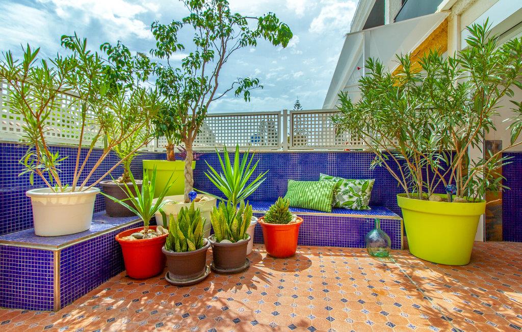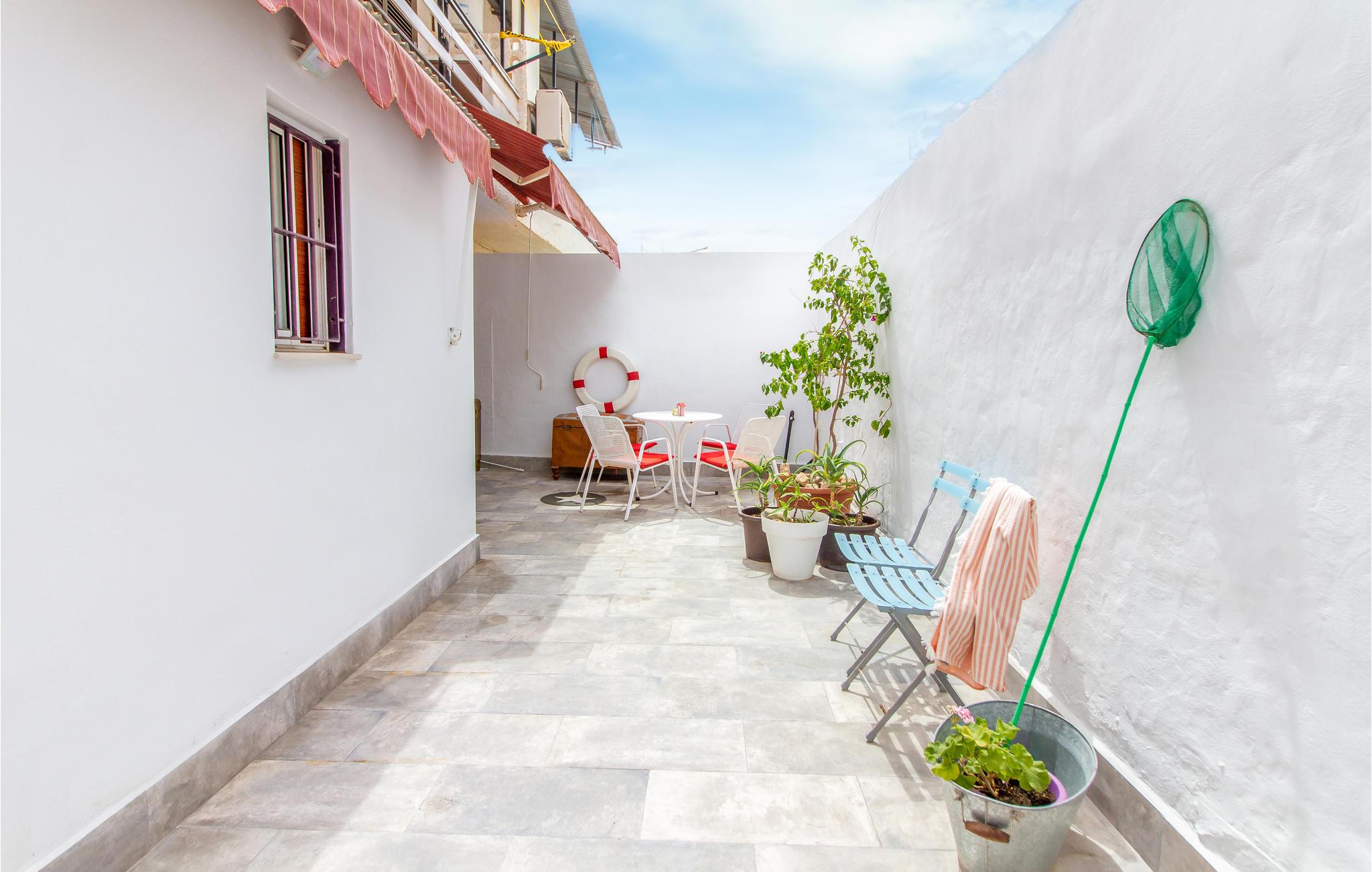 Lejligheden har et lukket udeareal med flere hyggekroge. Slap af med en kold forfriskning, mens jeres børn har det sjovt med at lege.