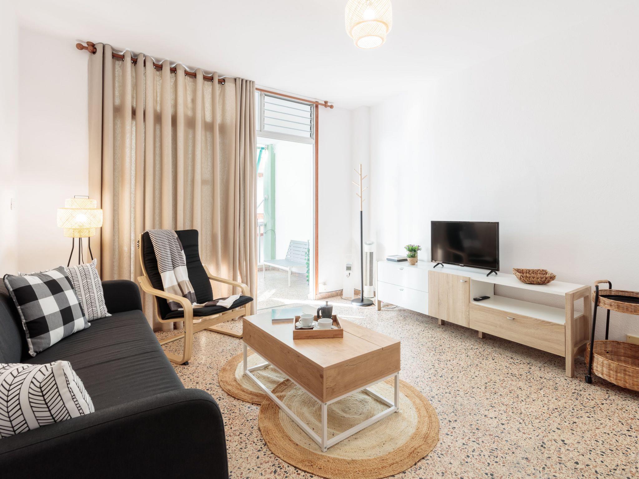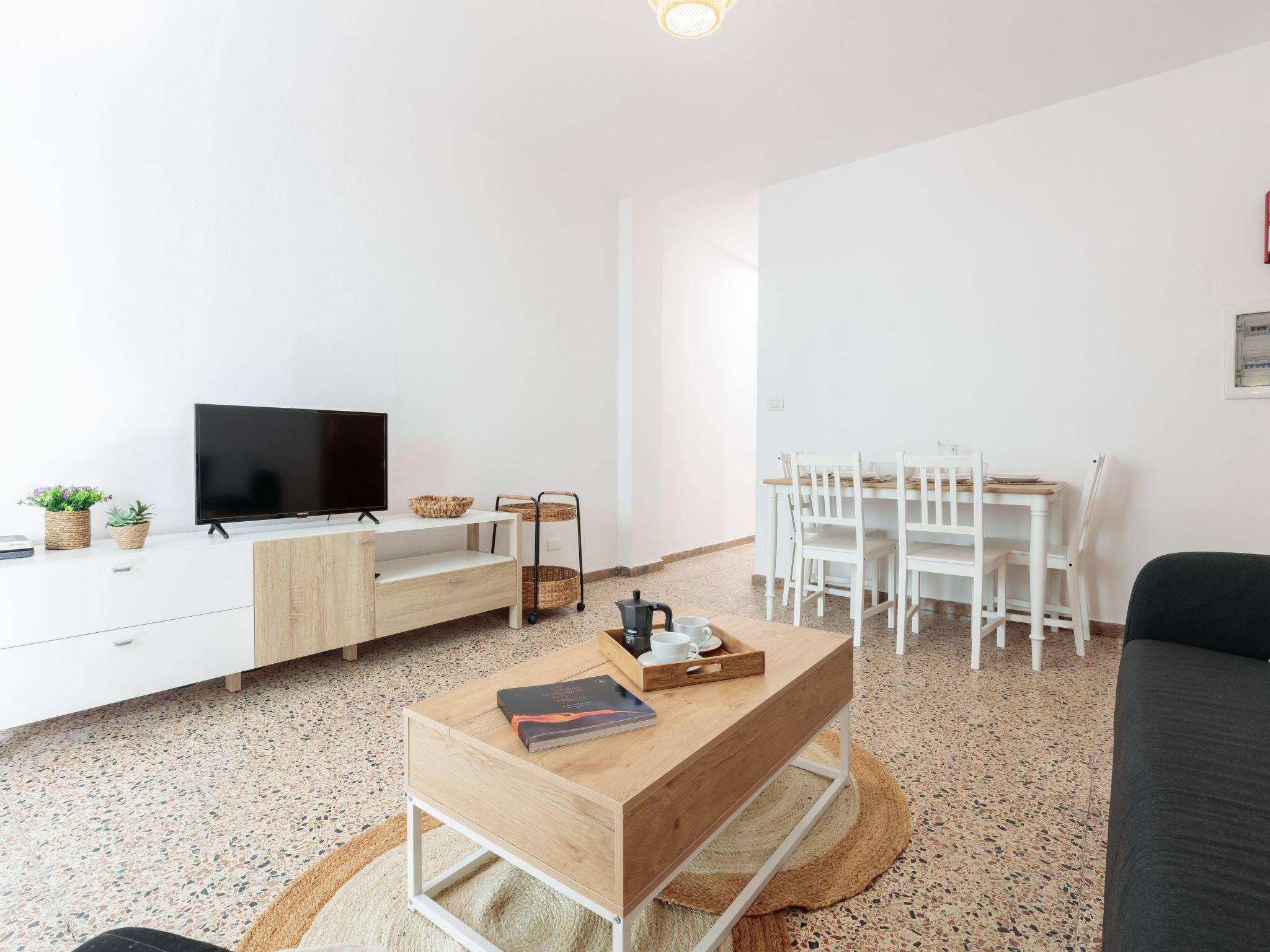 The flat has three bedrooms, one with a double bed and two with twin beds, with capacity for 4 people and a baby. Its spacious and bright living room opens onto a terrace with lateral sea views, perfect for having breakfast outdoors or watching the sun go down.