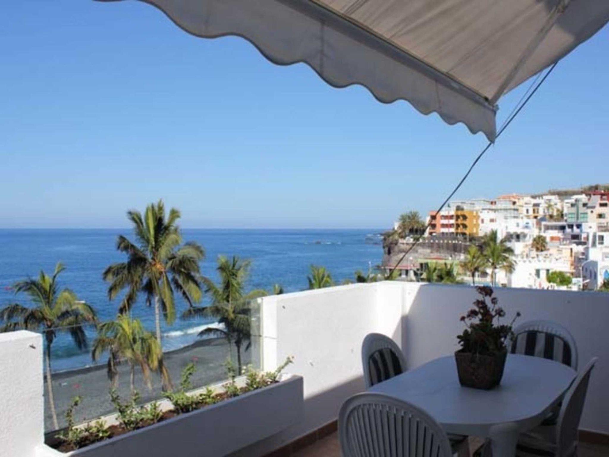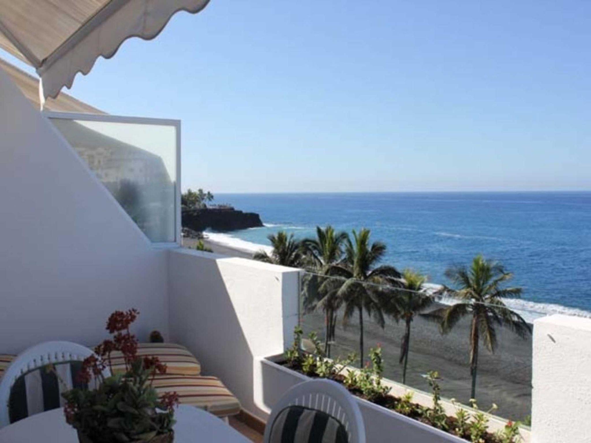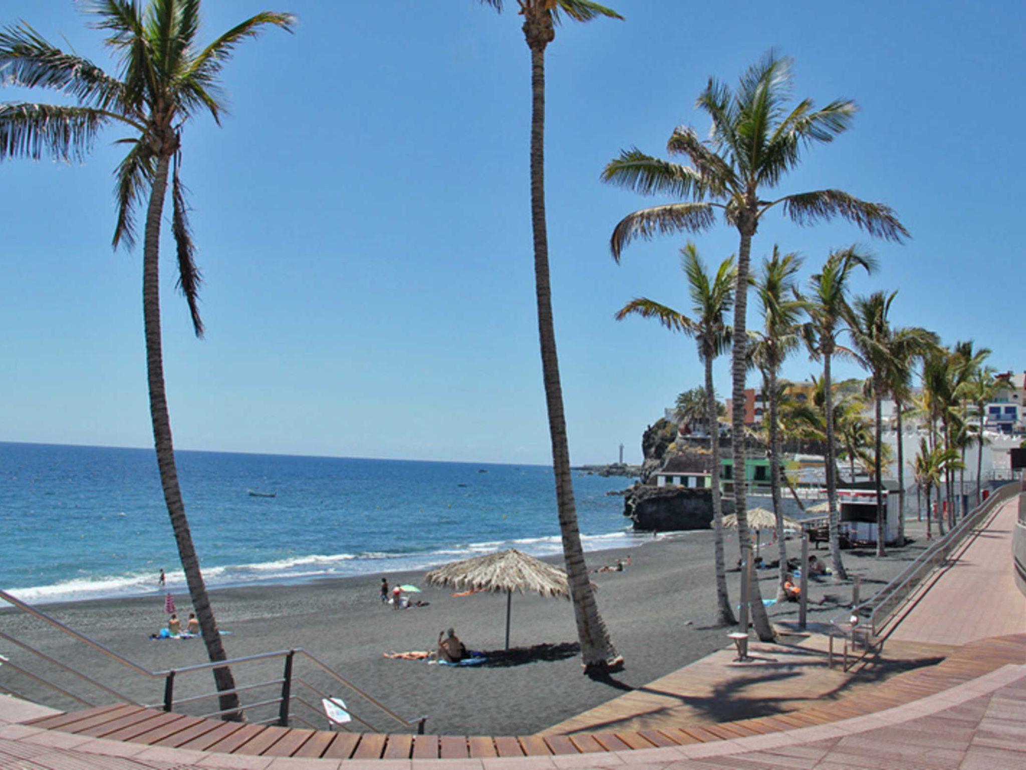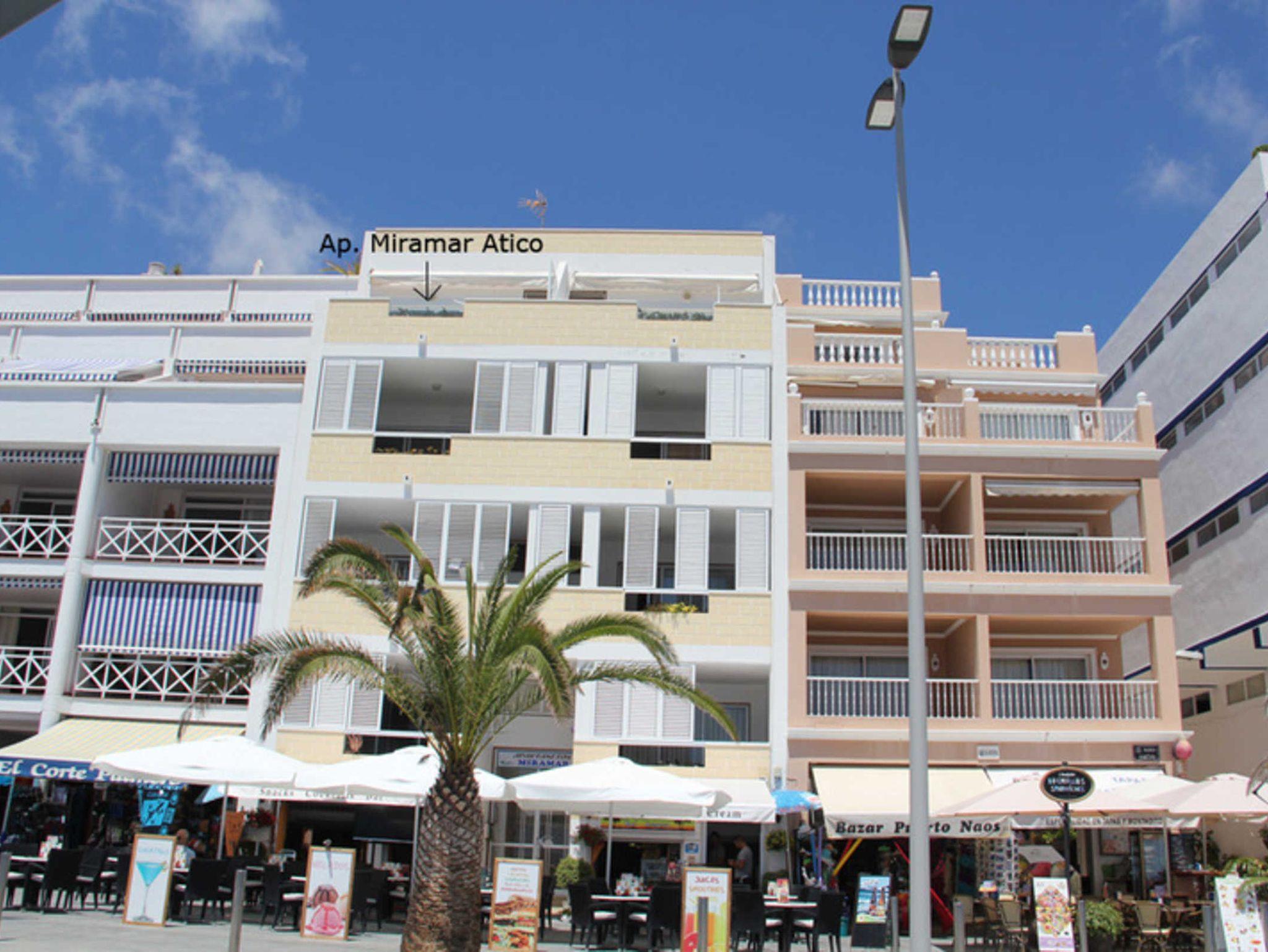 Puerto Naos hat einen schönen großen Sandstrand mit Palmen und das Haus Miramar liegt direkt an der Strandpromenade. Die Ferienwohnung Miramar Atico befindet sich im obersten Stock des 4 stöckigen Apartmenthauses.