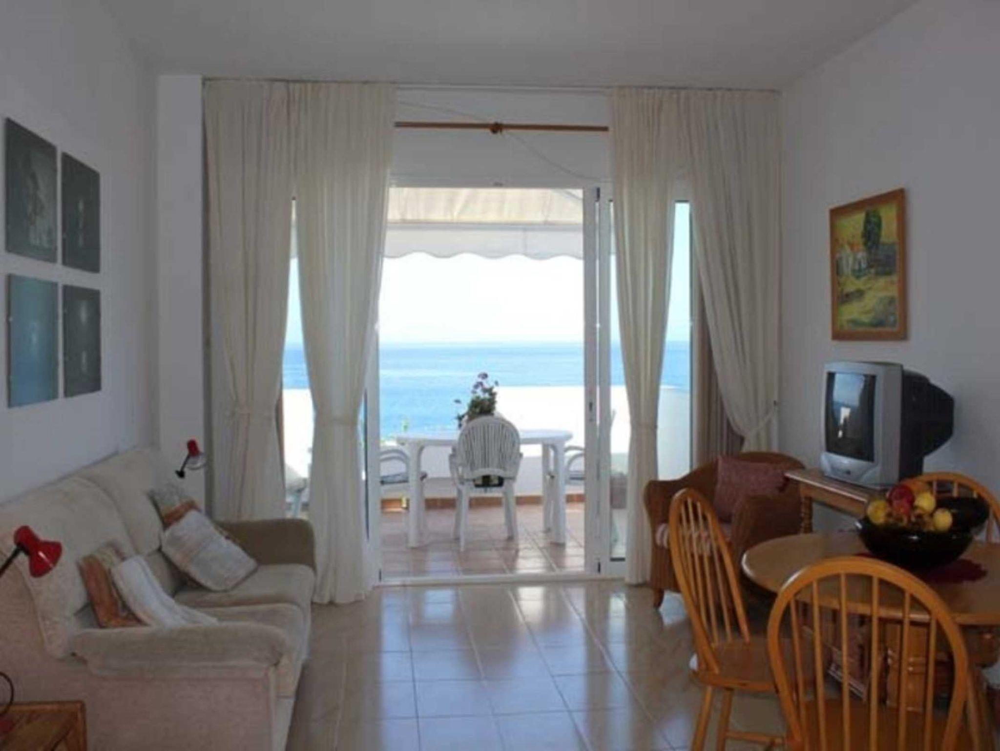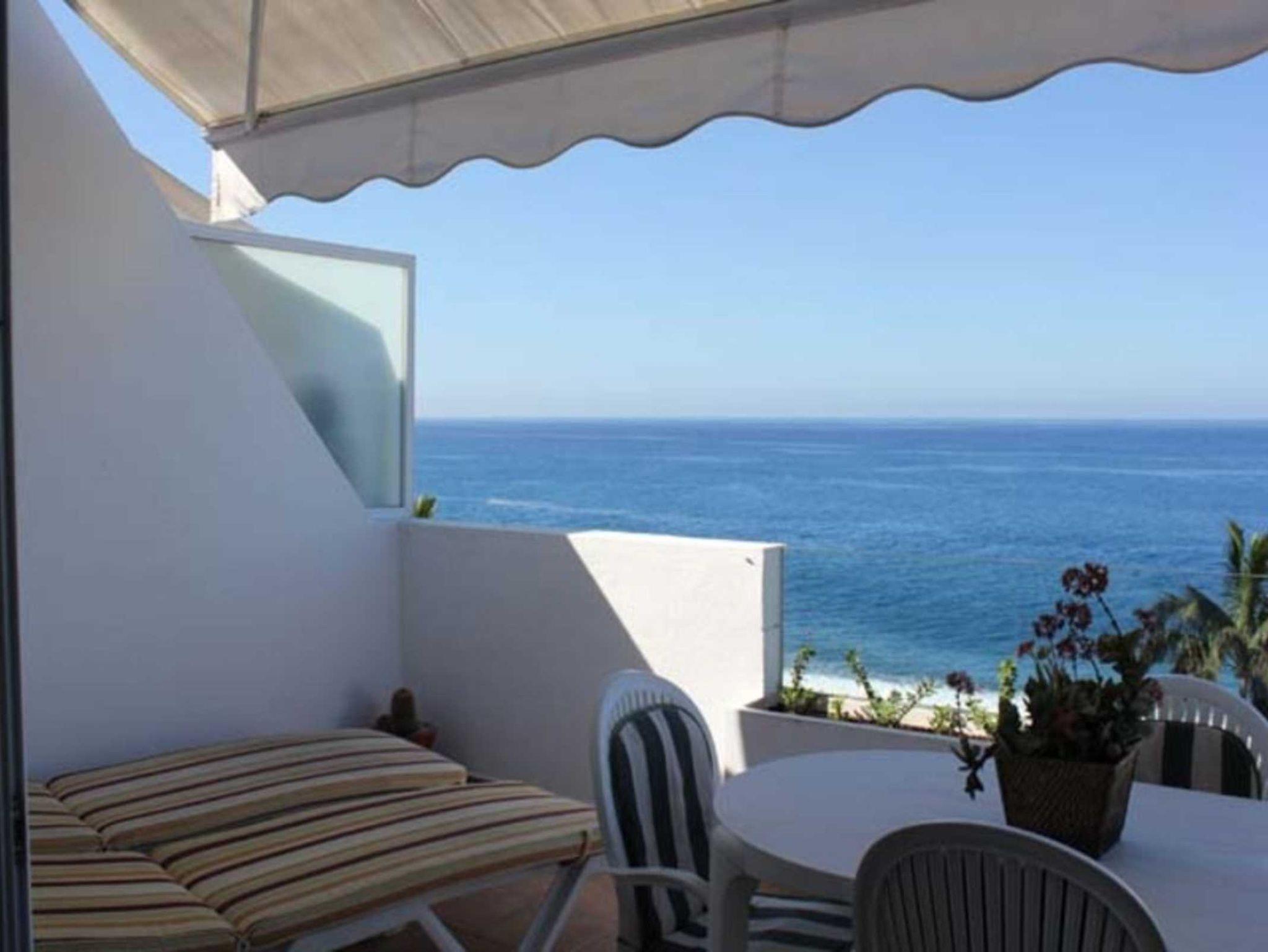 Die große Balkonterrasse (13 qm, mit Markise) ist möbliert mit Tisch, Stühlen, Sonnenliegen und Sonnenschirm und bietet einen spektakulären Blick auf das Meer. Abends sitzen Sie hier bei einem schönen Glas Wein und sehen der Sonne zu, wie sie ins Meer fällt - untermalt von gleichmäßigem sanftem Meeresrauschen…