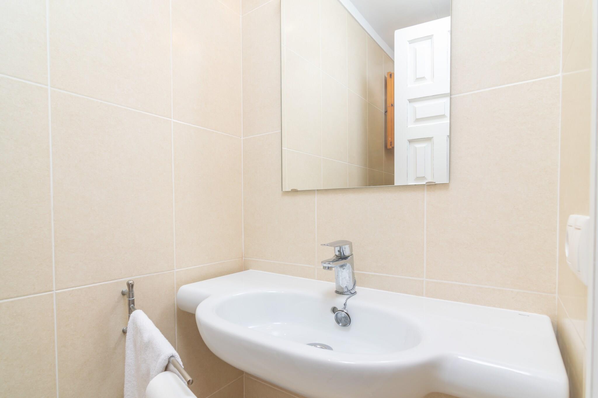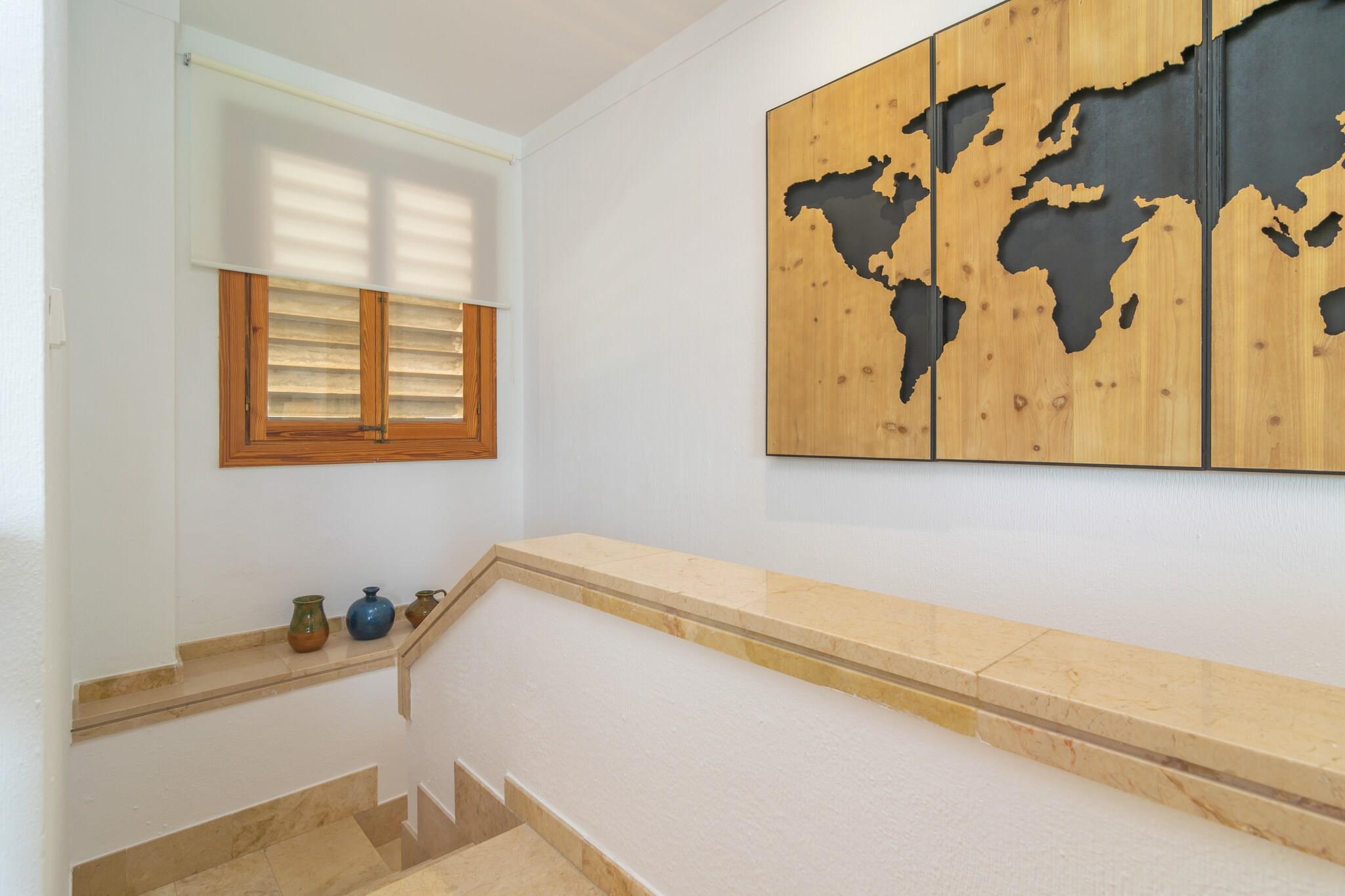 Start din dag med morgenmad på terrassen, hvor du kan nyde den fredfyldte udsigt over Middelhavet og bjergene. Uderummet er perfekt til at solbade eller nyde måltider og drinks med sine kære. Lejligheden ligger i en bygning og har direkte naboer, men tilbyder en fredelig atmosfære. Indenfor er to-etagers lejlighed smagfuldt indrettet til komfort og afslapning. Det overordnede niveau har en lys stue-spisestue med AC og Smart TV, et selvstændigt køkken med keramisk kogeplade og et gæstetoilet. Der er også vaskemaskine, strygejern og strygebræt. Ovenpå, tre soveværelser med aircondition inkluderer et med to enkeltsenge, et med en enkeltseng og et med en dobbeltseng og en-suite bruser. Et separat badeværelse med badekar tjener gulvet. Centralvarme sikrer komfort året rundt, og babyudstyr såsom en tremmeseng og højstol er tilgængelige. Kun 200 meter fra Playa Pollença er lejligheden ideelt placeret for strandelskere og opdagelsesrejsende. Nyd den charmerende promenade, lokale butikker og restauranter, eller begiv dig til nærliggende perler som Formentor, Cala Sant Vicenç og landsbyerne Pollença og Alcúdia. Kæledyr og arrangementer er ikke tilladt. Udvendig parkering til en bil er tilgængelig. Turistskat og eventuelle gebyrer kan være gældende.