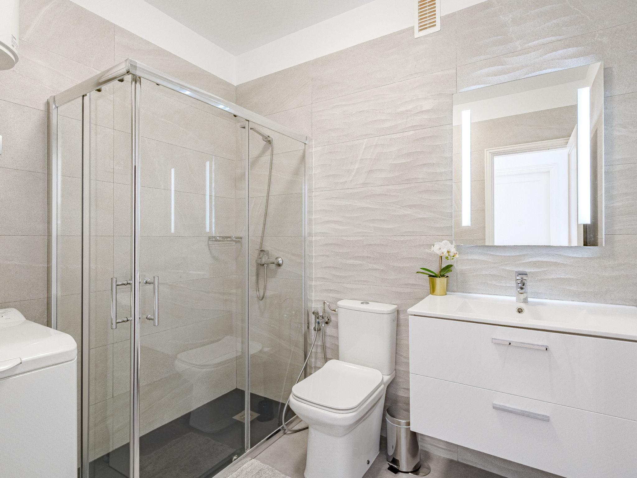"Panoramic Oceanview Escape Arena", 3-room apartment 71 m2. Object suitable for 2 adults + 2 children. Spacious and bright, practical and comfortable furnishings: living/dining room with dining table, digital TV and flat screen. Exit to the terrace. 1 room with 1 french bed (140 cm, length 190 cm). 1 room with 1 pull-out bed (2 pers. 2 x 90 cm, length 190 cm). Open kitchen (oven, 3 ceramic glass hob hotplates, toaster, kettle, microwave, freezer, electric coffee machine, Capsules for coffee machine (Dolce Gusto) extra). Shower/WC. Boiler (50 litres). No heating option. Large terrace 19 m2. Terrace furniture, deck chairs (2). Panoramic view of the sea and the countryside. Facilities: washing machine, iron, hair dryer. Internet (WiFi, free). Parking space n 7 (roofed, 1 car). Please note: suitable for families. Non-smokers only. VV-38-4-0095846 // Reg. Nr.: ESFCTU0000380020002133080000000000000VV-38-4-00958460