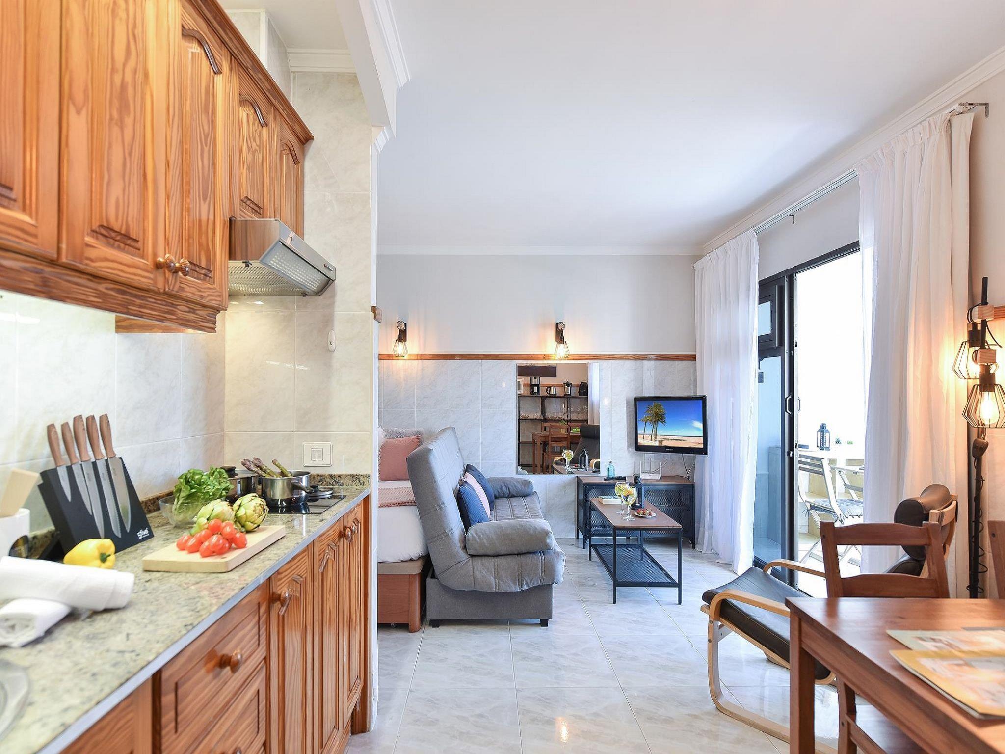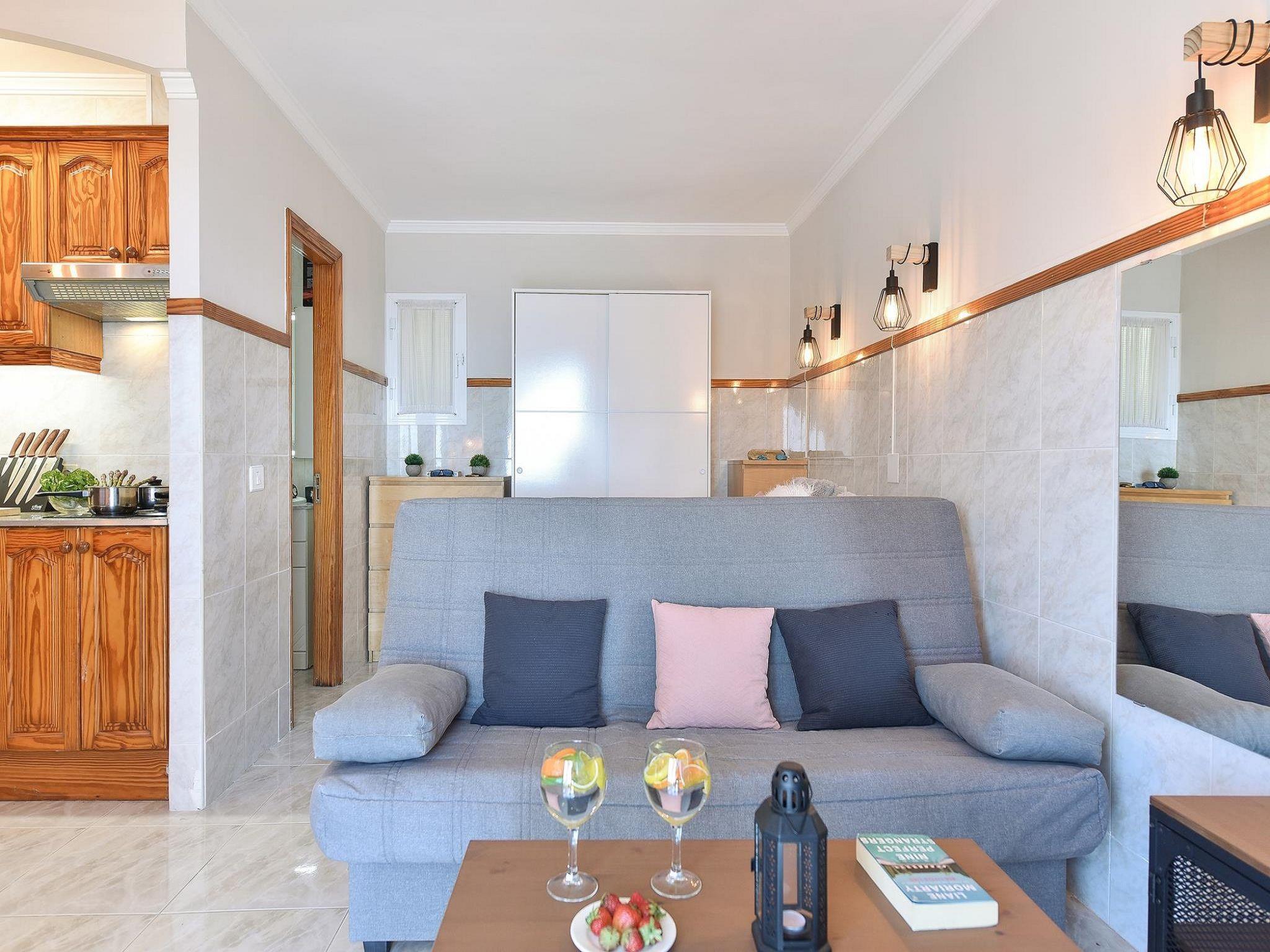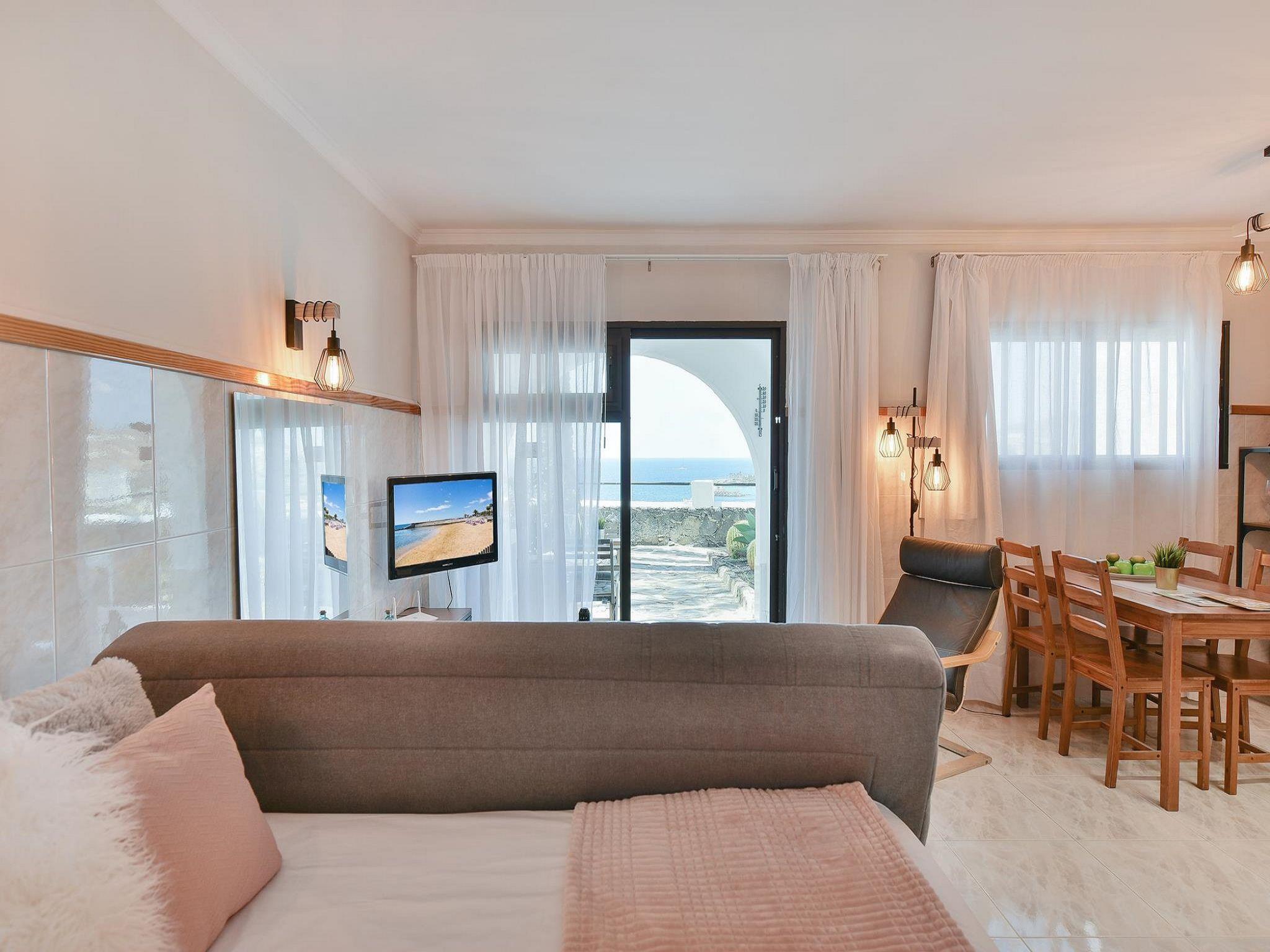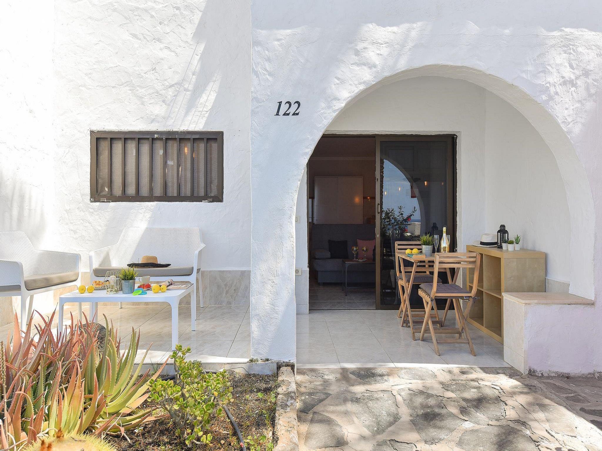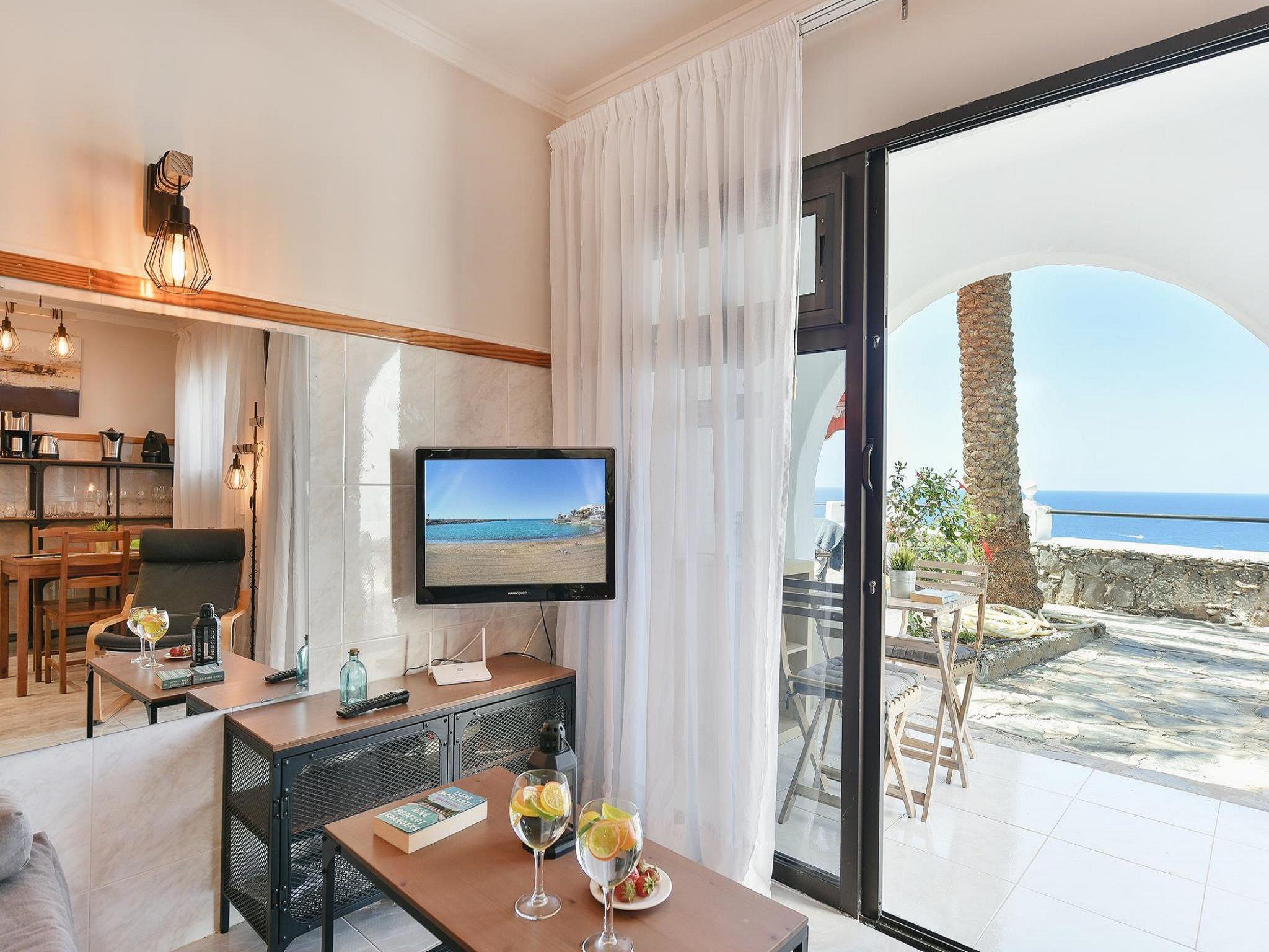 "Los Canarios 122", 1-room studio 34 m2. Object suitable for 2 adults. Comfortable and cosy furnishings: living/sleeping room with 1 double bed and digital TV. Exit to the terrace. Small kitchen (2 ceramic glass hob hotplates, toaster, kettle, microwave, freezer, electric coffee machine). Bath/shower. Natural stone floors. Patio, porch. Terrace furniture, deck chairs (4). Marvellous view of the sea. Facilities: washing machine, iron, children's high chair, baby cot for up to 2 year olds. Internet (WiFi, free). Please note: non-smokers only. Maximum 1 pet/ dog allowed. -Between 20:30 and 22:00 - EUR 30 -Between 22:00 and 00:00 - EUR 50 -Between 00:00 and 01:30 - EUR 80. VV-35-1-0022471 // Reg. Nr.: ESFCTU0000350210000065150000000000000VV-35-1-00224714