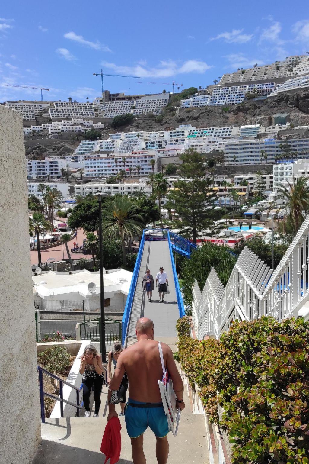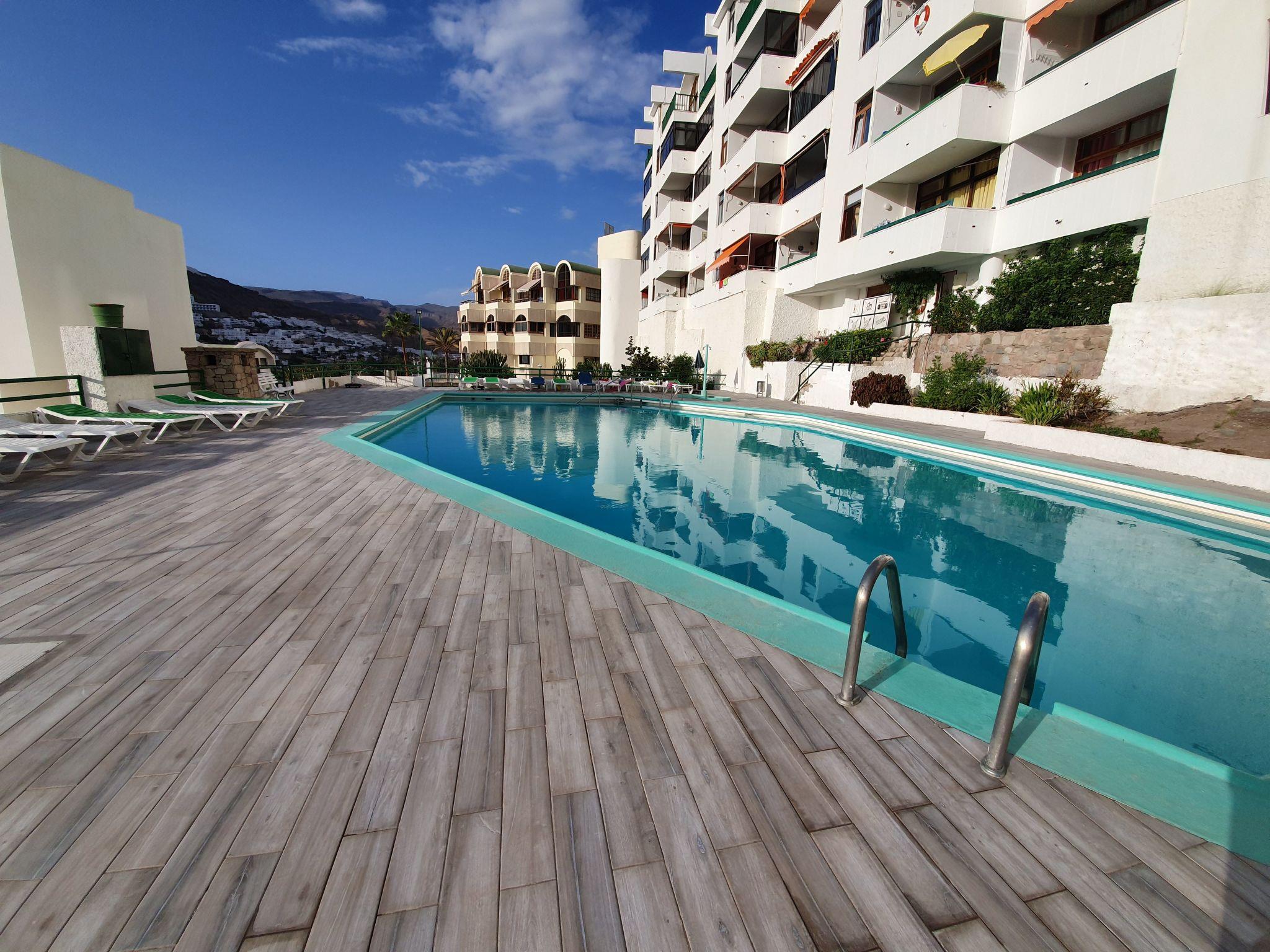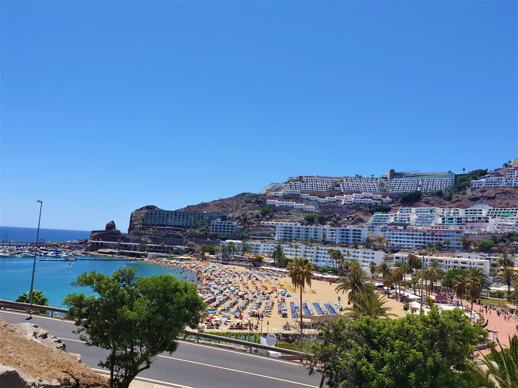 Outside, the property boasts a swimming pool situated in a vast solarium with unparalleled views of the gulf, ideal for relaxing under the Gran Canaria sun. The flat is close to outdoor parking spaces for guests who choose to explore the island by car.