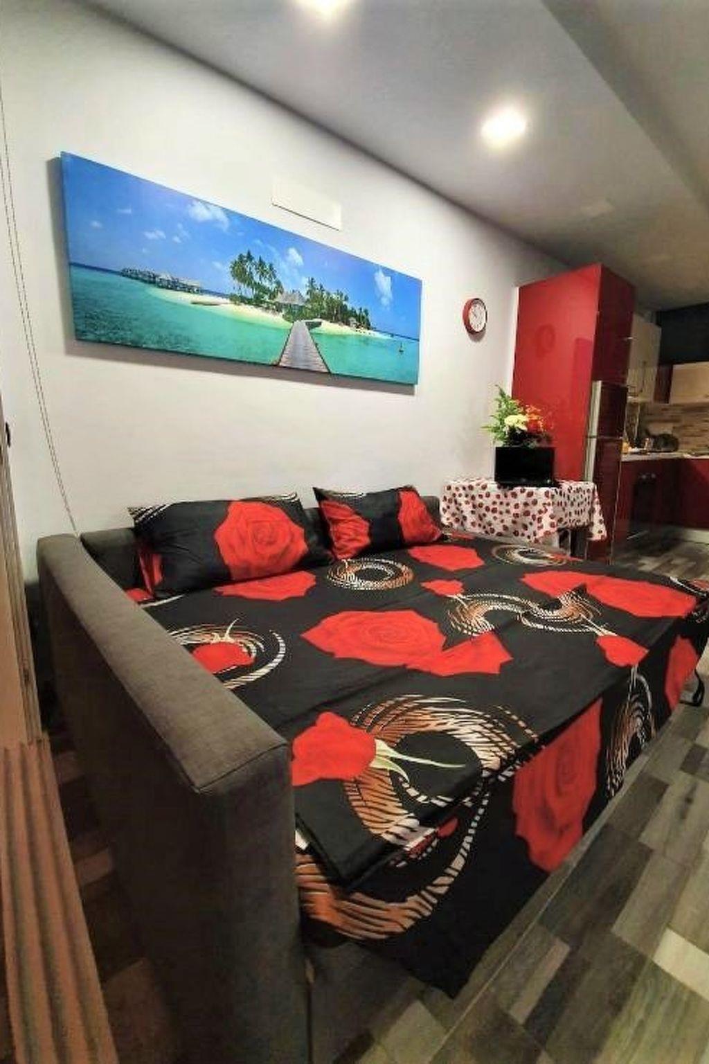 The interior of the flat has been completely renovated to offer comfort and functionality. Guests are welcomed into a spacious living room equipped with a comfortable double sofa bed, 50-inch Smart TV with satellite and internet access. The large bedroom with a double bed, which can be converted into two single beds, ensures a peaceful rest, while the bathroom boasts a large shower. The kitchen is equipped with modern appliances, including a classic oven, microwave, two types of coffee maker, and induction hob. Bed linen and towels are provided to ensure a carefree stay.