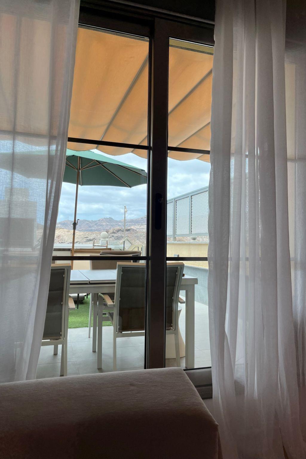 There is a terrace with dining table, 2 sun loungers and a parasol. There is also an extra parasol to take to the beach. The terrace is enclosed and has lots of privacy. There is a large communal pool with jacuzzi located right by the accommodation with outdoor shower. There is a parking space downstairs in the garage in the complex.