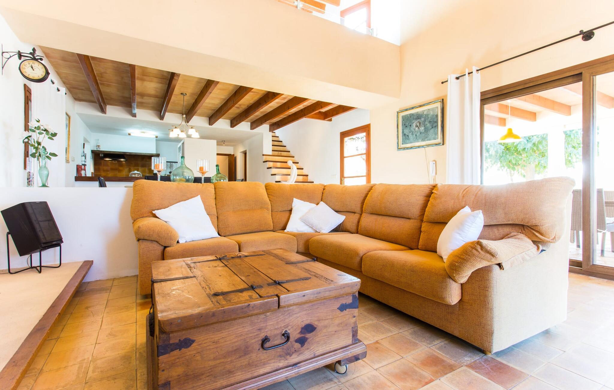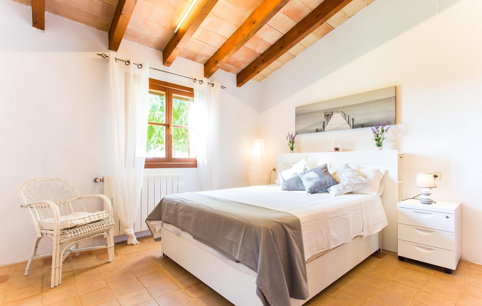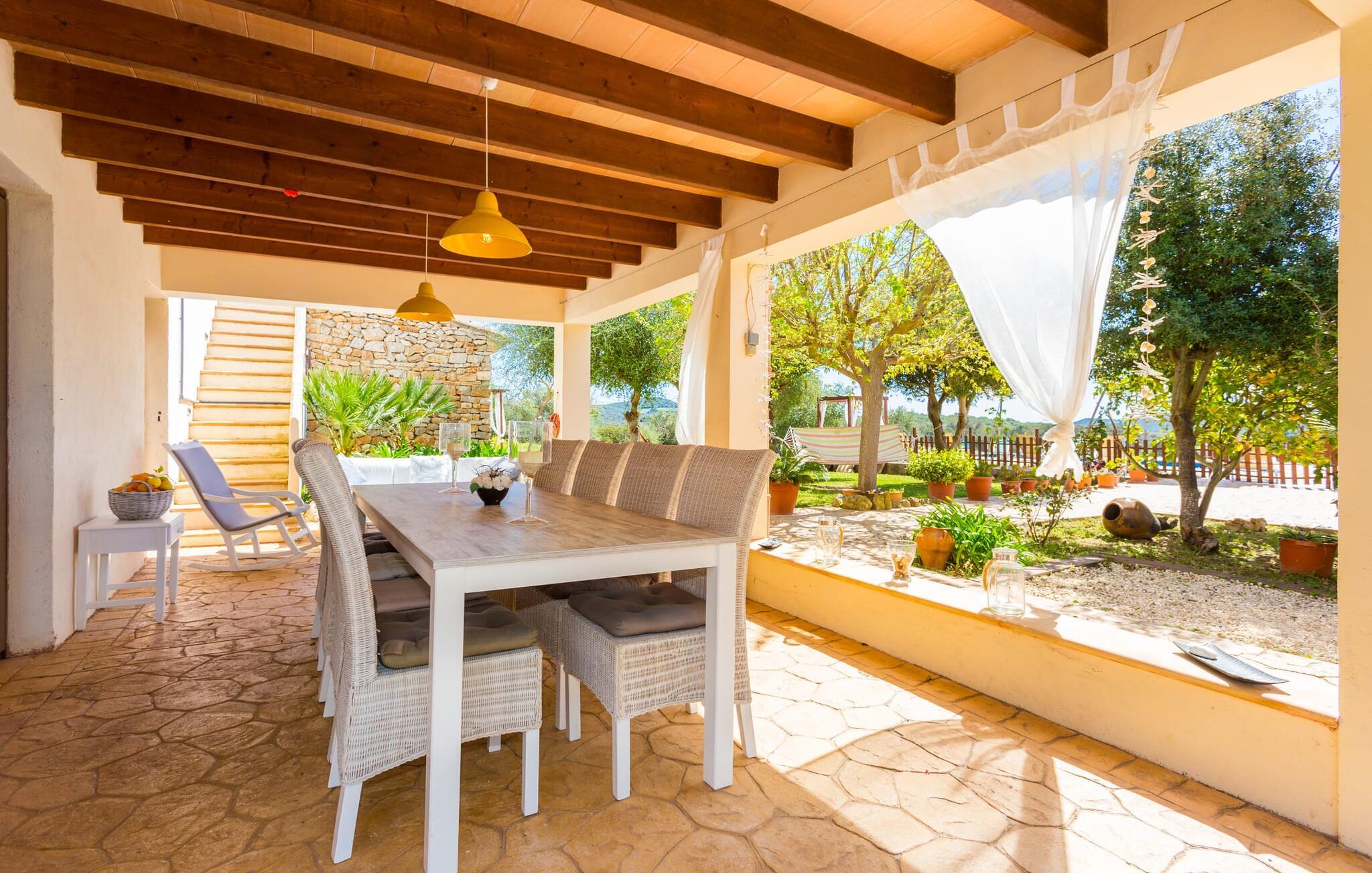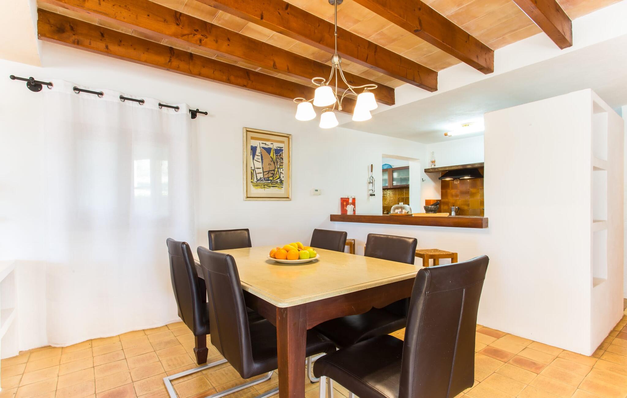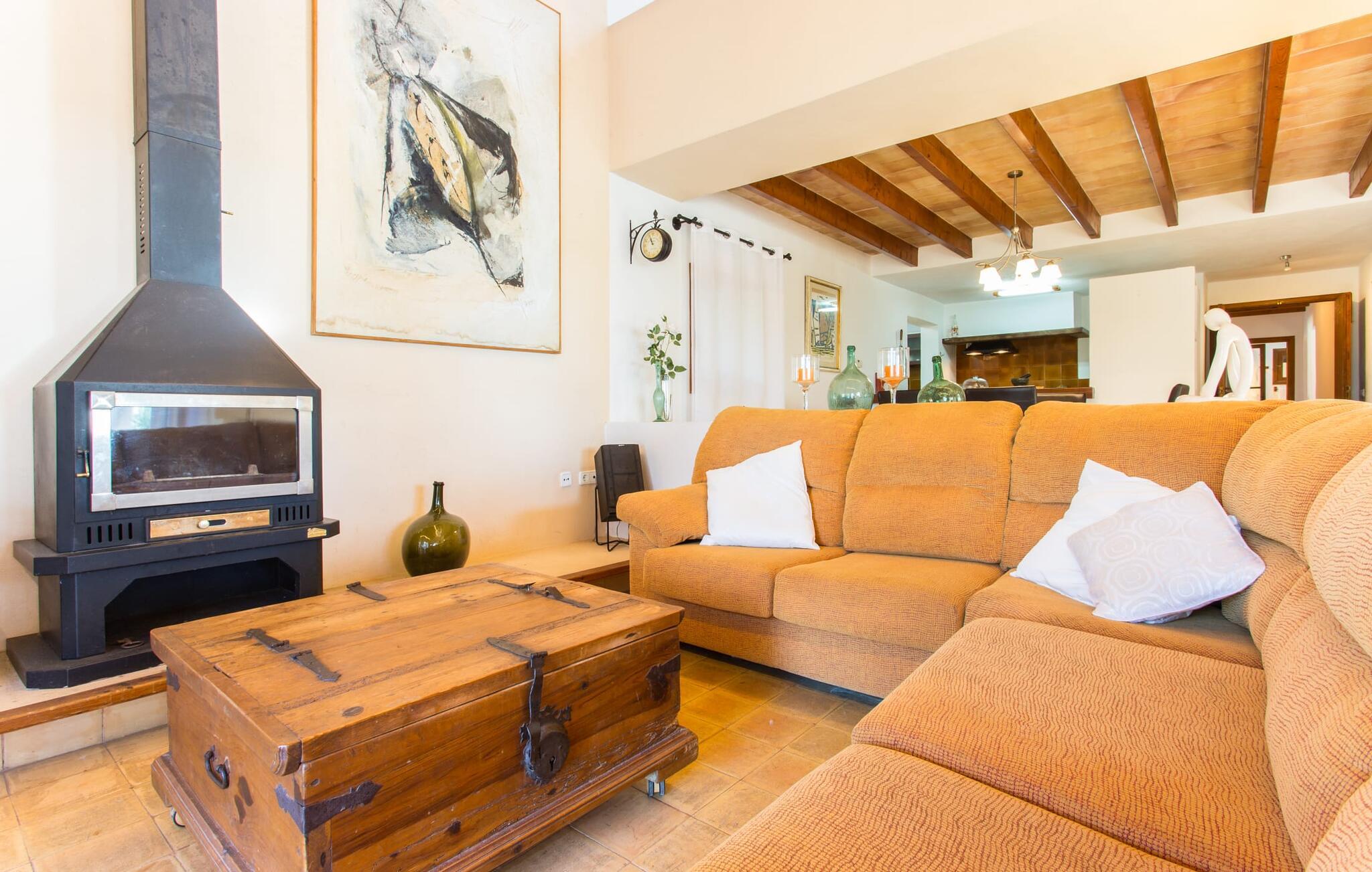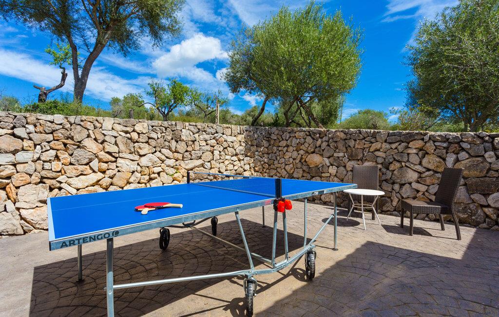 Selvom den er opkaldt efter den forhistoriske struktur fra Talayot-perioden, der blev opdaget i nærheden, går denne familie- og frem for alt cykelvenlige villa (med forskellige tjenester, som udlejeren tilbyder) midt i naturen ikke tilbage til antikken. Ikke desto mindre er det værd at "udgrave" alle aktiver i den omfattende grund af "Puig de ses Toltes", især da nogle af de smukkeste dele af bygningen er skjult under frodig vegetation. I kan prøve at få jeres hund og hans talentfulde næse til at hjælpe jer med at afdække dem alle! Nogle af disse fordele er: den fantastiske udsigt over Serra de Calicant, som I kan nå på cykel mod Petra og Ariany; den separate solterrasse med sommerlounge ved den børnesikre pool; grillen under baldakinen med atmosfæren af en italiensk piazza; afslapningsområdet med hængekøjer under træer og de små møblerede terrasser ved siden af bygningen. I vil helt sikkert finde endnu flere fortryllende detaljer på billederne! Det er meget muligt, at I ender med at tilbringe hele jeres ferie i villaen. Værelserne i "Puig de Ses Toltes" er et perfekt sted at slappe af - især mastersuiten i stueetagen med et moderne badeværelse med integreret bruser. OBS: Tv-hjørnet kunne friste jer til at blive sofakartoffel. Yderligere tre hyggeligt indrettede værelser i stueetagen og et åbent rum på øverste etage (med eksklusiv adgang til soldækket) deler de to andre badeværelser. Det er ganske vist ikke meget, men med lidt planlægning er det bestemt muligt. Tilføj de tre ekstra senge, og det kan ende med at blive lidt for behageligt. Mens nogle er i bad, kan andre gå i køkkenbaren til dagens første espresso og derefter gå udenfor på jagt efter det perfekte morgenmadssted. Køkkenet består af to dele og er dygtigt integreret i stuen. Den er stor nok til, at flere personer kan tilberede lækre æg og bacon for at give jer nok energi til jeres cykeltur. Pejsen er det perfekte sted at tilbringe sent om aftenen med at planlægge den næste dag på stranden, jeres næste dagstur eller diskutere de forskellige mulige ruter. Alternativt kan I også oliere jeres muskler med stærke væsker. Rummeligheden og indretningen af denne villa kan bruges på mange måder - kontakt os venligst, hvis I gerne vil rejse med mere end 8 personer. Der er mange skjulte skønheder at opdage i dette middelhavslandskab. Den lille by Sant Llorenç har fået tilnavnet Cardassar ("i tidslerne"), siden en figur af Madonnaen blev fundet i buskene. Denne lille og ryddelige by har nogle hyggelige butikker og restauranter, så I behøver ikke at gå langt, hvis det er det, I leder efter. Derudover er der på den sydøstlige kyst mellem Cap d'es Pinar i nord og Punta de sa Roca i nord en masse travlhed, maritim flair og smukke strande som Sa Marjal eller Sa Coma i syd. Med Serra de Calicant bag sig og kun 12 km fra de populære strande i den østlige del af øen, lover villaen "Puig de ses Toltes" at blive et tilbagetog eller begyndelsen på absolut fred og nærhed til naturen. Pretty San Lorenzo byder på dejlige butikker og restauranter. Med byliv til venstre (Manacor) og bjerglandsbycharme til højre (Artà), afmærkede cykelstier lige uden for døren samt havneflair og promenader, kan I opdage øen - i bil, til fods eller på cykel.