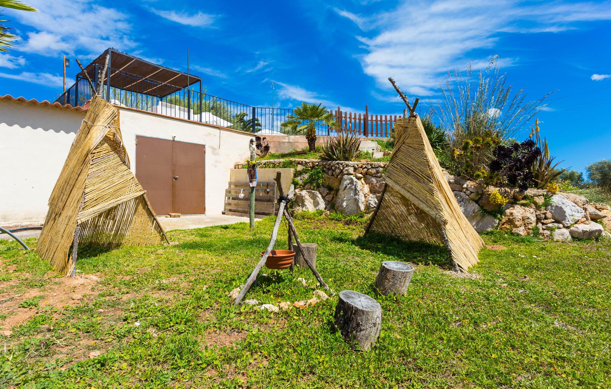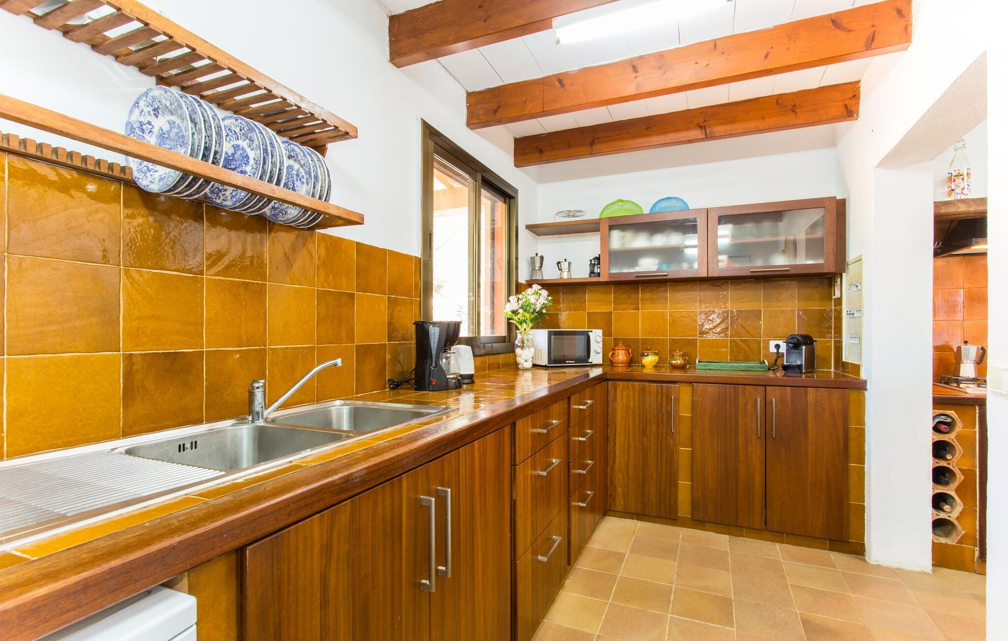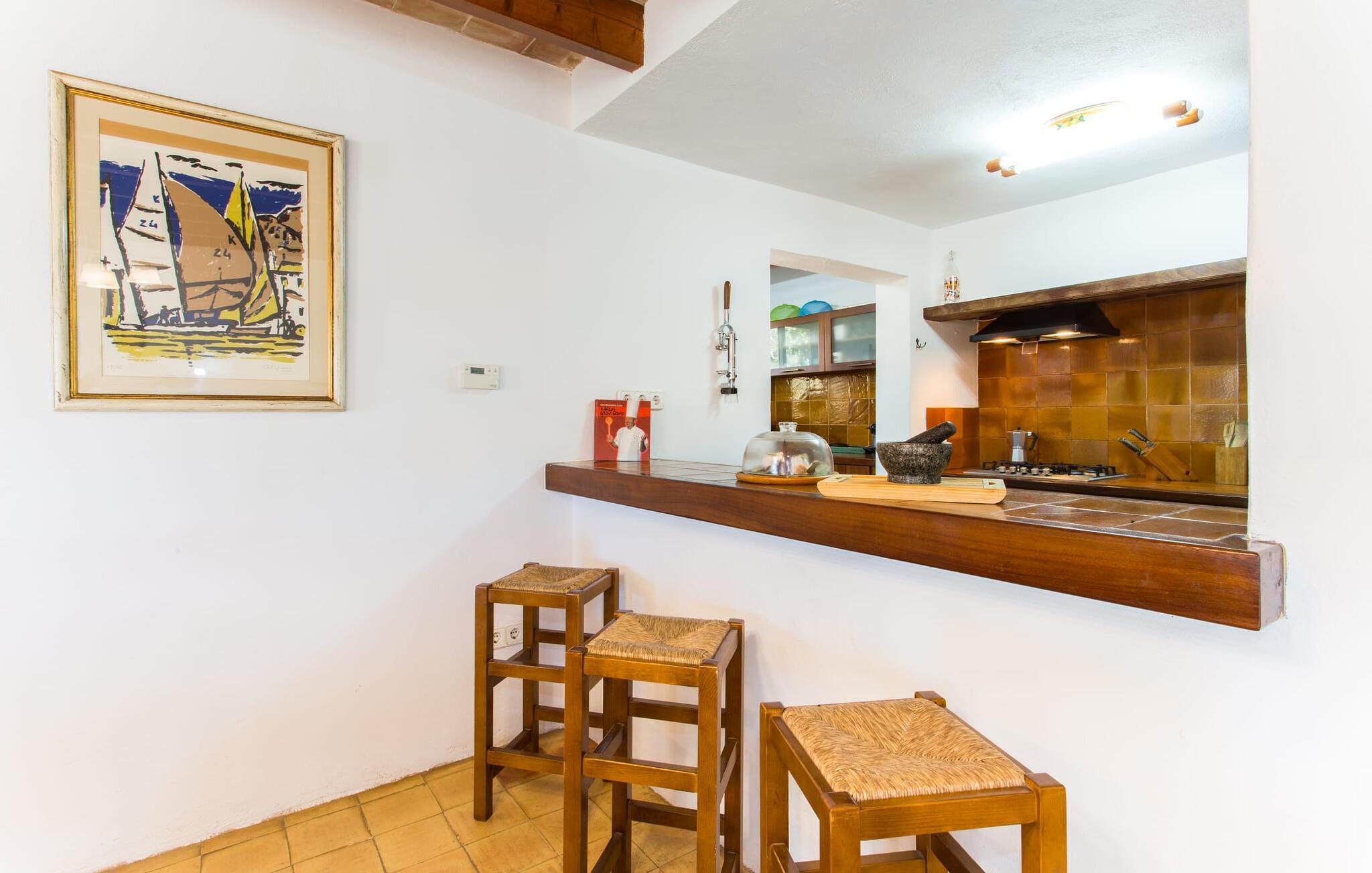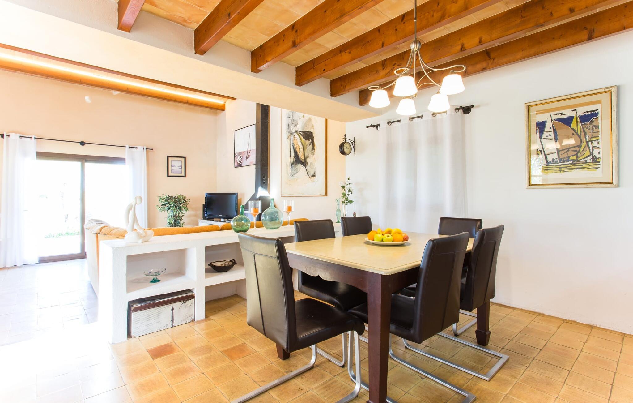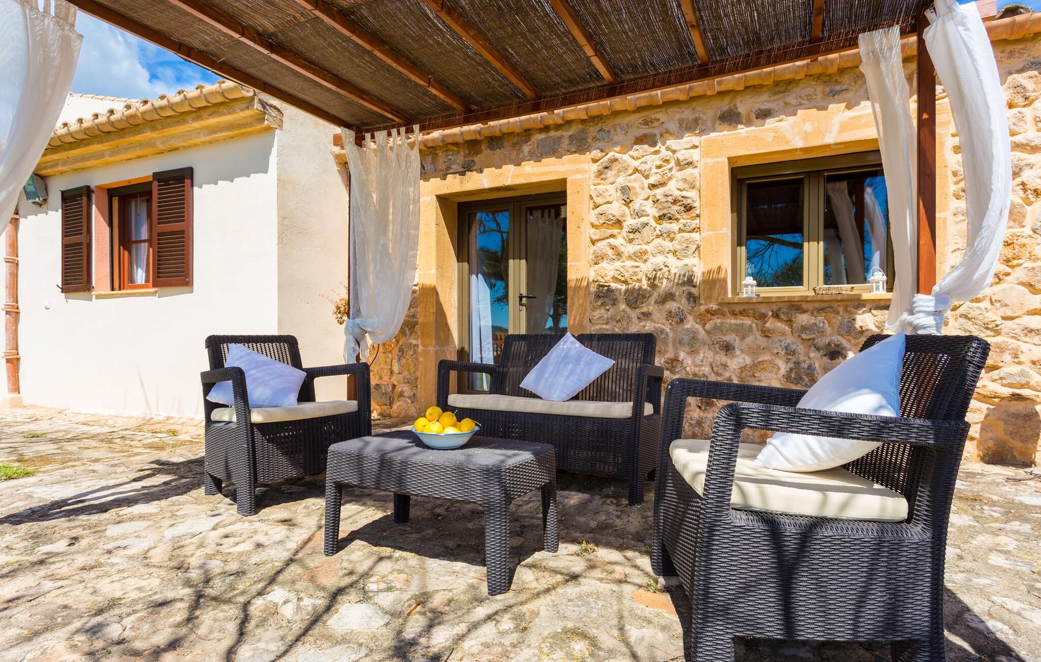 Selvom den er opkaldt efter den forhistoriske struktur fra Talayot-perioden, der blev opdaget i nærheden, går denne familie- og frem for alt cykelvenlige villa (med forskellige tjenester, som udlejeren tilbyder) midt i naturen ikke tilbage til antikken. Ikke desto mindre er det værd at "udgrave" alle aktiver i den omfattende grund af "Puig de ses Toltes", især da nogle af de smukkeste dele af bygningen er skjult under frodig vegetation. I kan prøve at få jeres hund og hans talentfulde næse til at hjælpe jer med at afdække dem alle! Nogle af disse fordele er: den fantastiske udsigt over Serra de Calicant, som I kan nå på cykel mod Petra og Ariany; den separate solterrasse med sommerlounge ved den børnesikre pool; grillen under baldakinen med atmosfæren af en italiensk piazza; afslapningsområdet med hængekøjer under træer og de små møblerede terrasser ved siden af bygningen. I vil helt sikkert finde endnu flere fortryllende detaljer på billederne! Det er meget muligt, at I ender med at tilbringe hele jeres ferie i villaen. Værelserne i "Puig de Ses Toltes" er et perfekt sted at slappe af - især mastersuiten i stueetagen med et moderne badeværelse med integreret bruser. OBS: Tv-hjørnet kunne friste jer til at blive sofakartoffel. Yderligere tre hyggeligt indrettede værelser i stueetagen og et åbent rum på øverste etage (med eksklusiv adgang til soldækket) deler de to andre badeværelser. Det er ganske vist ikke meget, men med lidt planlægning er det bestemt muligt. Tilføj de tre ekstra senge, og det kan ende med at blive lidt for behageligt. Mens nogle er i bad, kan andre gå i køkkenbaren til dagens første espresso og derefter gå udenfor på jagt efter det perfekte morgenmadssted. Køkkenet består af to dele og er dygtigt integreret i stuen. Den er stor nok til, at flere personer kan tilberede lækre æg og bacon for at give jer nok energi til jeres cykeltur. Pejsen er det perfekte sted at tilbringe sent om aftenen med at planlægge den næste dag på stranden, jeres næste dagstur eller diskutere de forskellige mulige ruter. Alternativt kan I også oliere jeres muskler med stærke væsker. Rummeligheden og indretningen af denne villa kan bruges på mange måder - kontakt os venligst, hvis I gerne vil rejse med mere end 8 personer. Der er mange skjulte skønheder at opdage i dette middelhavslandskab. Den lille by Sant Llorenç har fået tilnavnet Cardassar ("i tidslerne"), siden en figur af Madonnaen blev fundet i buskene. Denne lille og ryddelige by har nogle hyggelige butikker og restauranter, så I behøver ikke at gå langt, hvis det er det, I leder efter. Derudover er der på den sydøstlige kyst mellem Cap d'es Pinar i nord og Punta de sa Roca i nord en masse travlhed, maritim flair og smukke strande som Sa Marjal eller Sa Coma i syd. Med Serra de Calicant bag sig og kun 12 km fra de populære strande i den østlige del af øen, lover villaen "Puig de ses Toltes" at blive et tilbagetog eller begyndelsen på absolut fred og nærhed til naturen. Pretty San Lorenzo byder på dejlige butikker og restauranter. Med byliv til venstre (Manacor) og bjerglandsbycharme til højre (Artà), afmærkede cykelstier lige uden for døren samt havneflair og promenader, kan I opdage øen - i bil, til fods eller på cykel.
