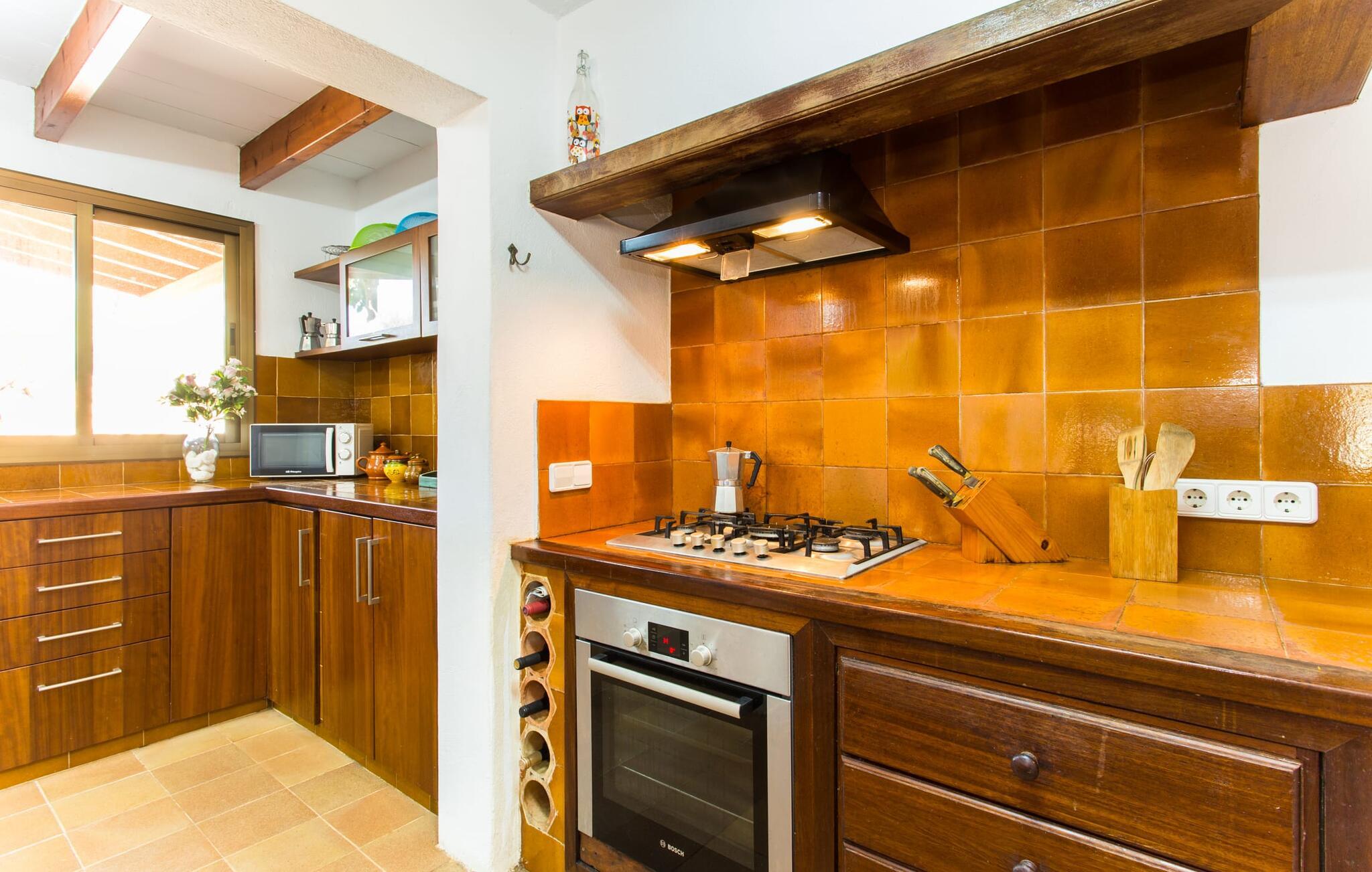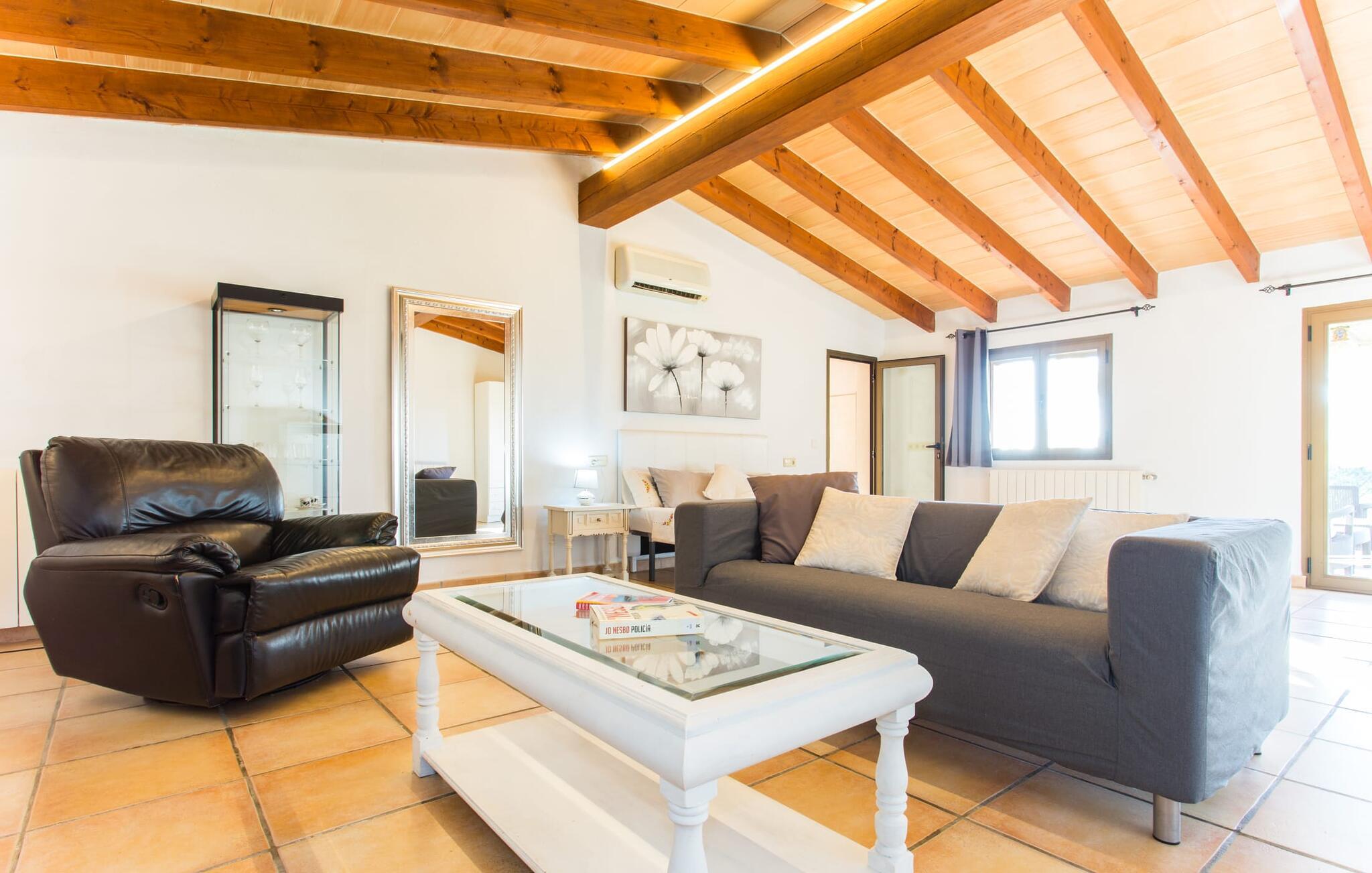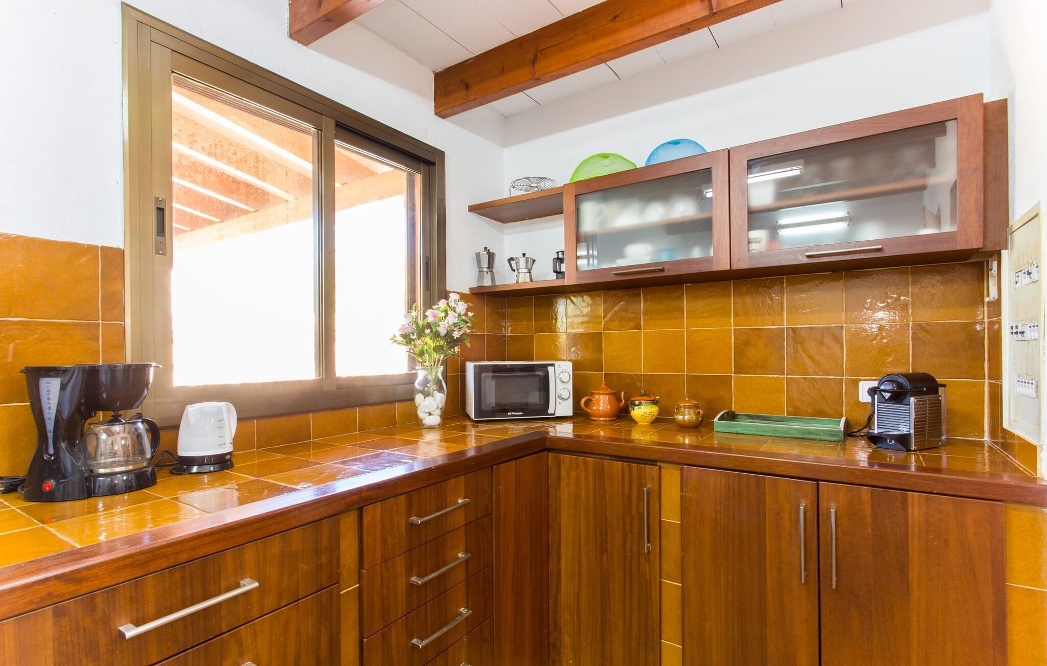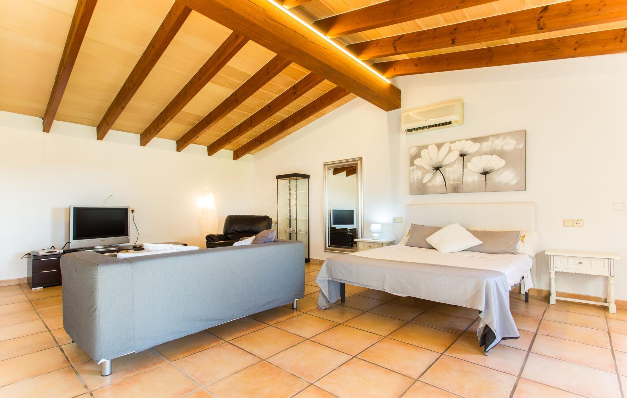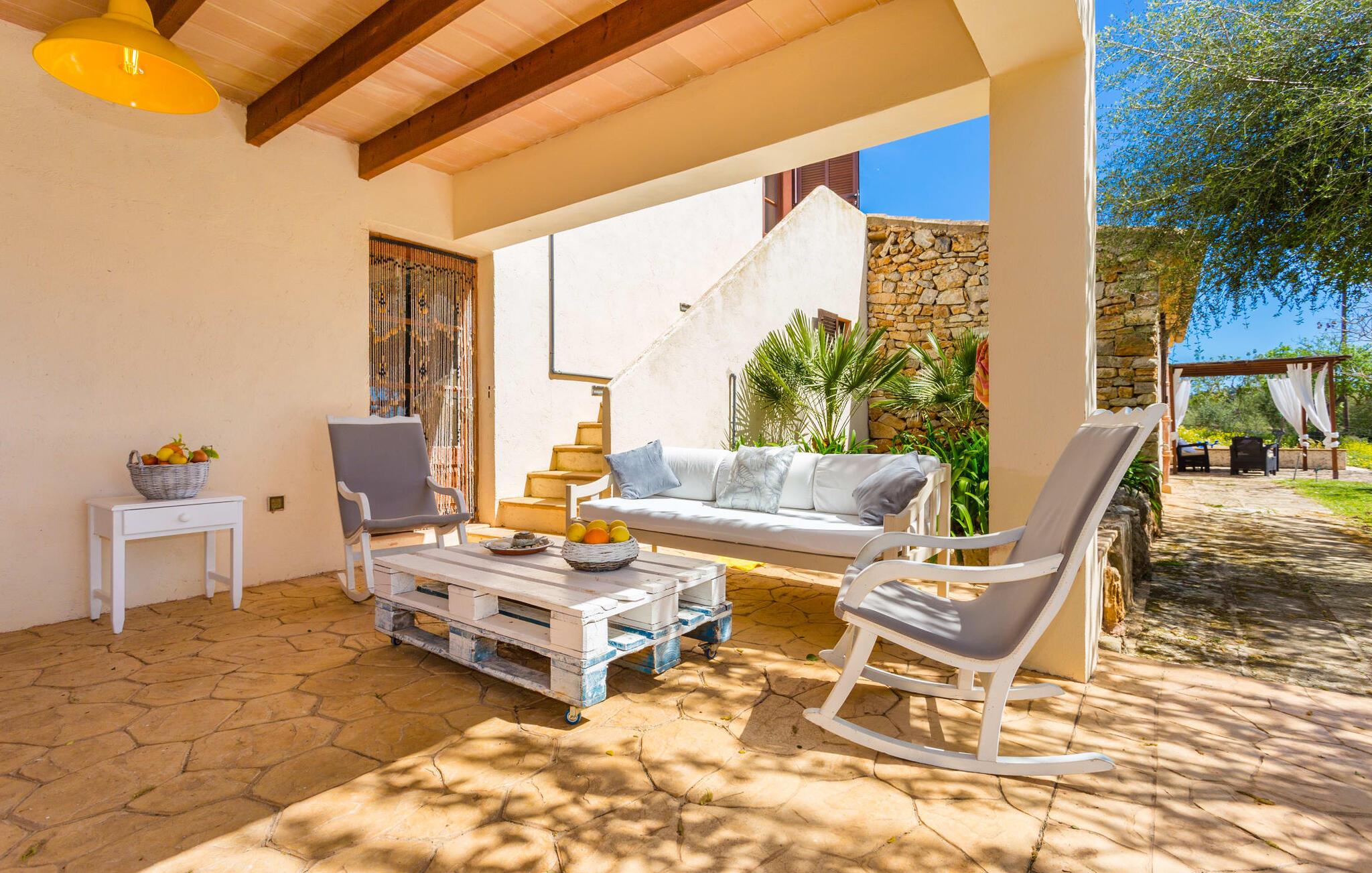 Selvom den er opkaldt efter den forhistoriske struktur fra Talayot-perioden, der blev opdaget i nærheden, går denne familie- og frem for alt cykelvenlige villa (med forskellige tjenester, som udlejeren tilbyder) midt i naturen ikke tilbage til antikken. Ikke desto mindre er det værd at "udgrave" alle aktiver i den omfattende grund af "Puig de ses Toltes", især da nogle af de smukkeste dele af bygningen er skjult under frodig vegetation. I kan prøve at få jeres hund og hans talentfulde næse til at hjælpe jer med at afdække dem alle! Nogle af disse fordele er: den fantastiske udsigt over Serra de Calicant, som I kan nå på cykel mod Petra og Ariany; den separate solterrasse med sommerlounge ved den børnesikre pool; grillen under baldakinen med atmosfæren af en italiensk piazza; afslapningsområdet med hængekøjer under træer og de små møblerede terrasser ved siden af bygningen. I vil helt sikkert finde endnu flere fortryllende detaljer på billederne! Det er meget muligt, at I ender med at tilbringe hele jeres ferie i villaen. Værelserne i "Puig de Ses Toltes" er et perfekt sted at slappe af - især mastersuiten i stueetagen med et moderne badeværelse med integreret bruser. OBS: Tv-hjørnet kunne friste jer til at blive sofakartoffel. Yderligere tre hyggeligt indrettede værelser i stueetagen og et åbent rum på øverste etage (med eksklusiv adgang til soldækket) deler de to andre badeværelser. Det er ganske vist ikke meget, men med lidt planlægning er det bestemt muligt. Tilføj de tre ekstra senge, og det kan ende med at blive lidt for behageligt. Mens nogle er i bad, kan andre gå i køkkenbaren til dagens første espresso og derefter gå udenfor på jagt efter det perfekte morgenmadssted. Køkkenet består af to dele og er dygtigt integreret i stuen. Den er stor nok til, at flere personer kan tilberede lækre æg og bacon for at give jer nok energi til jeres cykeltur. Pejsen er det perfekte sted at tilbringe sent om aftenen med at planlægge den næste dag på stranden, jeres næste dagstur eller diskutere de forskellige mulige ruter. Alternativt kan I også oliere jeres muskler med stærke væsker. Rummeligheden og indretningen af denne villa kan bruges på mange måder - kontakt os venligst, hvis I gerne vil rejse med mere end 8 personer. Der er mange skjulte skønheder at opdage i dette middelhavslandskab. Den lille by Sant Llorenç har fået tilnavnet Cardassar ("i tidslerne"), siden en figur af Madonnaen blev fundet i buskene. Denne lille og ryddelige by har nogle hyggelige butikker og restauranter, så I behøver ikke at gå langt, hvis det er det, I leder efter. Derudover er der på den sydøstlige kyst mellem Cap d'es Pinar i nord og Punta de sa Roca i nord en masse travlhed, maritim flair og smukke strande som Sa Marjal eller Sa Coma i syd. Med Serra de Calicant bag sig og kun 12 km fra de populære strande i den østlige del af øen, lover villaen "Puig de ses Toltes" at blive et tilbagetog eller begyndelsen på absolut fred og nærhed til naturen. Pretty San Lorenzo byder på dejlige butikker og restauranter. Med byliv til venstre (Manacor) og bjerglandsbycharme til højre (Artà), afmærkede cykelstier lige uden for døren samt havneflair og promenader, kan I opdage øen - i bil, til fods eller på cykel.