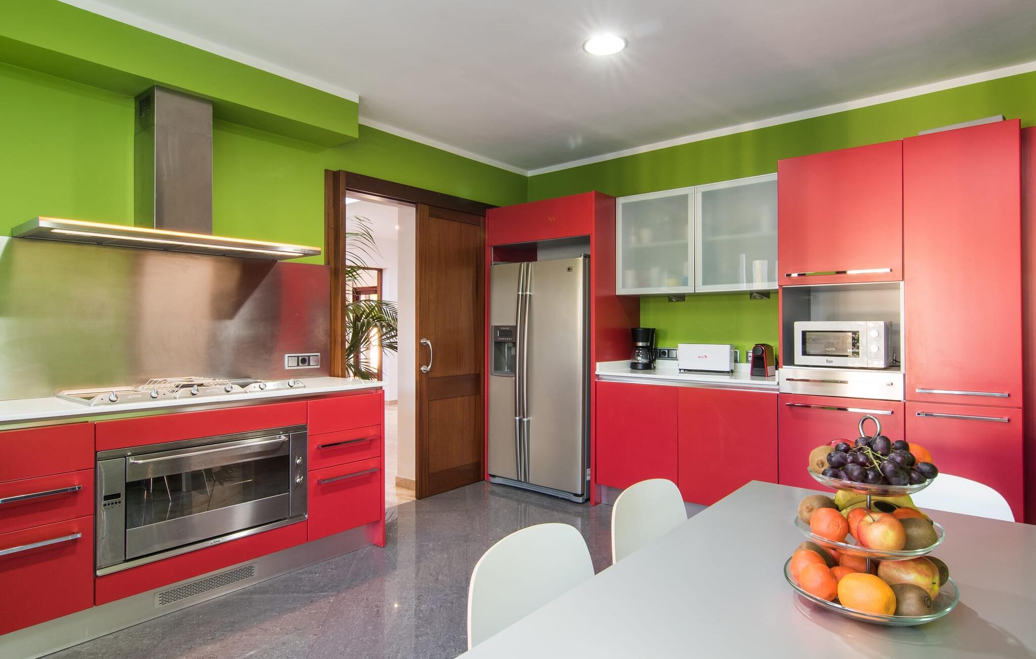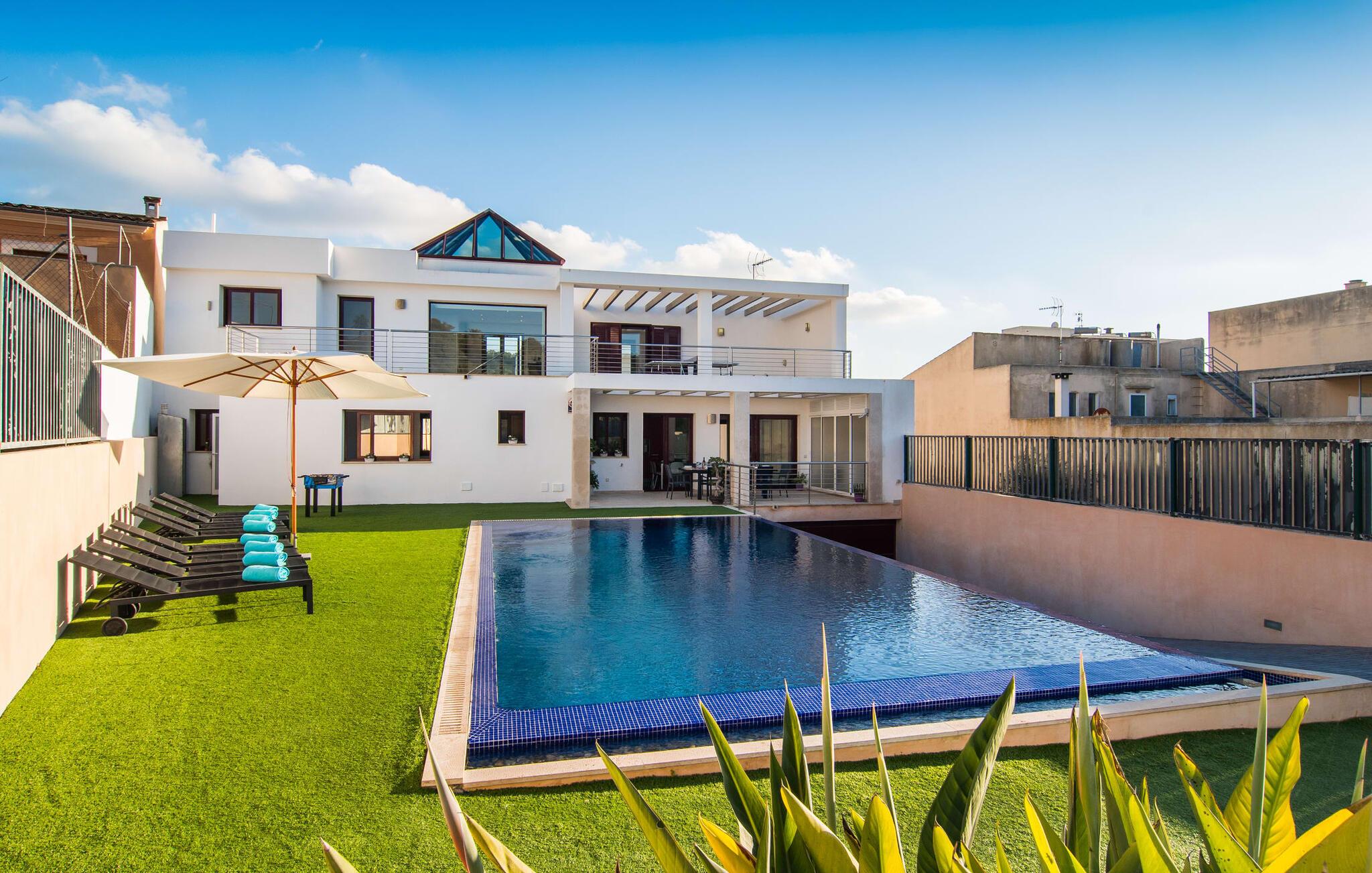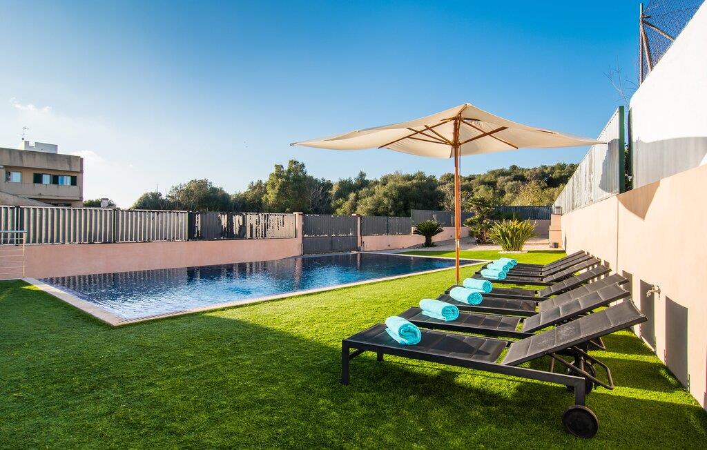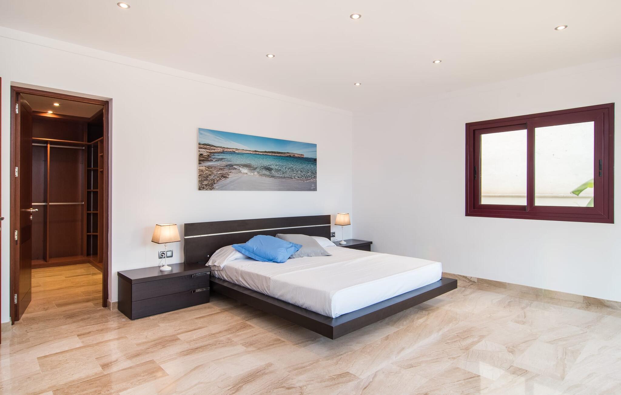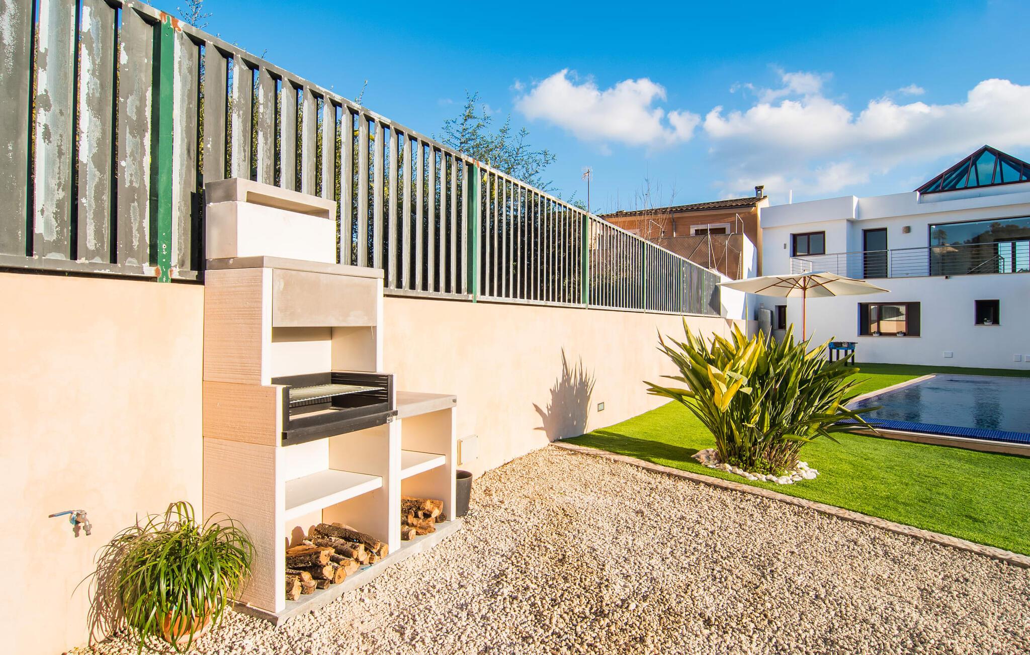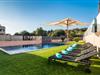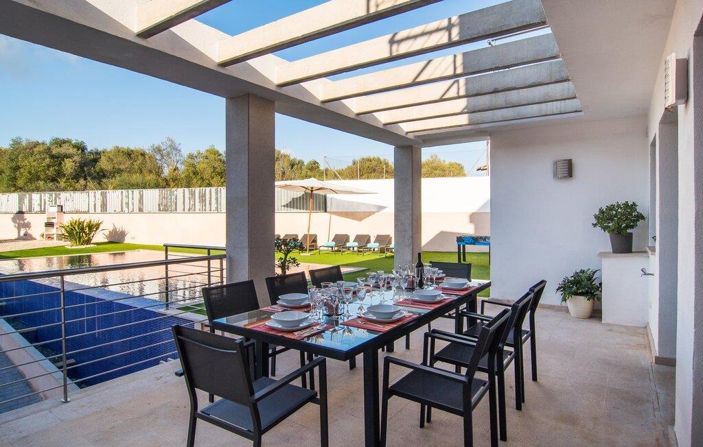 Har I en passion for moderne arkitektur? Kan I lide store, lyse rum og klare linjer? Og værdsætter I at have alt inden for rækkevidde, når I er på ferie – fra supermarkedet til restauranter og caféer til omfattende indkøbsmuligheder? Så er der en god chance for, at I vil føle jer hjemme i den super smarte villa “Puig Verd”! Det lyse hvide hus med sit spektakulære glastag ligger på en typisk villavej i Felanitx. Fra den overdækkede terrasse med spisebord og stole i stueetagen samt den delvist overdækkede tagterrasse kan I se ud over de skønt grønne omkringliggende bakker - og over den store infinity pool lige bag huset. I kan nyde den varmende sol på komfortable liggestole lige ud til det kølige vand eller fordybe jer i en spændende krimi under parasollen. Blot et par meter væk ligger den in-house grill, som inviterer jer til at tilberede kulinariske delikatesser i det fri. Og hvis I vil have lidt motion bagefter, er det bare at gå ovenpå og spille et spil bordtennis på den rummelige tagterrasse. Værelserne i jeres villa strækker sig over to etager. Store vinduer lukker det typiske middelhavslys ind overalt; Denne effekt forstærkes af de sprøde hvide vægge, der findes i de fleste rum. En rummelig spise- og opholdsstue venter på jer i stueetagen: med et elegant glas spisebord med stole, oplyst af en futuristisk udseende lampe og en indbydende sofa med hyggelige puder og et sofabord til snacks og drinks under en hyggelig aften med at se tv . Villaen byder dog på meget mere spænding end et fjernsyn - og bekvemt er der en blød lænestol lige foran den: ejerne af villaen har installeret et kæmpe tropisk akvarium i stuen, med eksotiske, farverige fisk, der svømmer mellem smukke koraller . Det stilrene køkken med højkvalitets hvidevarer er også farverigt indrettet i røde og grønne toner. To smagfuldt indrettede soveværelser og to badeværelser, hvoraf det ene er en-suite, fuldender boligarealet i stueetagen. Ovenpå er der yderligere to soveværelser med private badeværelser. "Puig Verd" ligger midt i Felanitx, en afslappet by i det sydlige Mallorca og også centrum for den næststørste vinregion på øen. Fra jeres sommerhus, der ligger direkte på villavejen, kan I nemt og bekvemt gå ind i landsbyen, shoppe eller besøge en eller to restauranter. Udover de gode egnsvine bør I bestemt prøve de aromatiske kapers, der dyrkes i området. Et besøg på det ugentlige marked om søndagen er altid umagen værd, især de kunstneriske keramiske stykker er meget populære her. Men det omkringliggende område af byen er også interessant: for eksempel klosteret St. Salvador, som ligger på en imponerende bakke i nærheden - I kan endda se det fra huset. Ikke alene er klostret med sin storslåede kirke et besøg værd, panoramaudsigten derfra vil også sikre et uforglemmeligt ferieminde! Hvis I foretrækker at tage til stranden, skal I blot køre cirka 14 km til Cala Murada eller Cala Tropicana. I øvrigt: Cykelforretningen "Els" ligger 100 m fra huset. Hvert ophold i villaen får 10% rabat på alle produkter og tjenester. Der er også gode forbindelser til cykelstierne omkring huset. Har I selv medbragt cykler, kan I parkere dem i det fredede område på den nederste overdækkede terrasse. Villa "Puig Verd" imponerer på alle niveauer: Det supermoderne hus med møbler af høj kvalitet er et sandt højdepunkt for arkitekturelskere, ikke kun med sine delvist overdækkede terrasser på flere niveauer og dets glashvælvede loft. Den scorer også point med sin store, skrånende pool og velholdte græsplæne – og sidst men ikke mindst sin fremragende beliggenhed i den afslappede lille by Felanitx på det sydlige Mallorca. For en dag på stranden skal I kun køre cirka 14 km, for eksempel til Cala Murada.