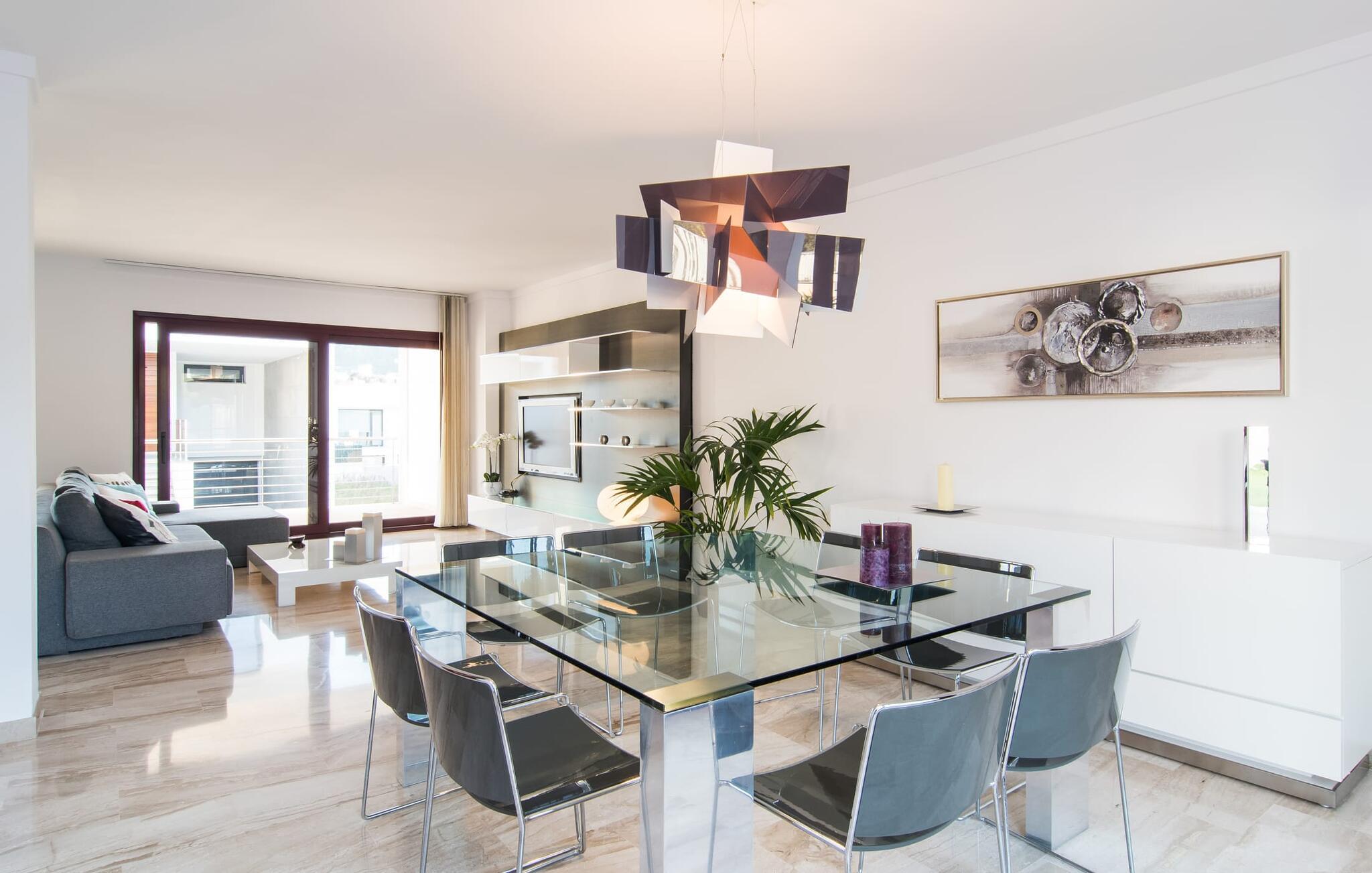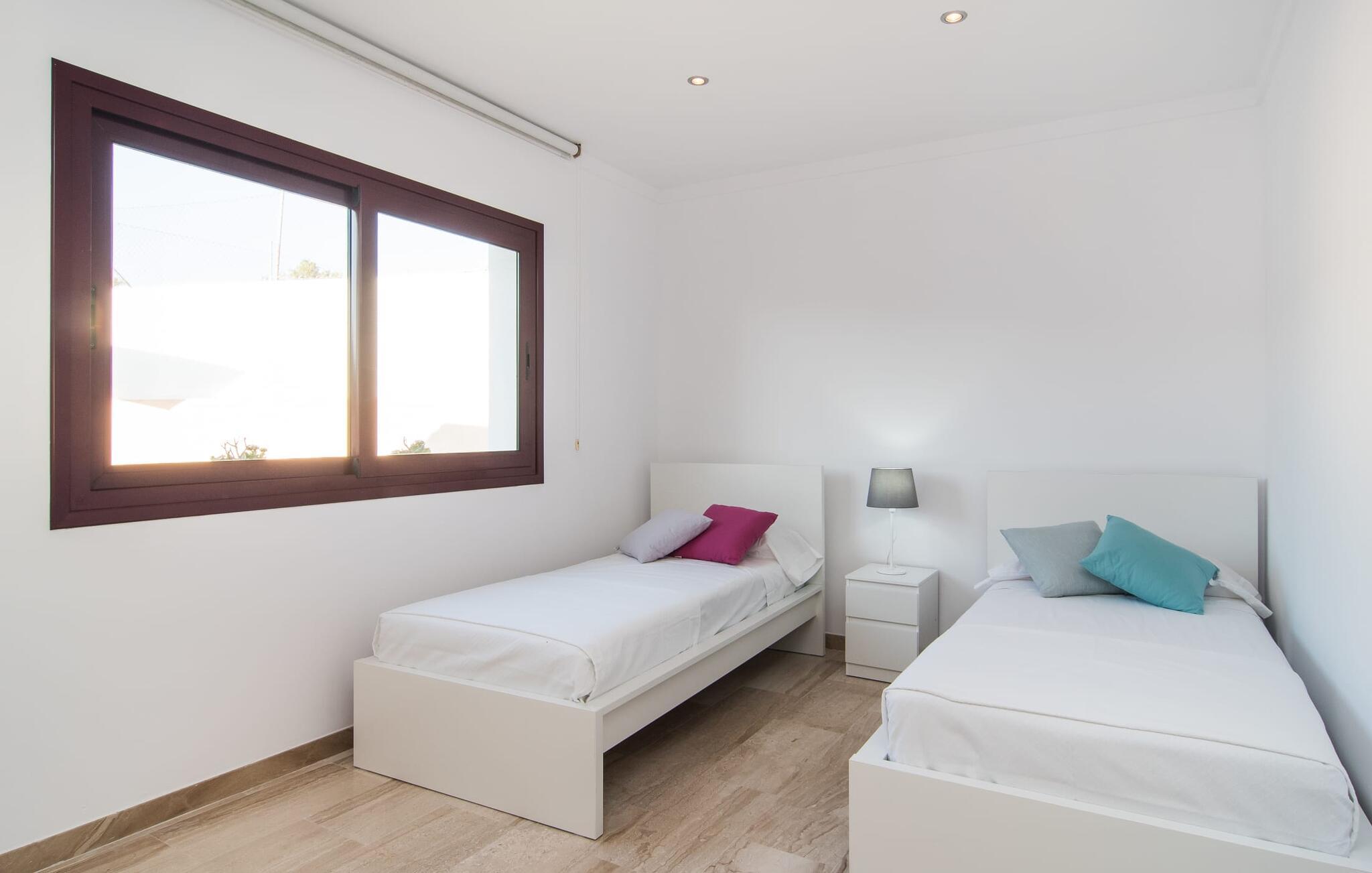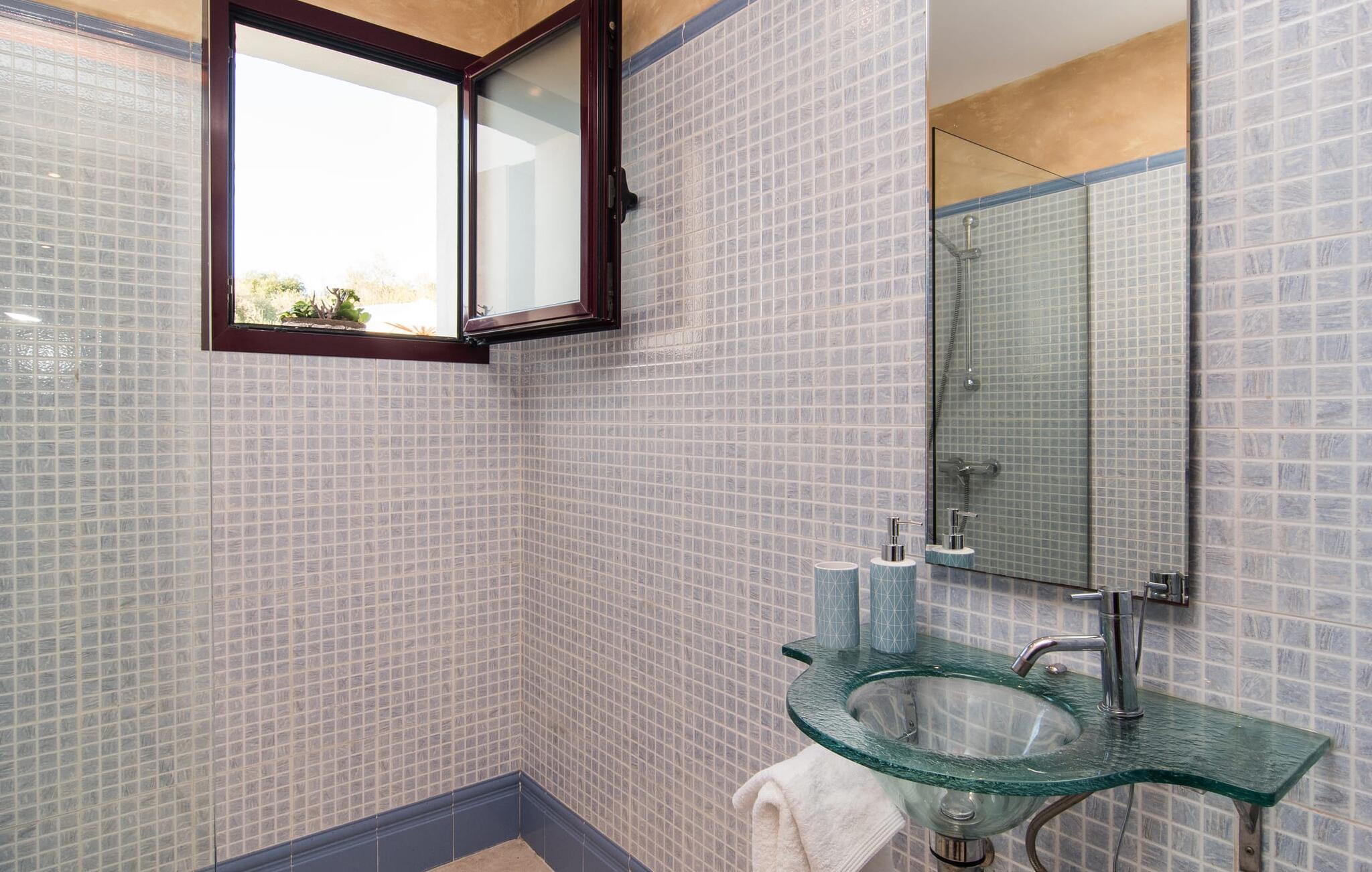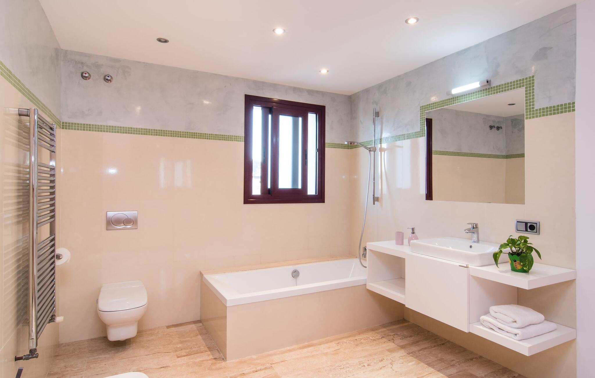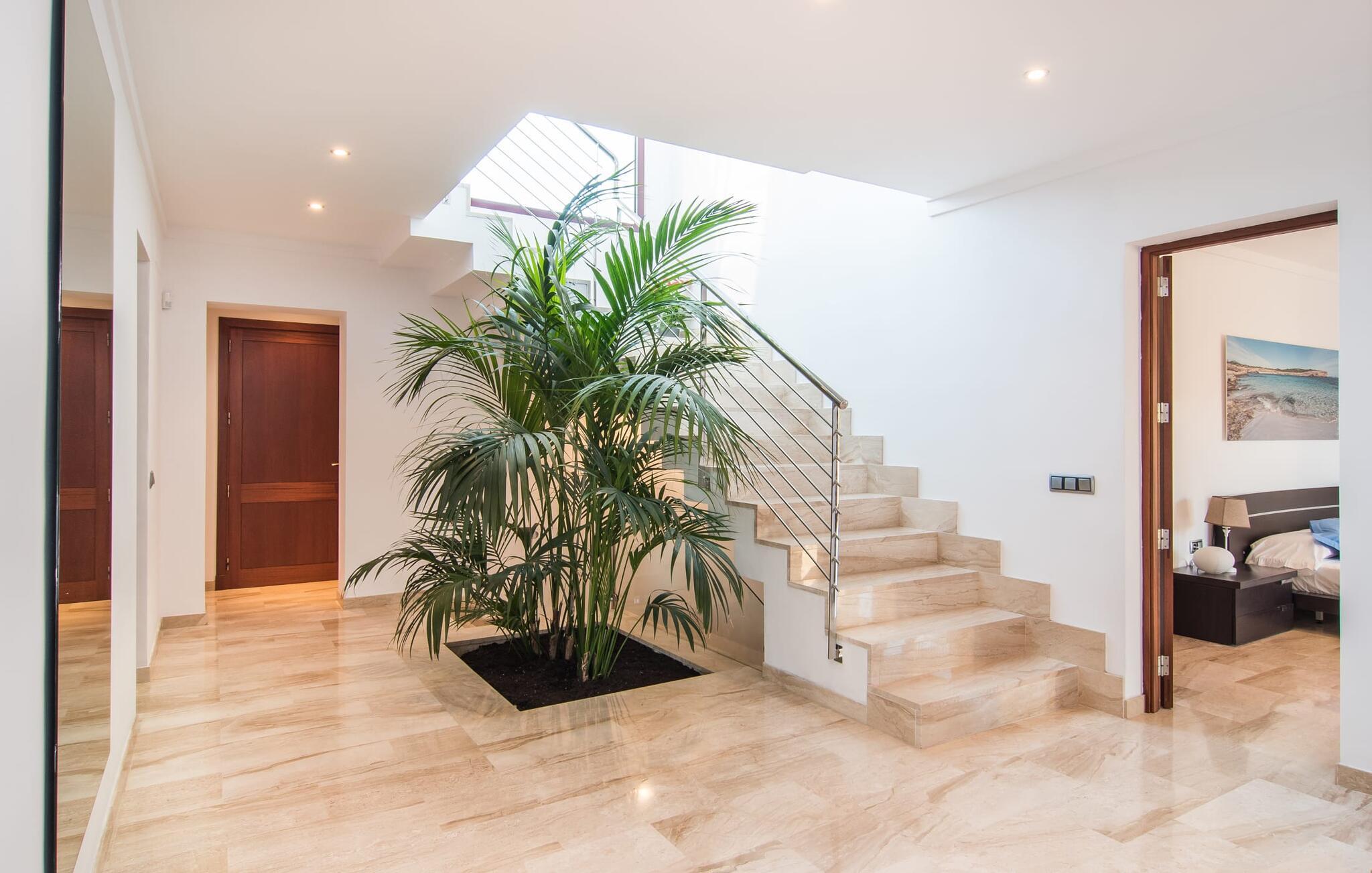 Har I en passion for moderne arkitektur? Kan I lide store, lyse rum og klare linjer? Og værdsætter I at have alt inden for rækkevidde, når I er på ferie – fra supermarkedet til restauranter og caféer til omfattende indkøbsmuligheder? Så er der en god chance for, at I vil føle jer hjemme i den super smarte villa “Puig Verd”! Det lyse hvide hus med sit spektakulære glastag ligger på en typisk villavej i Felanitx. Fra den overdækkede terrasse med spisebord og stole i stueetagen samt den delvist overdækkede tagterrasse kan I se ud over de skønt grønne omkringliggende bakker - og over den store infinity pool lige bag huset. I kan nyde den varmende sol på komfortable liggestole lige ud til det kølige vand eller fordybe jer i en spændende krimi under parasollen. Blot et par meter væk ligger den in-house grill, som inviterer jer til at tilberede kulinariske delikatesser i det fri. Og hvis I vil have lidt motion bagefter, er det bare at gå ovenpå og spille et spil bordtennis på den rummelige tagterrasse. Værelserne i jeres villa strækker sig over to etager. Store vinduer lukker det typiske middelhavslys ind overalt; Denne effekt forstærkes af de sprøde hvide vægge, der findes i de fleste rum. En rummelig spise- og opholdsstue venter på jer i stueetagen: med et elegant glas spisebord med stole, oplyst af en futuristisk udseende lampe og en indbydende sofa med hyggelige puder og et sofabord til snacks og drinks under en hyggelig aften med at se tv . Villaen byder dog på meget mere spænding end et fjernsyn - og bekvemt er der en blød lænestol lige foran den: ejerne af villaen har installeret et kæmpe tropisk akvarium i stuen, med eksotiske, farverige fisk, der svømmer mellem smukke koraller . Det stilrene køkken med højkvalitets hvidevarer er også farverigt indrettet i røde og grønne toner. To smagfuldt indrettede soveværelser og to badeværelser, hvoraf det ene er en-suite, fuldender boligarealet i stueetagen. Ovenpå er der yderligere to soveværelser med private badeværelser. "Puig Verd" ligger midt i Felanitx, en afslappet by i det sydlige Mallorca og også centrum for den næststørste vinregion på øen. Fra jeres sommerhus, der ligger direkte på villavejen, kan I nemt og bekvemt gå ind i landsbyen, shoppe eller besøge en eller to restauranter. Udover de gode egnsvine bør I bestemt prøve de aromatiske kapers, der dyrkes i området. Et besøg på det ugentlige marked om søndagen er altid umagen værd, især de kunstneriske keramiske stykker er meget populære her. Men det omkringliggende område af byen er også interessant: for eksempel klosteret St. Salvador, som ligger på en imponerende bakke i nærheden - I kan endda se det fra huset. Ikke alene er klostret med sin storslåede kirke et besøg værd, panoramaudsigten derfra vil også sikre et uforglemmeligt ferieminde! Hvis I foretrækker at tage til stranden, skal I blot køre cirka 14 km til Cala Murada eller Cala Tropicana. I øvrigt: Cykelforretningen "Els" ligger 100 m fra huset. Hvert ophold i villaen får 10% rabat på alle produkter og tjenester. Der er også gode forbindelser til cykelstierne omkring huset. Har I selv medbragt cykler, kan I parkere dem i det fredede område på den nederste overdækkede terrasse. Villa "Puig Verd" imponerer på alle niveauer: Det supermoderne hus med møbler af høj kvalitet er et sandt højdepunkt for arkitekturelskere, ikke kun med sine delvist overdækkede terrasser på flere niveauer og dets glashvælvede loft. Den scorer også point med sin store, skrånende pool og velholdte græsplæne – og sidst men ikke mindst sin fremragende beliggenhed i den afslappede lille by Felanitx på det sydlige Mallorca. For en dag på stranden skal I kun køre cirka 14 km, for eksempel til Cala Murada.