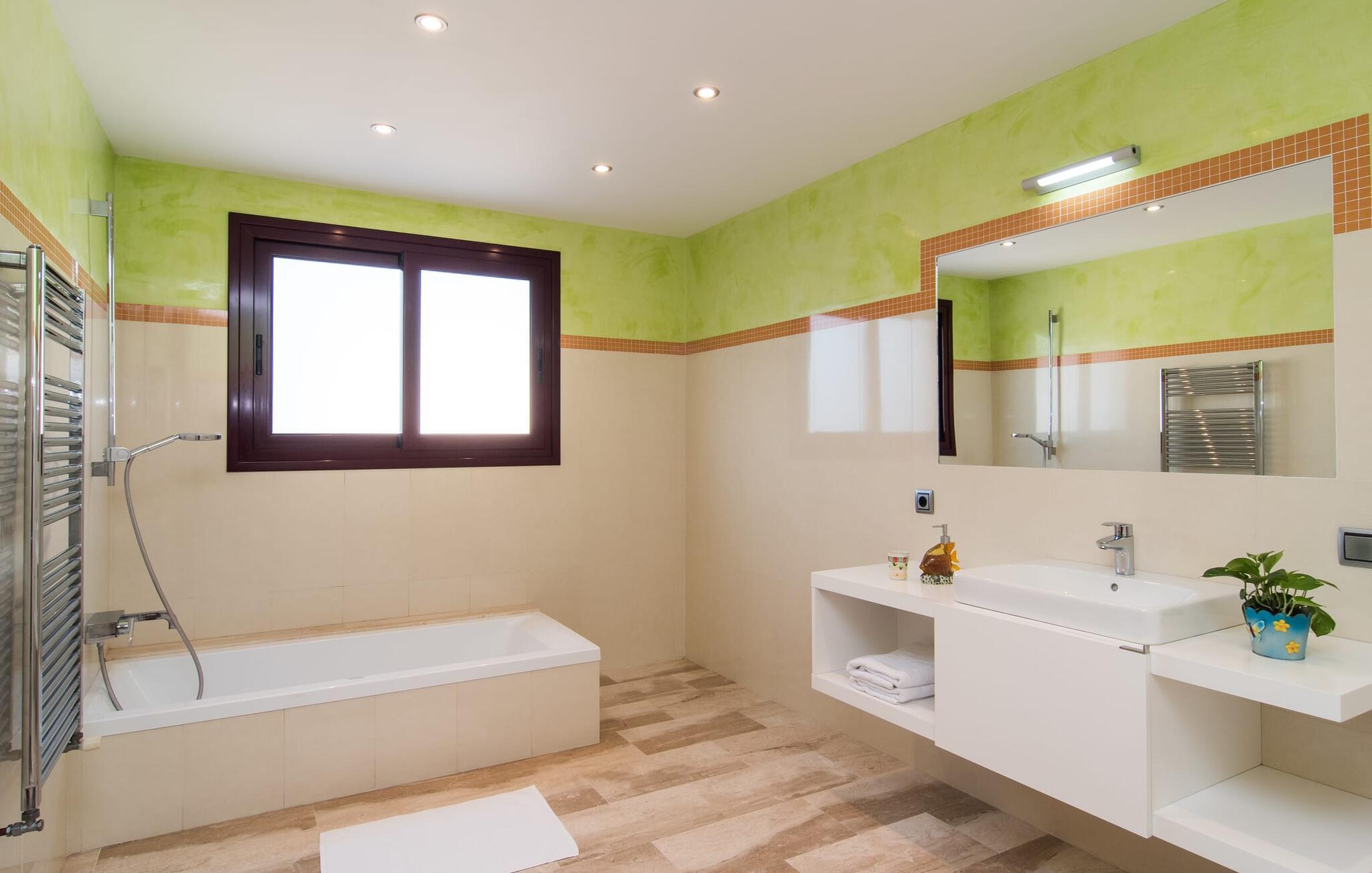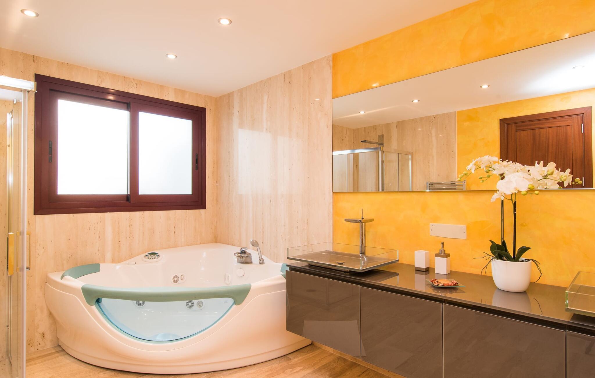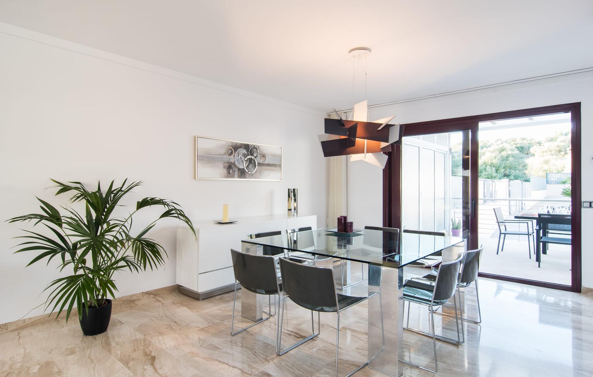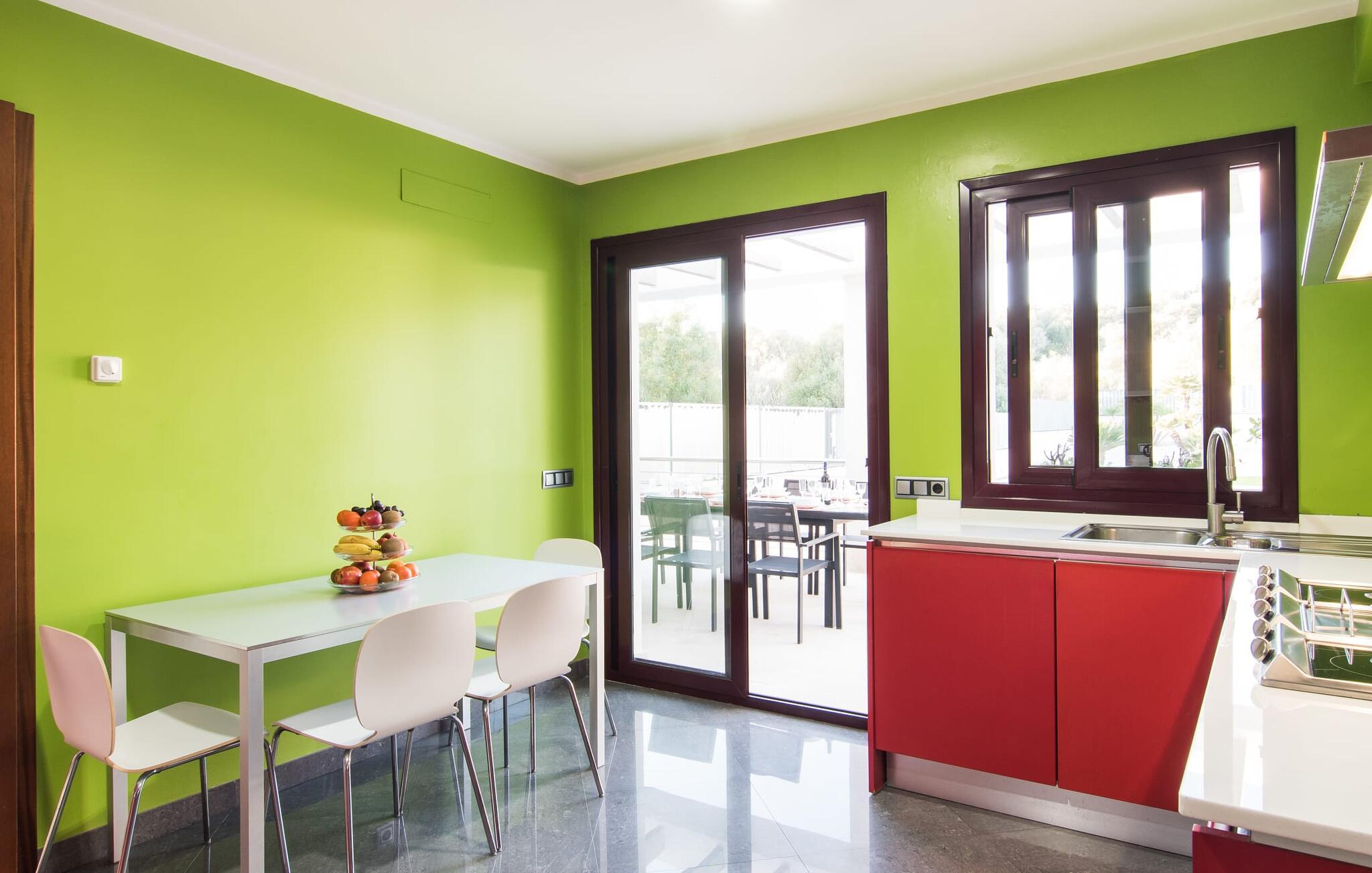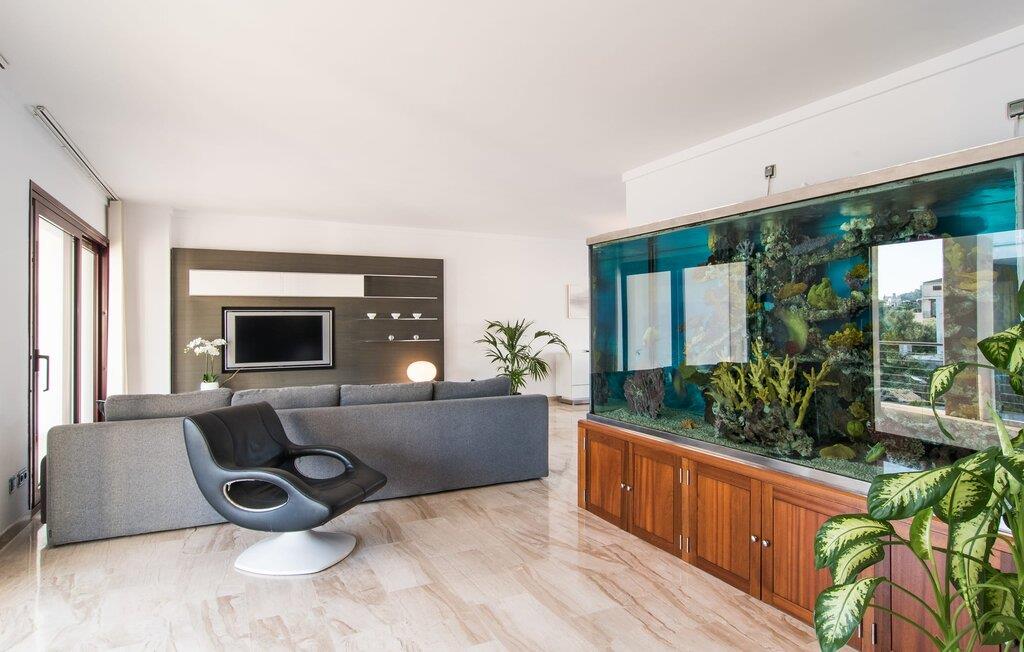 Har I en passion for moderne arkitektur? Kan I lide store, lyse rum og klare linjer? Og værdsætter I at have alt inden for rækkevidde, når I er på ferie – fra supermarkedet til restauranter og caféer til omfattende indkøbsmuligheder? Så er der en god chance for, at I vil føle jer hjemme i den super smarte villa “Puig Verd”! Det lyse hvide hus med sit spektakulære glastag ligger på en typisk villavej i Felanitx. Fra den overdækkede terrasse med spisebord og stole i stueetagen samt den delvist overdækkede tagterrasse kan I se ud over de skønt grønne omkringliggende bakker - og over den store infinity pool lige bag huset. I kan nyde den varmende sol på komfortable liggestole lige ud til det kølige vand eller fordybe jer i en spændende krimi under parasollen. Blot et par meter væk ligger den in-house grill, som inviterer jer til at tilberede kulinariske delikatesser i det fri. Og hvis I vil have lidt motion bagefter, er det bare at gå ovenpå og spille et spil bordtennis på den rummelige tagterrasse. Værelserne i jeres villa strækker sig over to etager. Store vinduer lukker det typiske middelhavslys ind overalt; Denne effekt forstærkes af de sprøde hvide vægge, der findes i de fleste rum. En rummelig spise- og opholdsstue venter på jer i stueetagen: med et elegant glas spisebord med stole, oplyst af en futuristisk udseende lampe og en indbydende sofa med hyggelige puder og et sofabord til snacks og drinks under en hyggelig aften med at se tv . Villaen byder dog på meget mere spænding end et fjernsyn - og bekvemt er der en blød lænestol lige foran den: ejerne af villaen har installeret et kæmpe tropisk akvarium i stuen, med eksotiske, farverige fisk, der svømmer mellem smukke koraller . Det stilrene køkken med højkvalitets hvidevarer er også farverigt indrettet i røde og grønne toner. To smagfuldt indrettede soveværelser og to badeværelser, hvoraf det ene er en-suite, fuldender boligarealet i stueetagen. Ovenpå er der yderligere to soveværelser med private badeværelser. "Puig Verd" ligger midt i Felanitx, en afslappet by i det sydlige Mallorca og også centrum for den næststørste vinregion på øen. Fra jeres sommerhus, der ligger direkte på villavejen, kan I nemt og bekvemt gå ind i landsbyen, shoppe eller besøge en eller to restauranter. Udover de gode egnsvine bør I bestemt prøve de aromatiske kapers, der dyrkes i området. Et besøg på det ugentlige marked om søndagen er altid umagen værd, især de kunstneriske keramiske stykker er meget populære her. Men det omkringliggende område af byen er også interessant: for eksempel klosteret St. Salvador, som ligger på en imponerende bakke i nærheden - I kan endda se det fra huset. Ikke alene er klostret med sin storslåede kirke et besøg værd, panoramaudsigten derfra vil også sikre et uforglemmeligt ferieminde! Hvis I foretrækker at tage til stranden, skal I blot køre cirka 14 km til Cala Murada eller Cala Tropicana. I øvrigt: Cykelforretningen "Els" ligger 100 m fra huset. Hvert ophold i villaen får 10% rabat på alle produkter og tjenester. Der er også gode forbindelser til cykelstierne omkring huset. Har I selv medbragt cykler, kan I parkere dem i det fredede område på den nederste overdækkede terrasse. Villa "Puig Verd" imponerer på alle niveauer: Det supermoderne hus med møbler af høj kvalitet er et sandt højdepunkt for arkitekturelskere, ikke kun med sine delvist overdækkede terrasser på flere niveauer og dets glashvælvede loft. Den scorer også point med sin store, skrånende pool og velholdte græsplæne – og sidst men ikke mindst sin fremragende beliggenhed i den afslappede lille by Felanitx på det sydlige Mallorca. For en dag på stranden skal I kun køre cirka 14 km, for eksempel til Cala Murada.