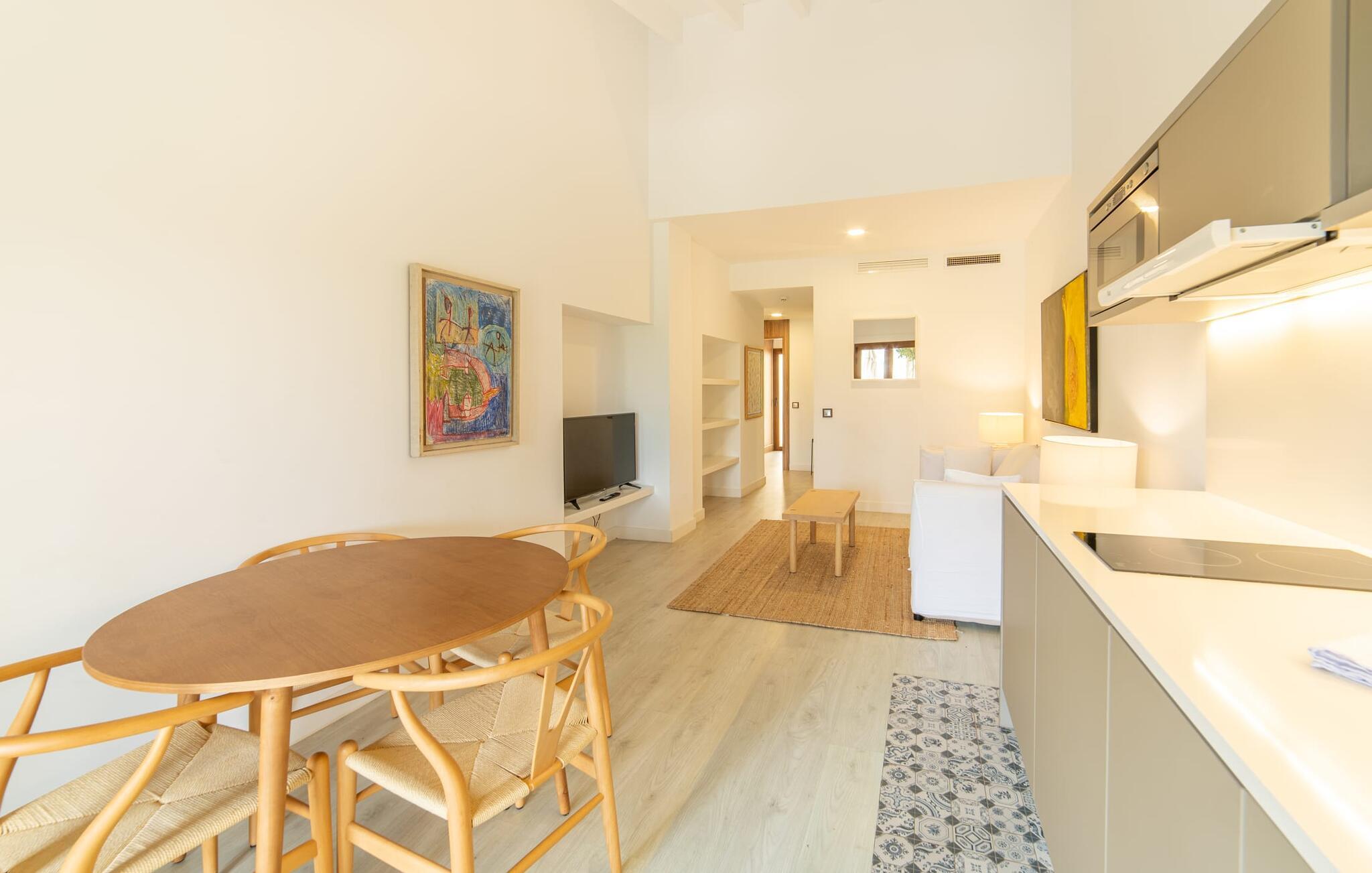 På dette familiedrevne resort vil I blive budt velkommen med den varme gæstfrihed, der er typisk for Mallorca. Den populære Pula golfbane, grundlagt i 1995 og redesignet af Jose Maria Olazabal i 2006, har været vært for meget vigtige begivenheder og har en stor driving range med to niveauer, hvoraf den ene er overdækket, samt to putting greens og en pitching green. En god service: Der er 20 % greenfee-rabat på den officielle pris for den tilsvarende sæson. Et vidunderligt smukt, velholdt anlæg indbyder ikke kun til golf, men også til omfattende afslapning udendørs. En absolut attraktion er den 10 meter lange pool omgivet af en storslået træpopulation med dens omgivende terrasse, som er udstyret med komfortable liggestole. I kan også tilbringe afslappende timer på den private terrasse med en smuk udsigt. Den gamle herregård fra 1581, som er blevet fuldstændig moderniseret, rummer nutidens faciliteter som overnatningsstedet og country club. Efter en dag med golf kan I slappe af i resortets sauna, fitnessområde og indendørs pool, og en massageservice er også tilgængelig, hvis det kræves. I den integrerede restaurant "S'era de Pula" kan I nyde ikke kun det meget gode middelhavskøkken, men også den elegante, rustikke stil og den smukke udsigt over golfbanen. Lejligheden "Pula Golf Resort 7" imponerer med sin trendy atmosfære: hvide vægge, moderne gulve og klinker i kombination med æstetiske møbler skaber straks en moderne ø-følelse. Udstyret byder på en lang række muligheder for et værdigt indendørs ophold og selvfølgelig også for selvstændig selvforsørgelse på ferien. De bor i stueetagen og har tekøkken, spiseplads og opholdsstue. I finder en god nats søvn i det stilfuldt indrettede soveværelse med dobbeltseng og på sovesofaen. Det stilfulde badeværelse har bruseniche. Meget behagelig: Takket være det varme-kolde klimaanlæg kan I nyde perfekte indendørstemperaturer året rundt. Som en særlig ekstra, er der også en daglig rengøring, som er gratis. Vores konklusion: Denne lejlighed på Mallorca tilbyder en enestående beliggenhed og kombinerer den med en meget bred vifte af faciliteter og wellness-tilbud! Pula golfbanen ligger i et af de smukkeste områder på Mallorca. Den moderne lejlighed "Pula Golf Resort 7" med en stor fælles pool og have samt et smukt udendørs landskab og privat terrasse ligger på den østlige del af øen direkte på golfbanen. De ligger mellem Cala Millor, Costa dels Pins og Capdepera og har på grund af deres nærhed til vejen fremragende shopping- og spisemuligheder i de omkringliggende landsbyer. Beliggenheden sikrer også, at I kan nå smukke bystrande som Canyamel eller Costa dels Pins på en behagelig køretid på kun 5-10 minutter.