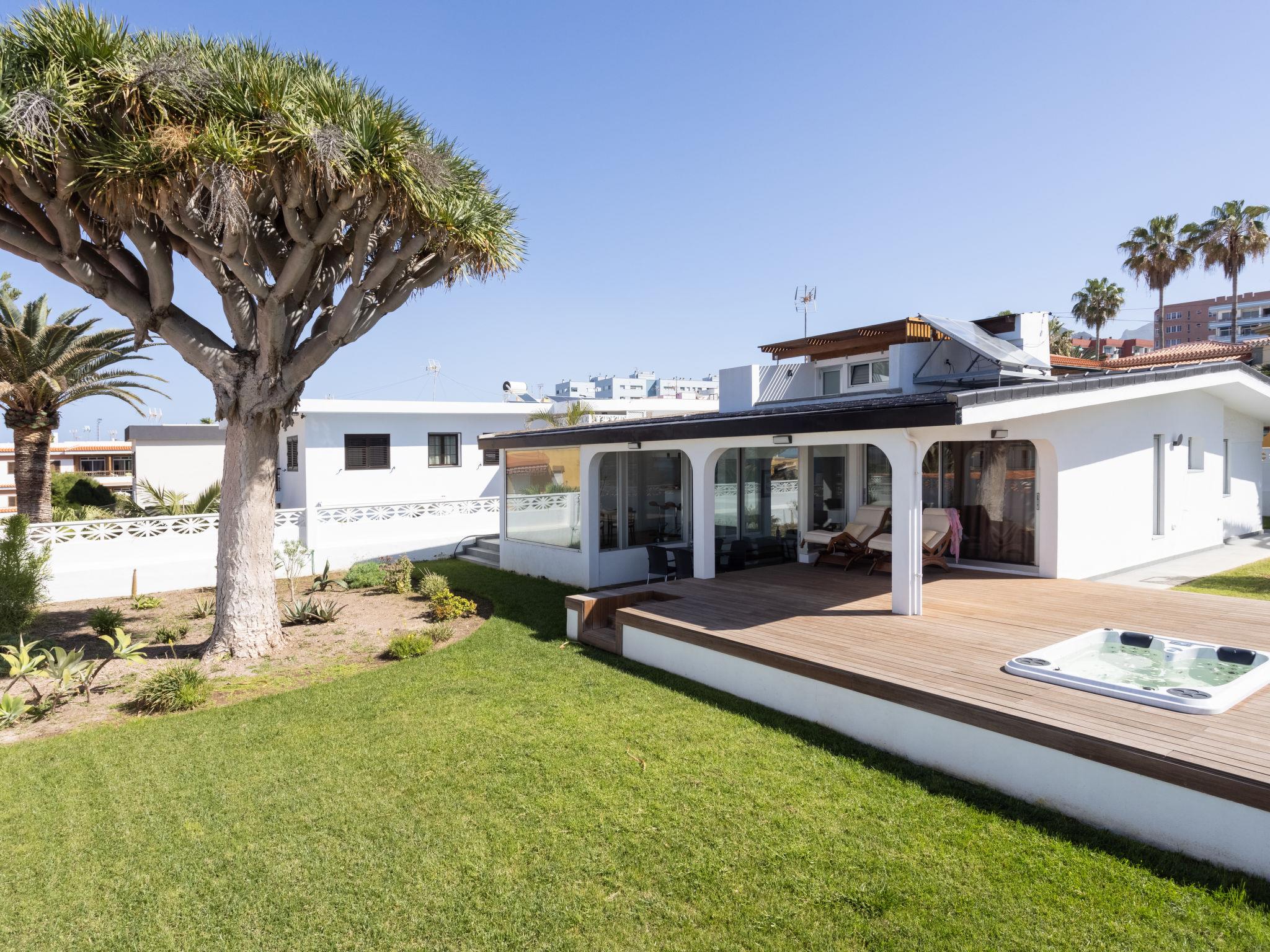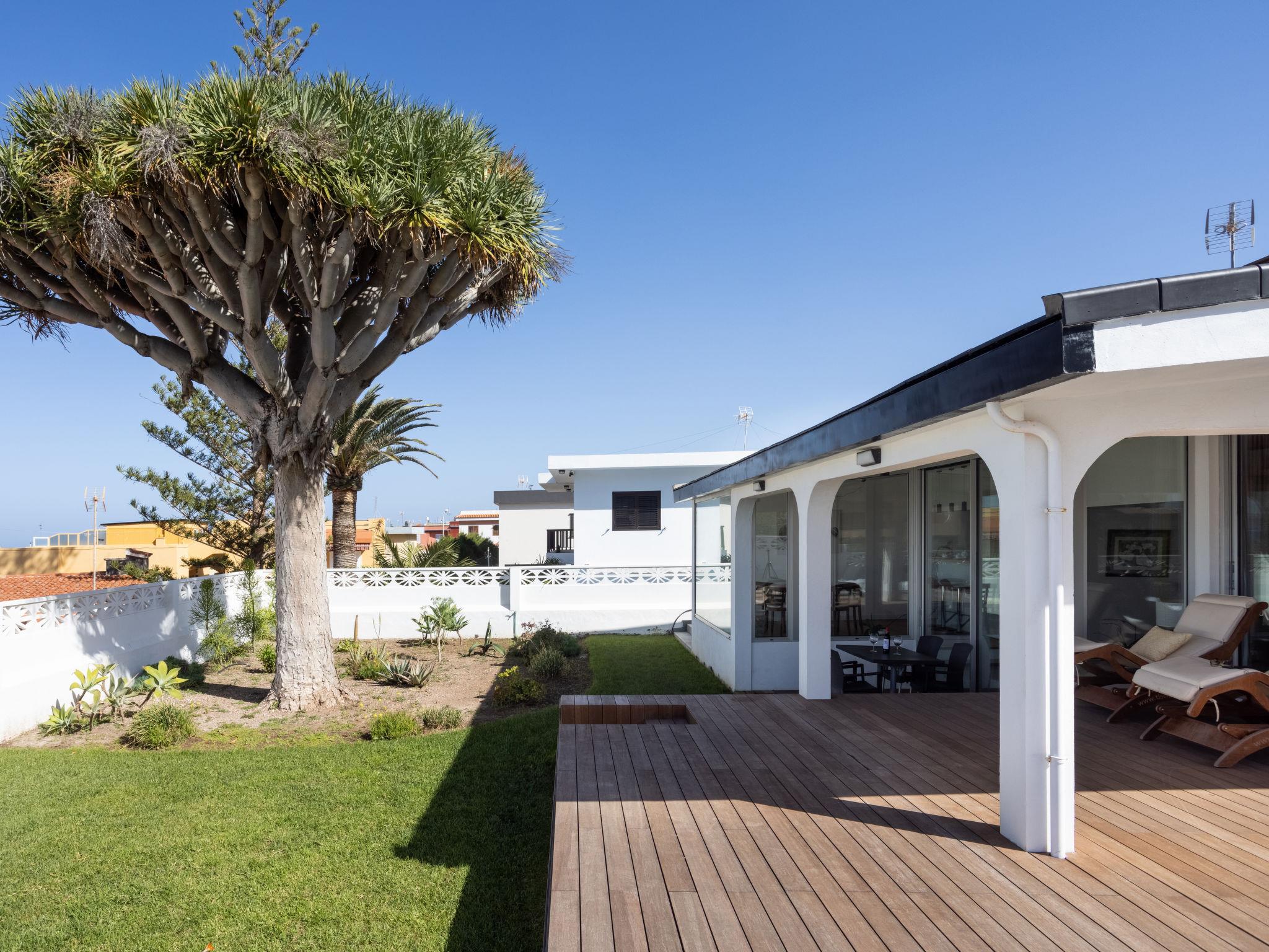 Modern, beautiful, cosy villa "Las Aguilas". In the centre of Punta Hidalgo, residential area (villas), excellent location: right in the centre but still quiet, 130 m from the sea. Private: lawn for sunbathing, beautiful garden to relax. Hot tub, parking (for 2 cars) at the house. Supermarket 300 m, restaurant 150 m, bar, café 110 m, pedestrian zone 75 m, bus stop 150 m, sandy beach "Playa del Arenal" 1.6 km. Surf school 400 m. Nearby attractions: Piscina Natural Punta del Hidalgo 350 m, Faro Punta del Hidalgo 1.6 km, Casa Tita 650 m, Cofradía de la Punta 450 m, Casa Pepe el Playa 3.9 km. Hiking paths: Sendero Punta del Hidalgo.