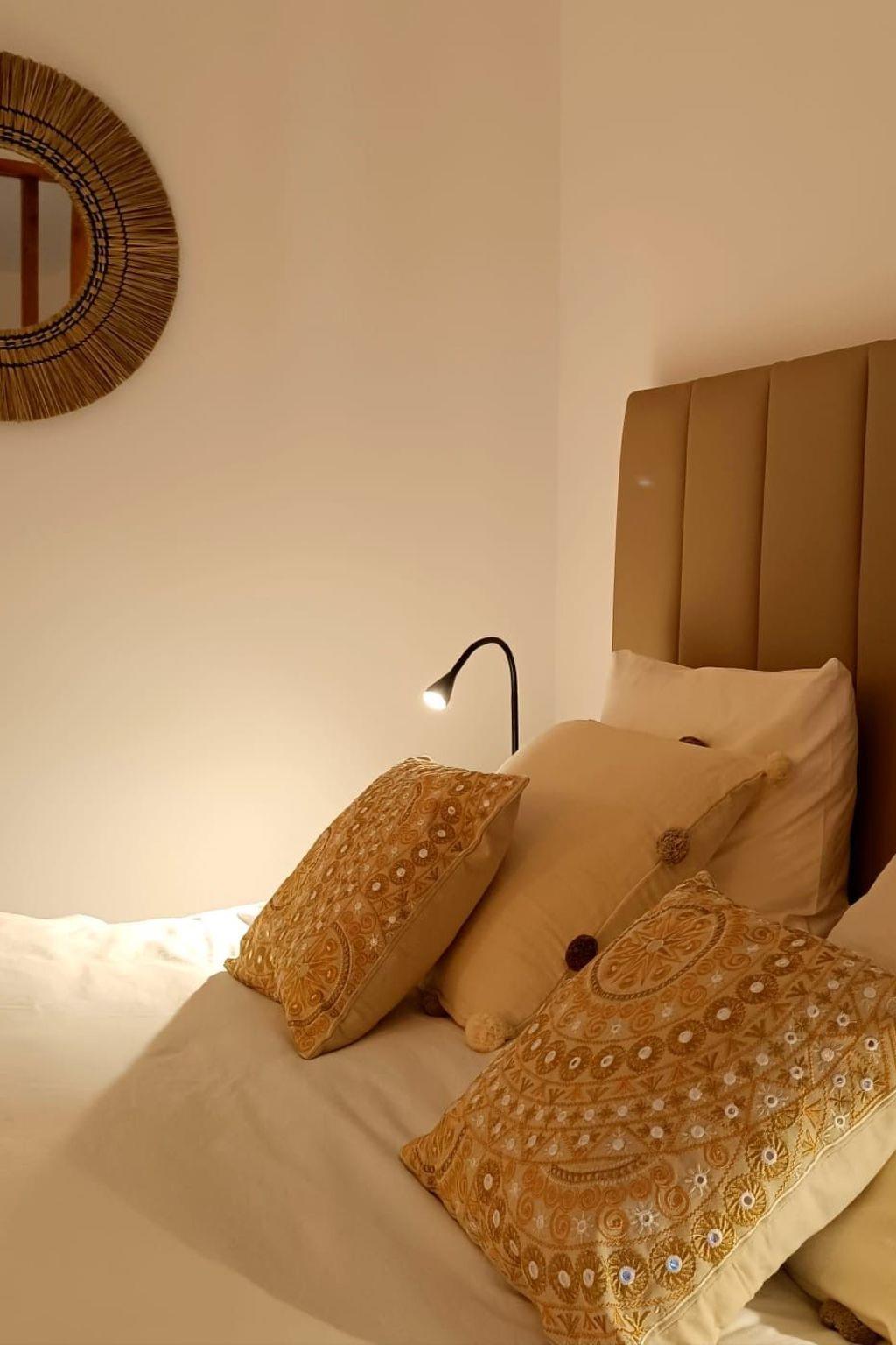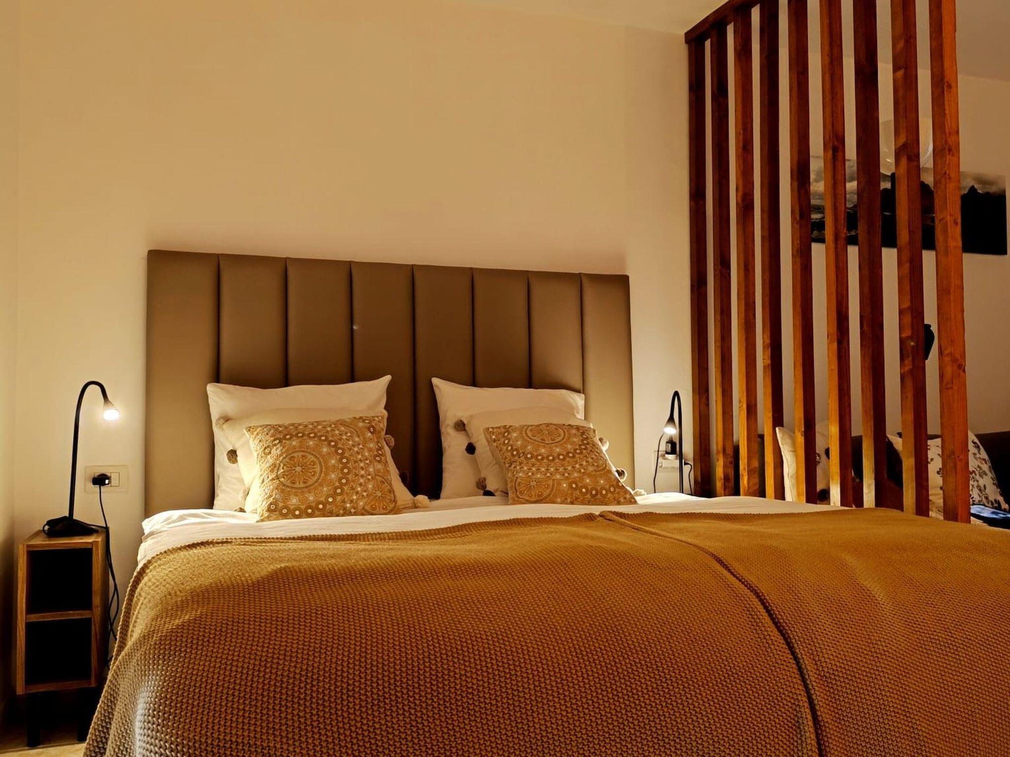 The flat has a 160 x 190 bed and a sofa bed for two people. TV and fan.