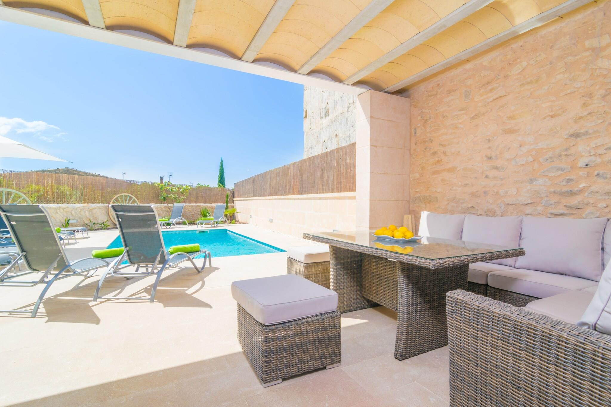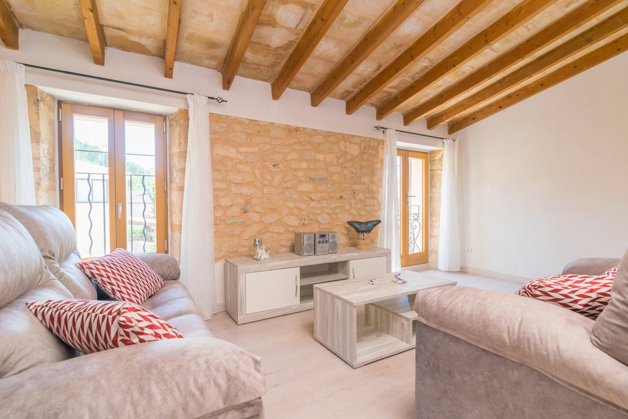 Dette vidunderlige rækkehus har en fantastisk klorpool, der måler 6 x 4 meter med en dybde fra 0,8 til 1,8 meter. Det afslappende udendørsområde omfatter 10 liggestole, en parasol til skyggelæsning og en møbleret veranda med sofaer, hvor du kan nyde et glas vin eller forberede en grill. Sten- og væggene skaber en hyggelig atmosfære, perfekt til at slappe af. Beliggende i hjertet af landsbyen Randa, har huset direkte naboer og byder på privatliv og charme. Dette elegante to-etagers hjem er for nylig restaureret og har 5 soveværelser med aircondition og skabe. I stueetagen skaber det rummelige opholds-/spiseområde og køkken med induktionskomfur et perfekt rum til familiesammenkomster, med satellit-tv, musik, aircondition og en brændeovn til køligere dage. Vaskerummet er fuldt udstyret. Ovenpå finder du to soveværelser, herunder et en-suite, plus tre ekstra badeværelser. En barneseng og høj stol er til rådighed for familier. Randa er en smuk landsby i Pla de Mallorca, ideel til at udforske Mallorcas kultur, gastronomi og natur. Den berømte Puig de Randa byder på en betagende udsigt, mens nærliggende strande såsom Can Pastilla og Cala Pi er inden for rækkevidde. Kæledyr og arrangementer er ikke tilladt.