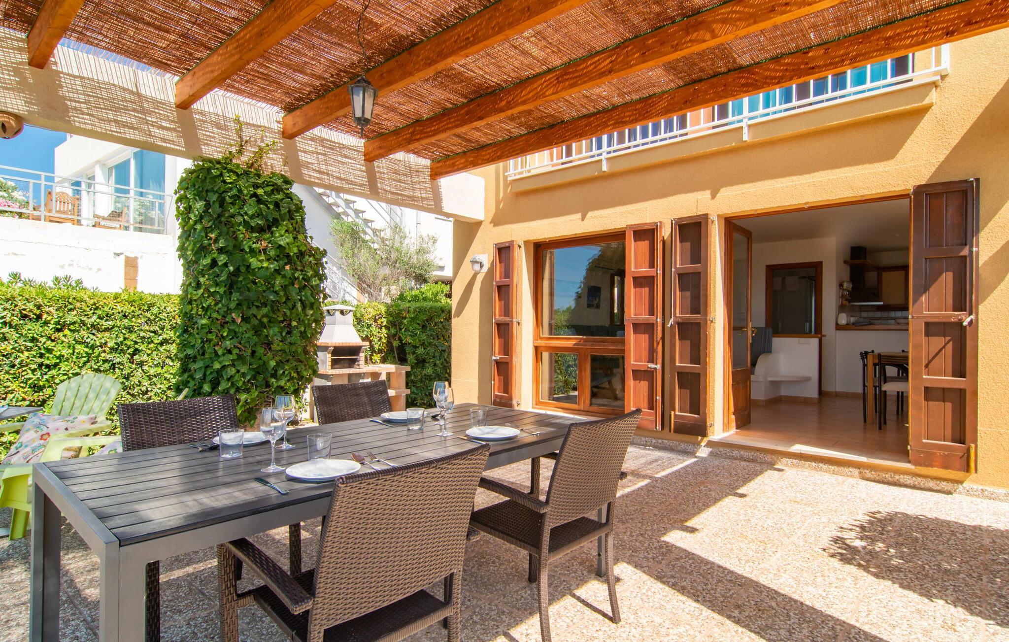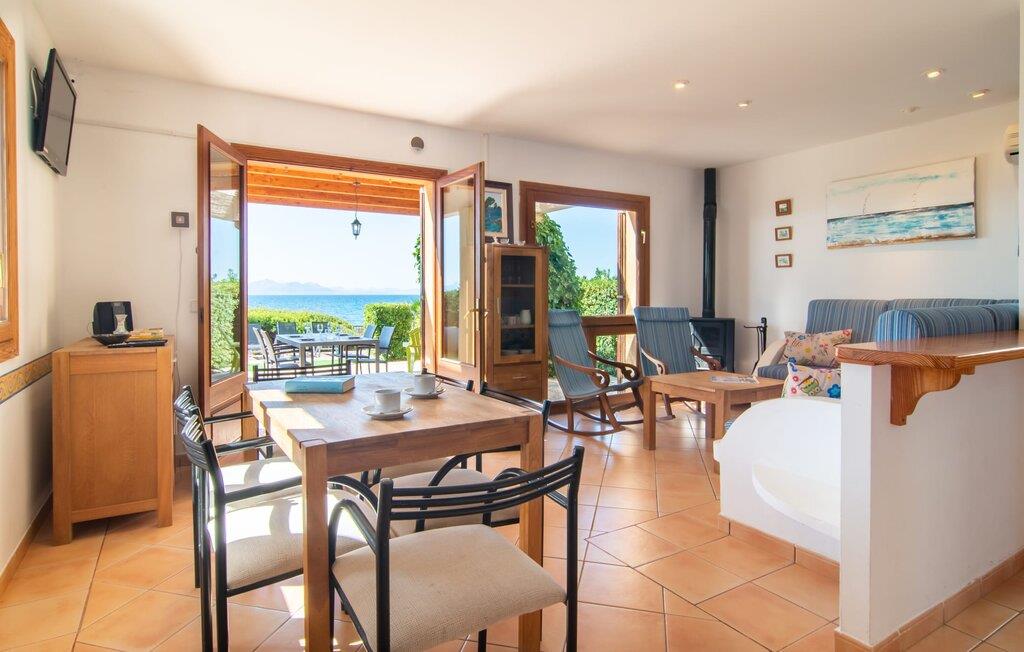 Hvis I ønsker at tilbringe jeres ferie i et smukt strandhus i Colonia Sant Pere, er dette det rigtige sted for jer. I kan lytte til lyden af havets bølger og se mod den modsatte kyst af Alcúdia-bugten. Selve villaen ligger direkte ved havet. Det er fordelt på tre etager. På toppen er der en tagterrasse med en vidunderlig havudsigt. På den nederste overdækkede terrasse kan I nyde en lækker morgenmad og det unikke panorama om morgenen. Derudover kan I afslutte en travl feriedag i en vidunderlig atmosfære og se de blinkende lys i det fjerne. Måske har I lyst til at forsyne jer med regionale delikatesser på de omkringliggende markeder og nyde dem ved en aftengrill. For nemheds skyld finder I en bruser ved siden af hækken i haven, så I kan skylle saltvandet af. I kan slappe af i middelhavssolen af hjertens lyst på liggestolene, der er tilgængelige i den lille, men dejlige have. Det er bedst at parkere jeres bil i siden af vejen lige foran huset. Indenfor har villaen “Randemar” et dobbeltværelse, et værelse med to enkeltsenge, to badeværelser, et køkken og en stue/spisestue. Både soveværelserne og stuen er udstyret med varm/kold aircondition, så en behagelig temperatur kan indstilles til enhver tid. I husets stueetage er der stue/spisestue og det åbne køkken samt brusebadeværelse. Stuen har et originalt og muntert design. I kan gøre jer vidunderlig godt tilpas i hjørnesofaen, og de typiske gyngestole inviterer jer også til at blive hængende. Når temperaturerne er køligere, kan I varme jer behageligt med pejsen. Her er fladskærms-tv'et også bekvemt placeret, så intet står i vejen for en afslappende filmaften. Det åbne køkken er fuldt udstyret med køleskab med fryser, opvaskemaskine, dobbeltvask, keramisk kogeplade, ovn, emhætte, mikroovn, brødrister, elkedel og kaffemaskine. Her kan I endda have havudsigt, mens I har travlt i køkkenet! Vaskemaskinen står i depotrummet. Badeværelset er indrettet i typisk mallorcansk stil og har forsænkede spejle med dekorative flisekanter. Før I falder i søvn, kan I se lysene i Alcúdia; Når I vågner, funkler morgensolens stråler allerede på havet. Skodderne i begge soveværelser kan hæves eller sænkes ved hjælp af en fjernbetjening. Villaen "Randemar" er beliggende ved Alcúdia-bugten i byen S'Estanyol i Colonia San Pere, en del af kommunen Artà. Dette sted er meget stille, og der er kun en håndfuld huse i området. I umiddelbar nærhed finder I den lange strand S'Arenal de Sa Canova. I kan nemt nå dertil på tre minutter til fods. Kysten her er smukt uberørt. Stranden og interiøret er naturreservater. Selv midt om sommeren er der ingen menneskemængder at se. Hvis I vil, kan I tage på kilometerlange vandreture her. Omkring to kilometer fra villaen, mod øst, ligger Colonia San Pere-bugten, ideel til svømning, med en strandpromenade, restauranter og en marina. Promenaden er beskyttet af en badebro, og det rolige vand med let skrånende kyst er meget populær blandt børnefamilier. Stranden lige foran villaen er en stenstrand. Så snart I går i vandet, rammer I sand. Sørg for at pakke svømmebriller, for i de små lavninger i klipperne finder I smukke undervandsplanter, bittesmå glitrende fisk og endda krabber. En fantastisk villa ved havet, hvor I kan nyde en ideel, fredelig, stressfri familieferie! Den kærligt designede villa "Randemar" ligger direkte på stranden i Colònia de Sant Pere, på den nordøstlige side af øen. Kun en havelåge adskiller ejendommen fra stranden. De lange sandstrande i Alcúdia-bugten kan nås på cirka 10 minutter. I Colonia kan I shoppe, slentre langs havnen eller prøve lækre middelhavsretter i fremragende restauranter lige ved havet. Rejsetiden med bil til Palma de Mallorca Lufthavn er cirka en time.