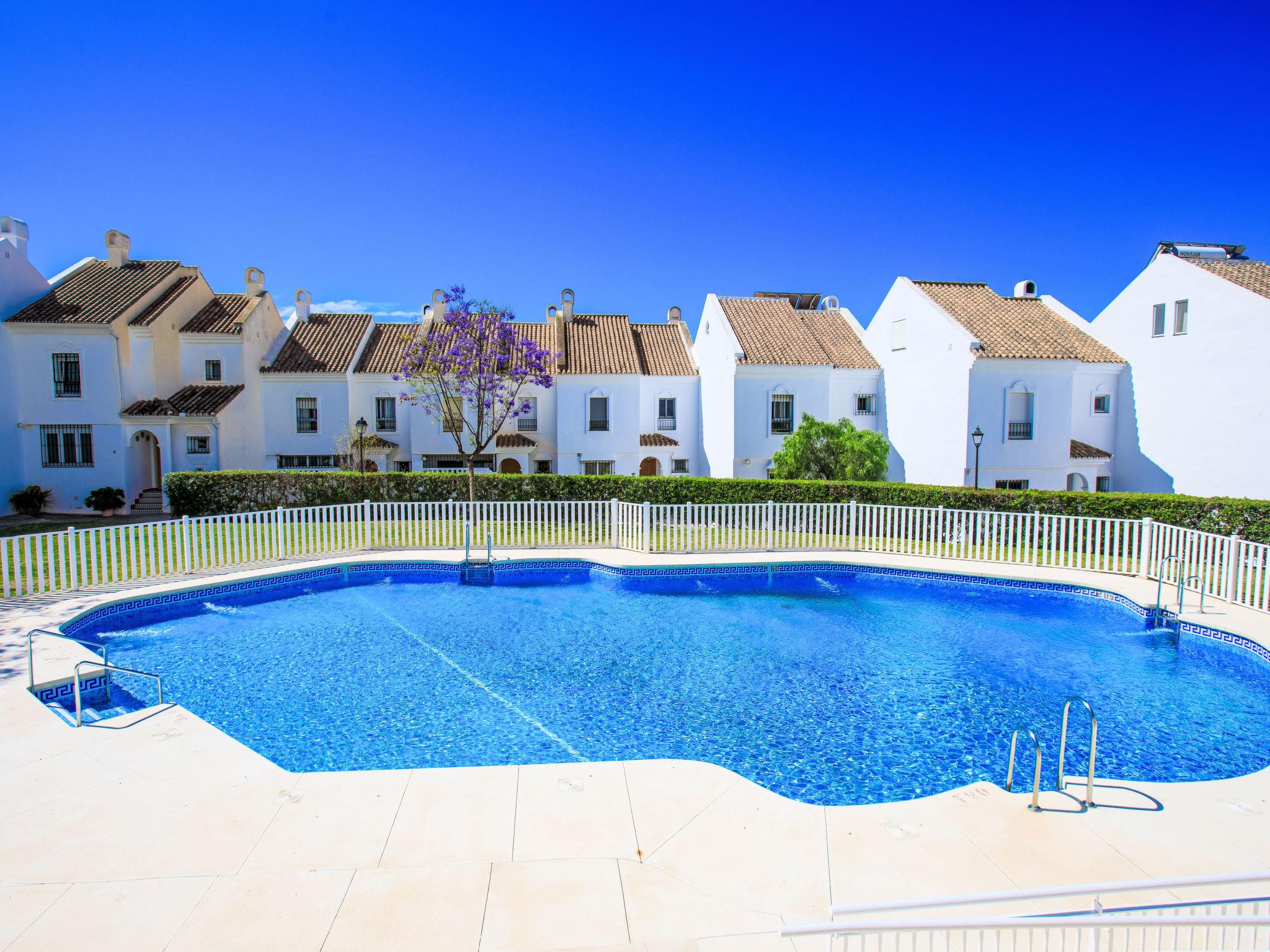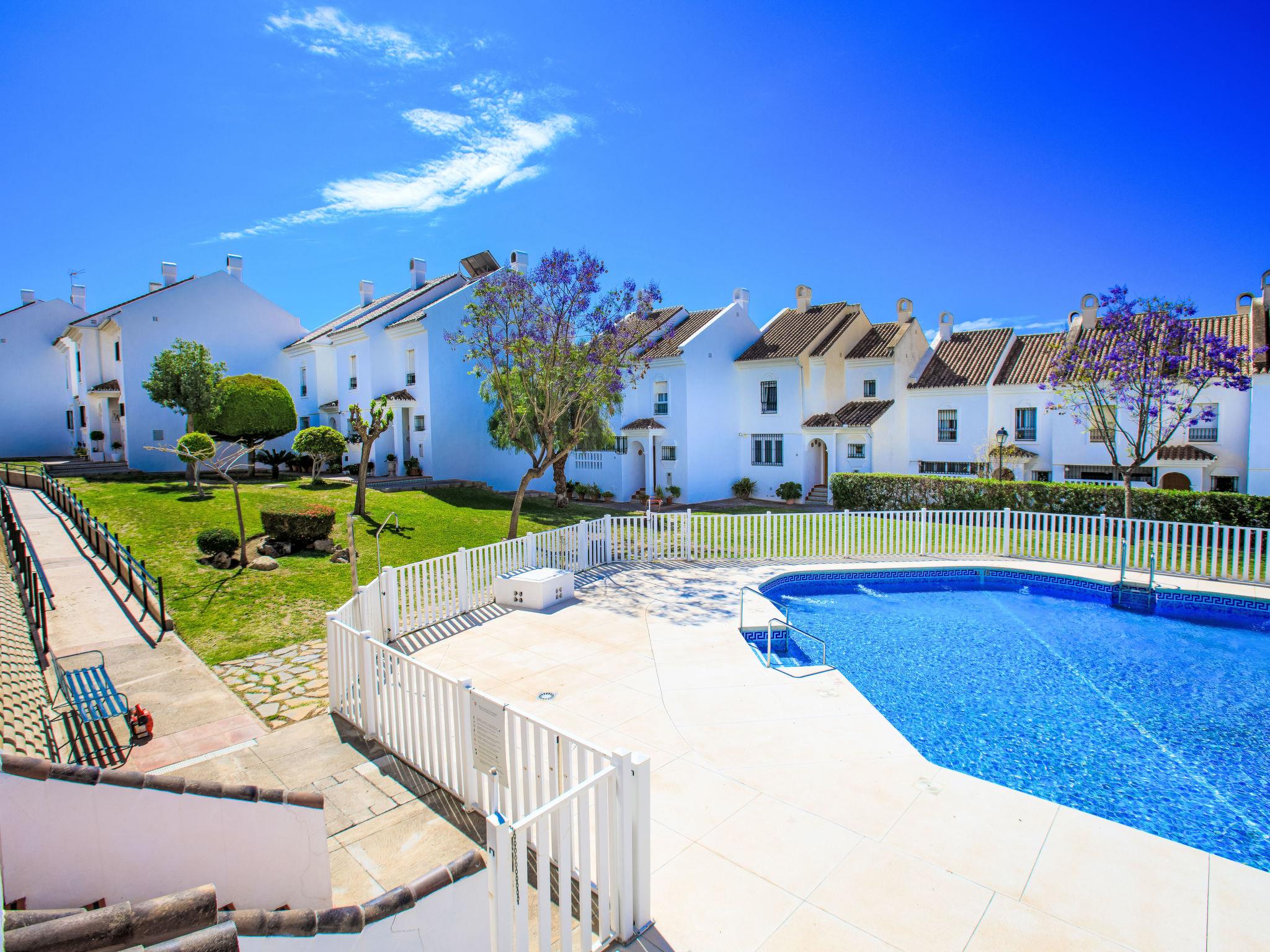 Rincon de la victoria: Beautiful, cosy terraced house "Los almendros". In the centre of Rincon de la victoria, in a central, quiet position, 400 m from the sea, south facing position. For shared use: beautiful garden to relax, swimming pool round (18 x 12 m, depth 50 - 200 cm, seasonal availability: 01.Jun. - 01.Sep. pool opening hours: 10:00-15:00 and 17:00-21:00). Shower/WC in the pool area. In the house: WiFi, washing machine. Parking space n 29. Shop, grocery 400 m, supermarket 500 m, shopping centre 800 m, restaurant, bar, bakery, café 400 m, bus stop "walking distance" 600 m. Golf course (18 hole) 1 km. Groups of teenagers on request only.