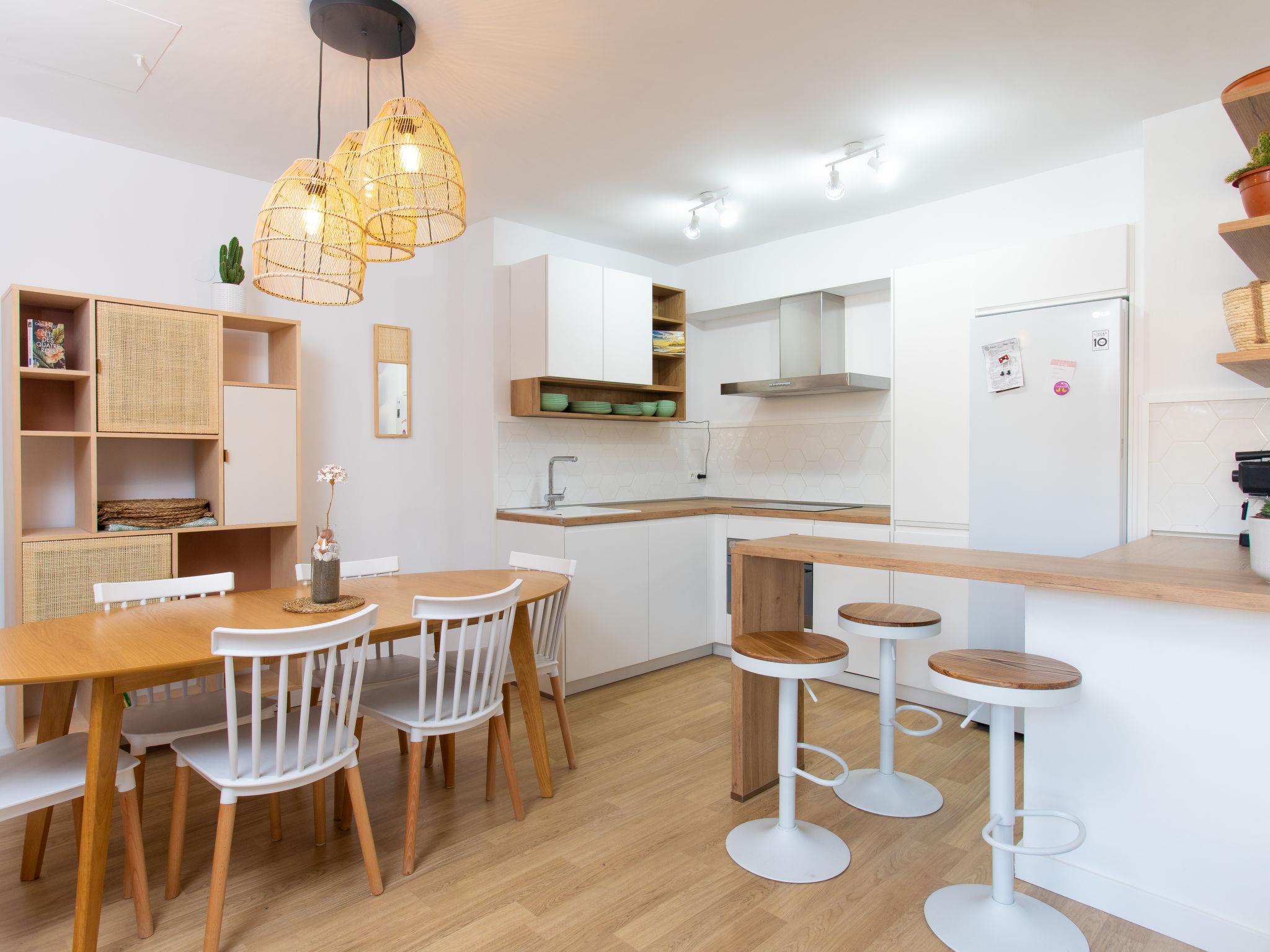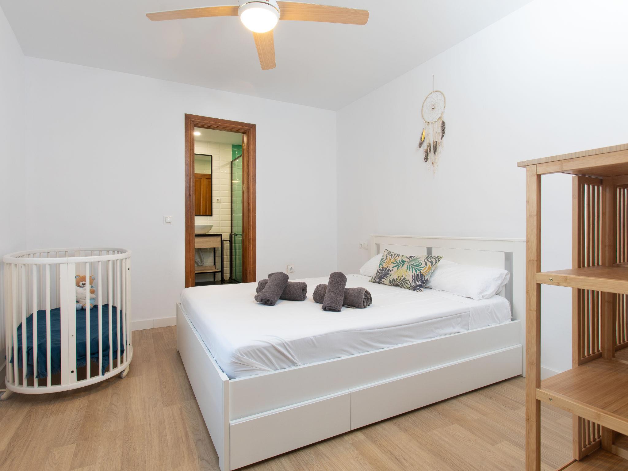 "Constitución Square", 3-room apartment 66 m2. Object suitable for 4 adults + 2 children. Fully renovated in 2019, practical and beautiful furnishings: 1 room with 1 french bed (1 x 160 cm, length 190 cm), shower/WC, double hand-basin and air conditioning. 1 room with 1 french bed (1 x 140 cm, length 190 cm). 1 room with 2 beds (90 cm, length 190 cm), air conditioning. Living/dining room with dining table, digital TV and air conditioning. Exit to the terrace. Open kitchen (oven, dishwasher, 4 ceramic glass hob hotplates, toaster) with bar. Shower/WC. Small terrace. View of the resort. Facilities: washing machine, iron, children's high chair, baby cot (extra), hair dryer. Internet (WiFi, free). Please note: suitable for families. TV only ES. VFT/MA/50085 // Reg. Nr.: ESFCTU0000290250003678040000000000000000VFT/MA/500854