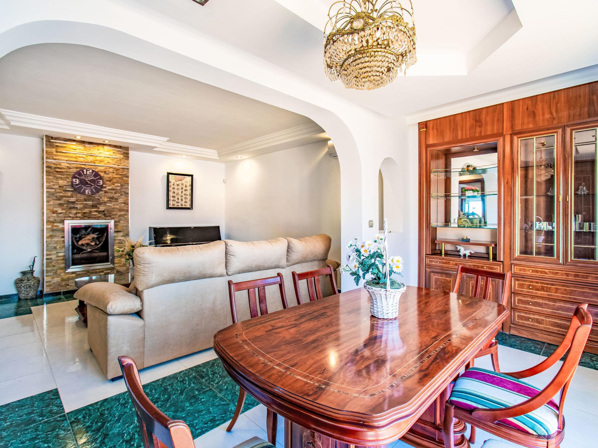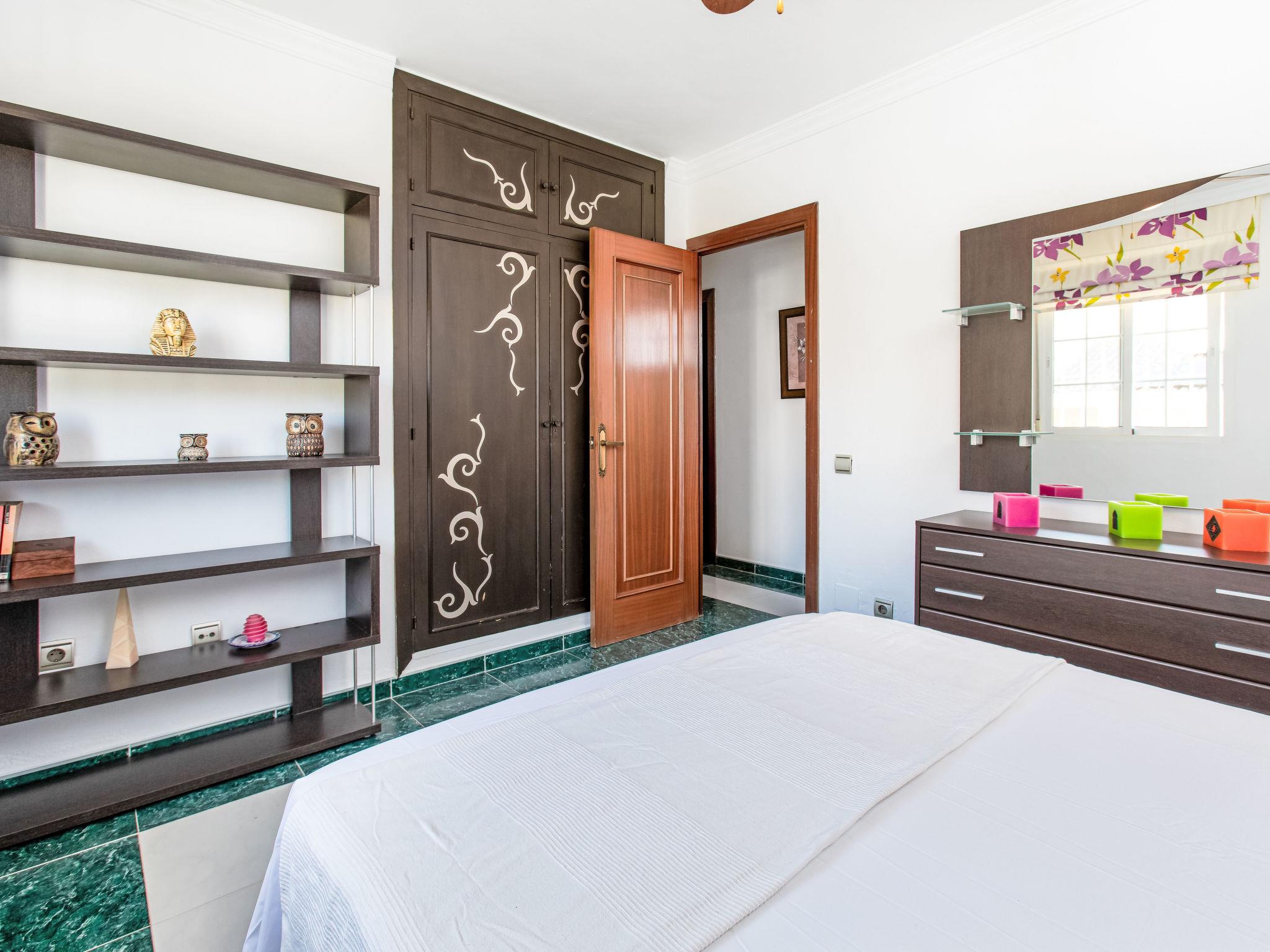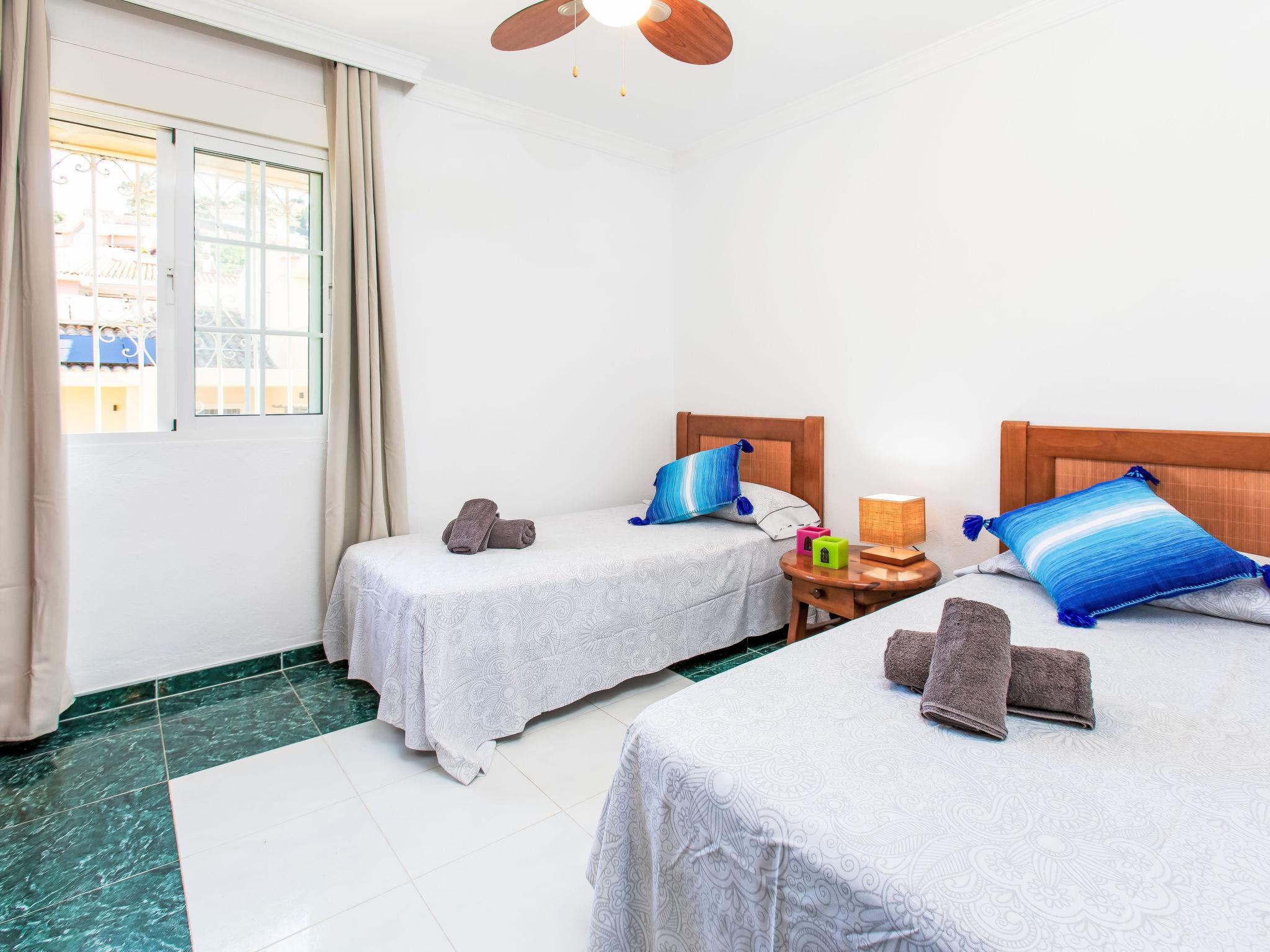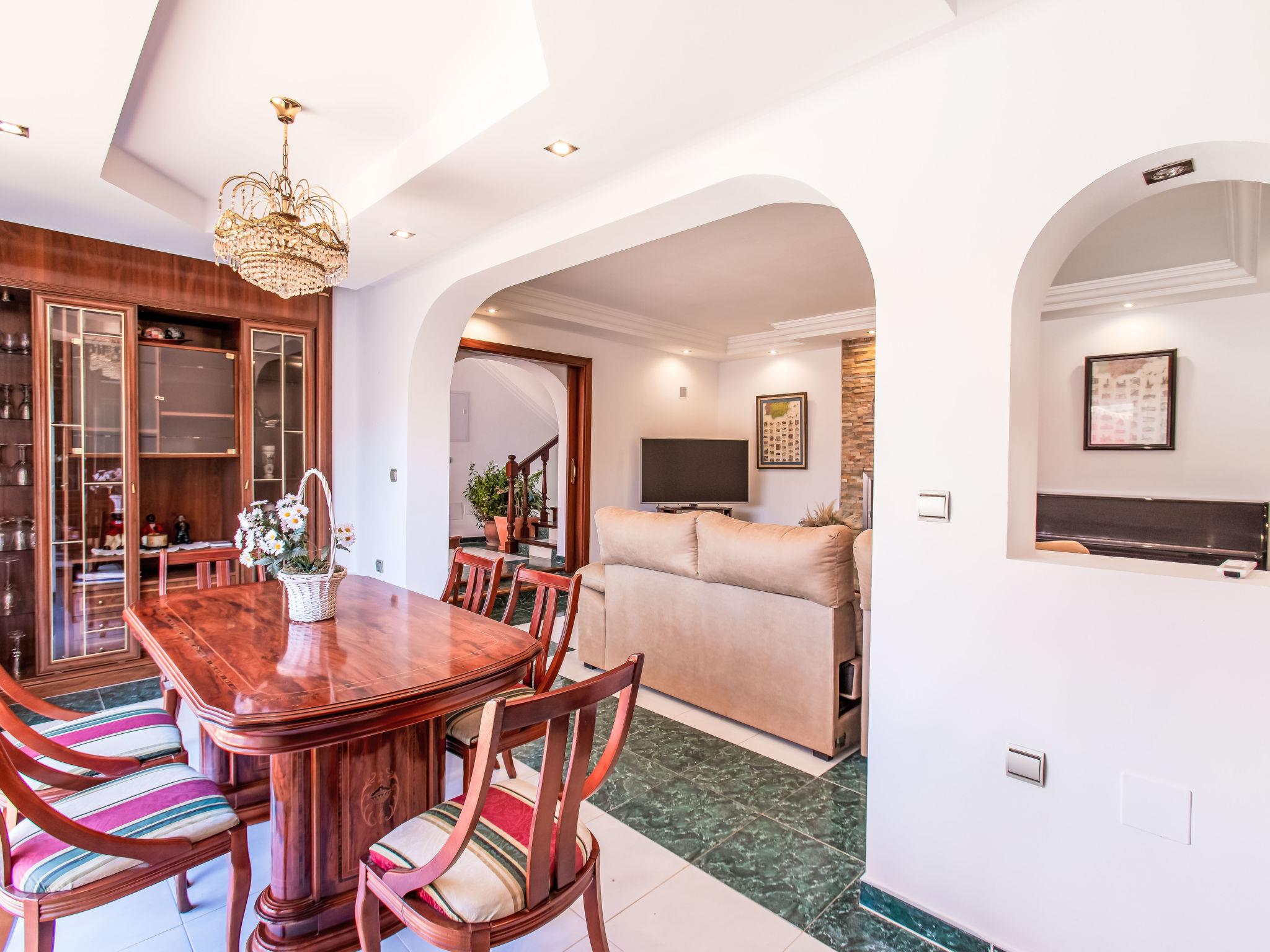 "Villa Almudena", 4-room house 200 m2, south facing position. Simple and practical furnishings: living/dining room with digital TV, air conditioning, forced-air heating and boiler (100 litres), electric shutters. Open kitchen (oven, dishwasher, 4 induction hot plates, toaster, kettle, microwave, electric coffee machine). Exit to the patio, to the swimming pool. Bath/bidet/WC. Heating not available in all rooms. Upper floor: 1 room with curtain with 1 french bed (1 x 140 cm, length 200 cm), air conditioning, fan and forced-air heating. 1 room with curtain with 2 beds (90 cm, length 190 cm), air conditioning and forced-air heating. 1 room with curtain with 1 french bed (1 x 140 cm, length 200 cm), air conditioning, fan and forced-air heating. 1 room with curtain with 1 french bed (1 x 150 cm, length 190 cm), air conditioning, fan and forced-air heating. Bath/WC. Large patio. Barbecue, deck chairs (4). Facilities: washing machine, iron, hair dryer. Internet (WiFi, free). Parking (2 cars). Please note: TV only ES. VUT/MA/77881 // Reg. Nr.: ESFCTU0000290250003884580000000000000000VUT/MA/778812