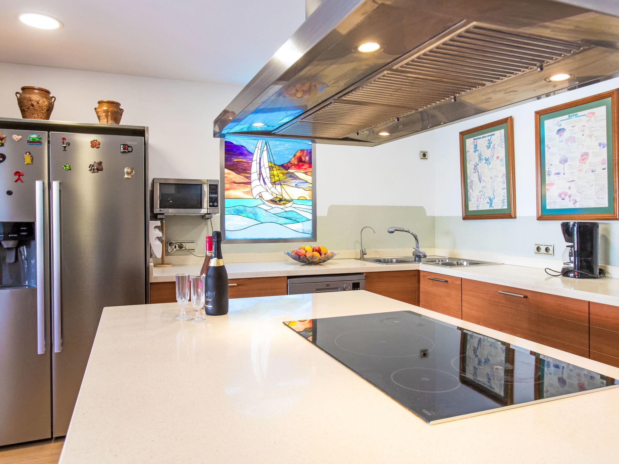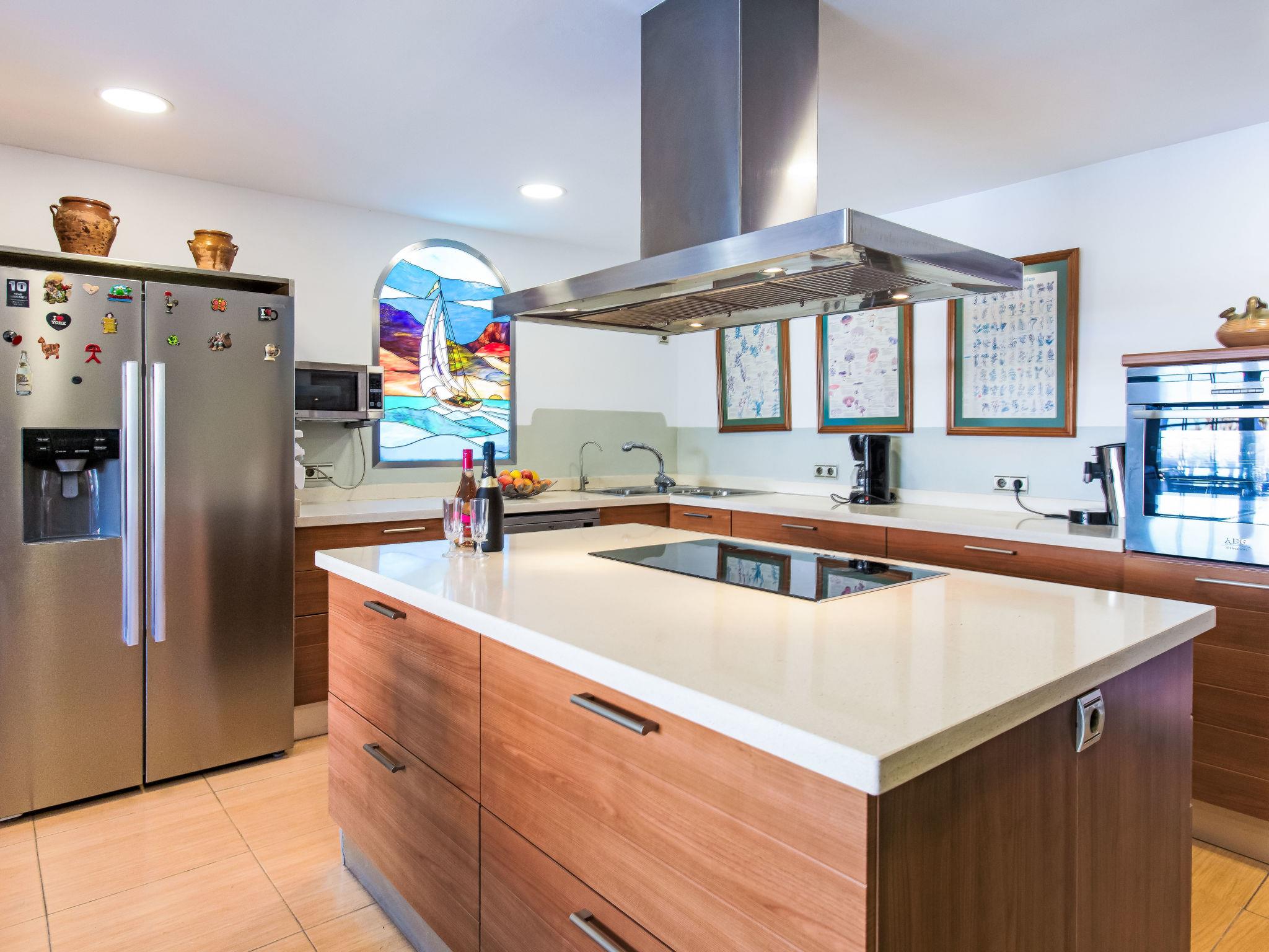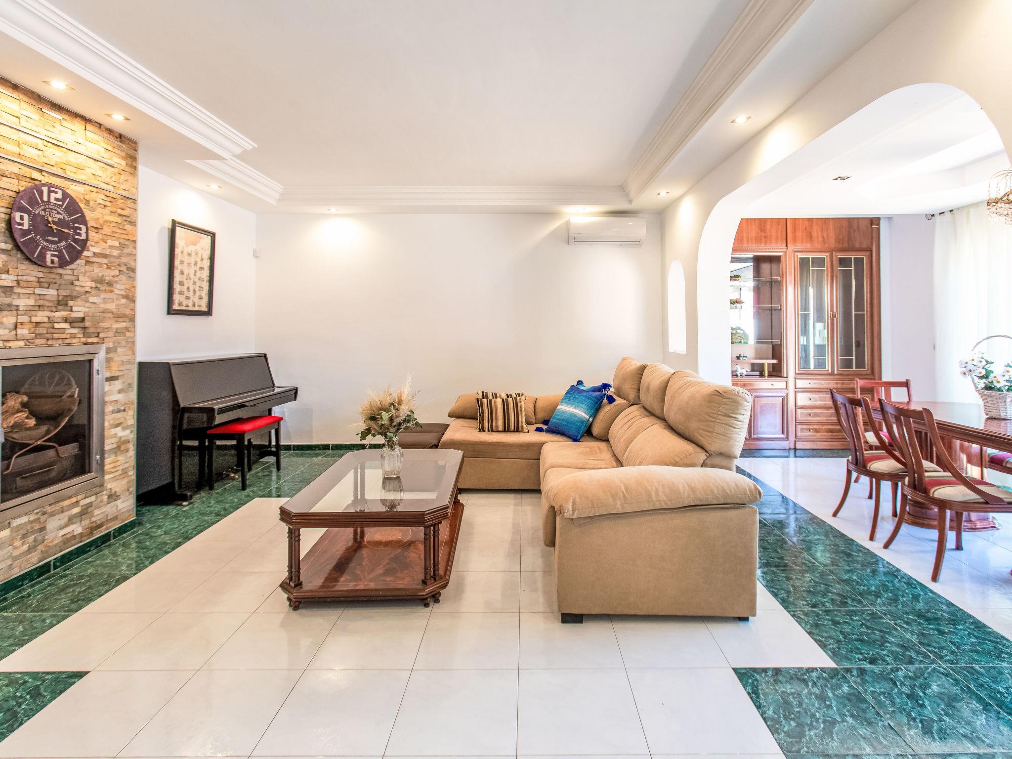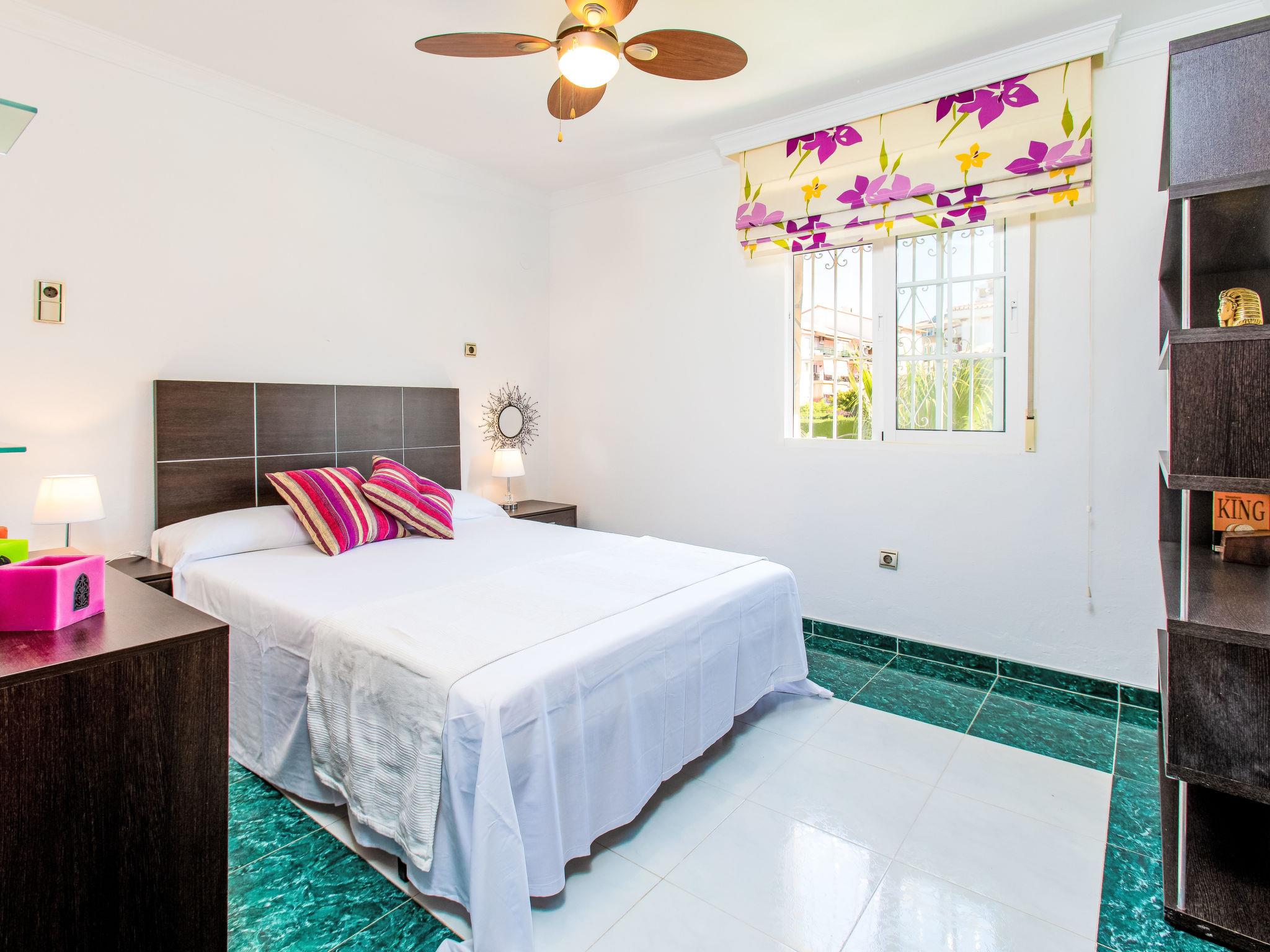 "Villa Almudena", 4-room house 200 m2, south facing position. Simple and practical furnishings: living/dining room with digital TV, air conditioning, forced-air heating and boiler (100 litres), electric shutters. Open kitchen (oven, dishwasher, 4 induction hot plates, toaster, kettle, microwave, electric coffee machine). Exit to the patio, to the swimming pool. Bath/bidet/WC. Heating not available in all rooms. Upper floor: 1 room with curtain with 1 french bed (1 x 140 cm, length 200 cm), air conditioning, fan and forced-air heating. 1 room with curtain with 2 beds (90 cm, length 190 cm), air conditioning and forced-air heating. 1 room with curtain with 1 french bed (1 x 140 cm, length 200 cm), air conditioning, fan and forced-air heating. 1 room with curtain with 1 french bed (1 x 150 cm, length 190 cm), air conditioning, fan and forced-air heating. Bath/WC. Large patio. Barbecue, deck chairs (4). Facilities: washing machine, iron, hair dryer. Internet (WiFi, free). Parking (2 cars). Please note: TV only ES. VUT/MA/77881 // Reg. Nr.: ESFCTU0000290250003884580000000000000000VUT/MA/778812