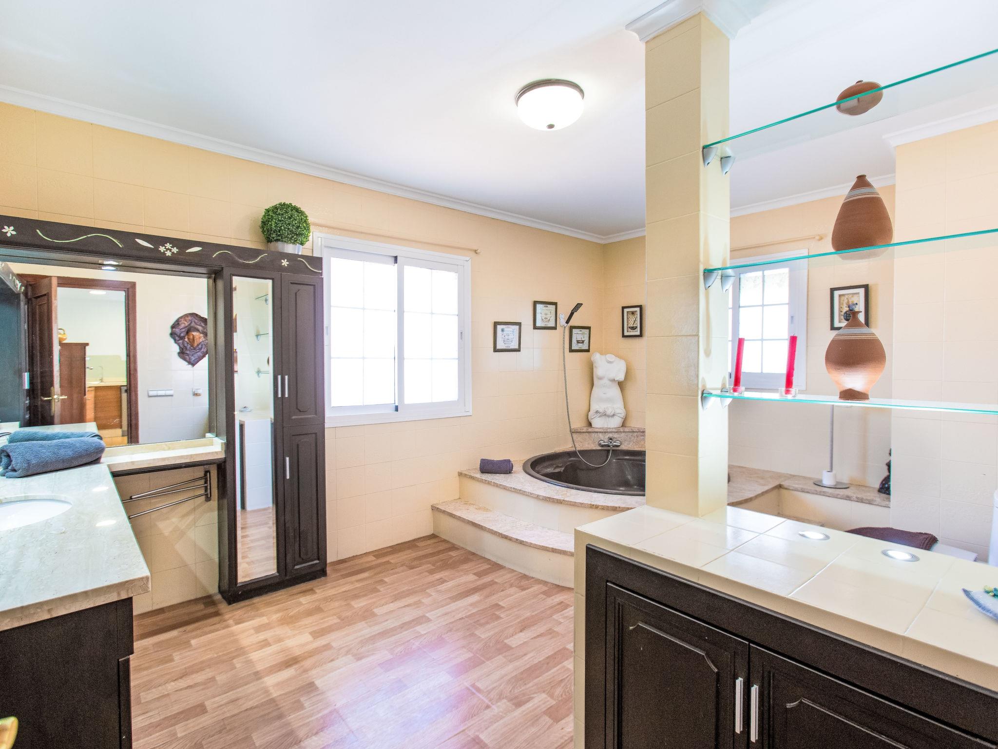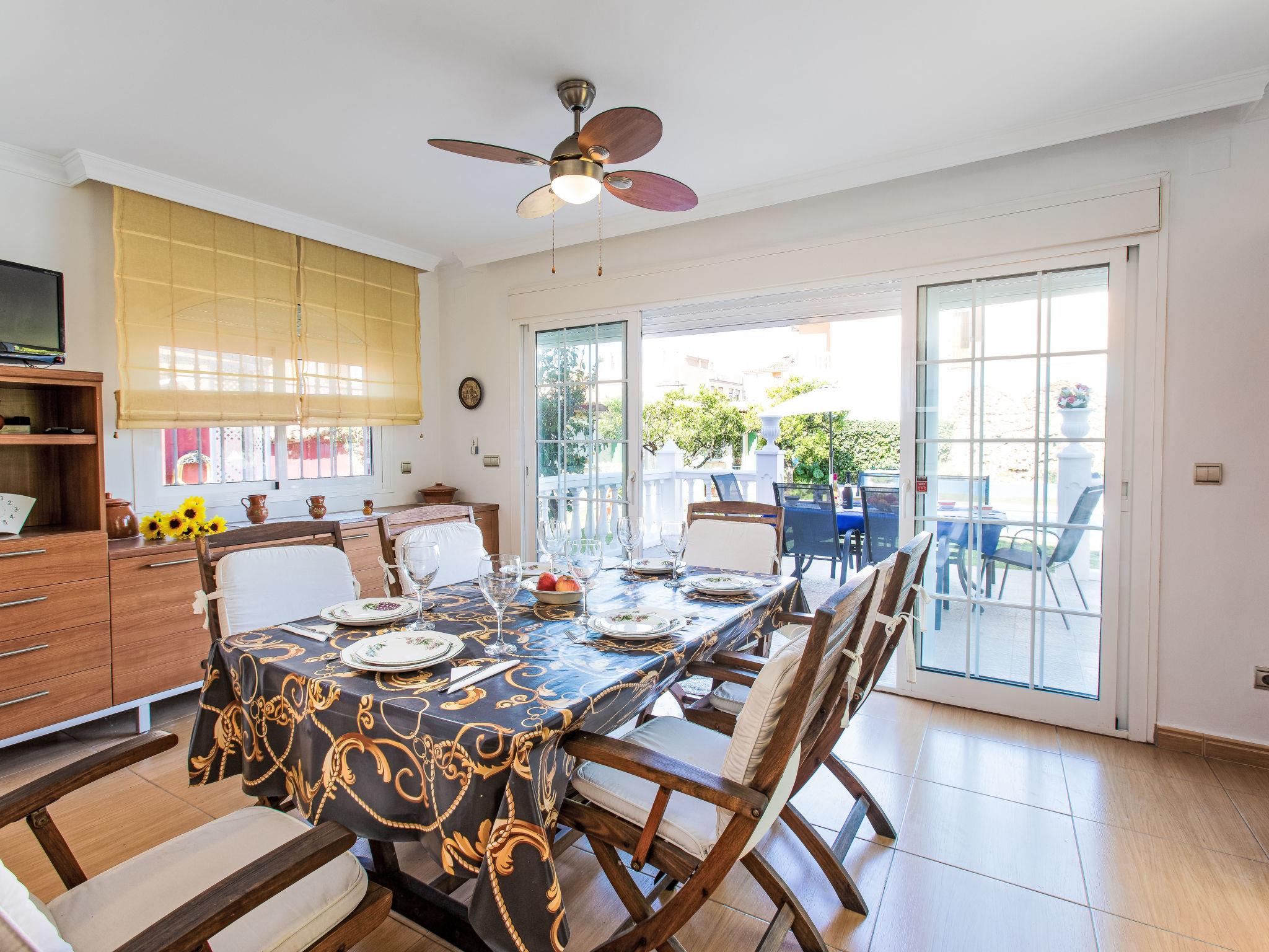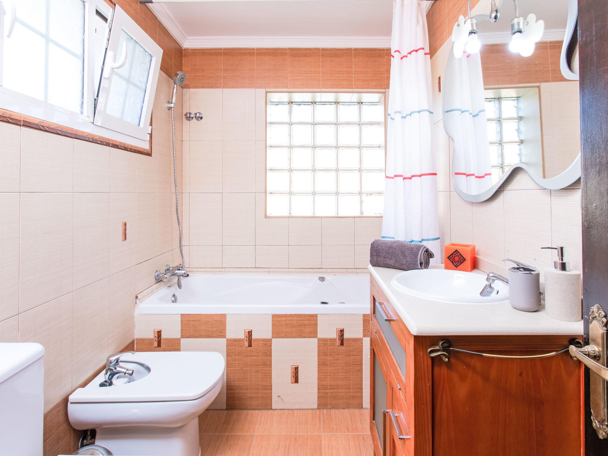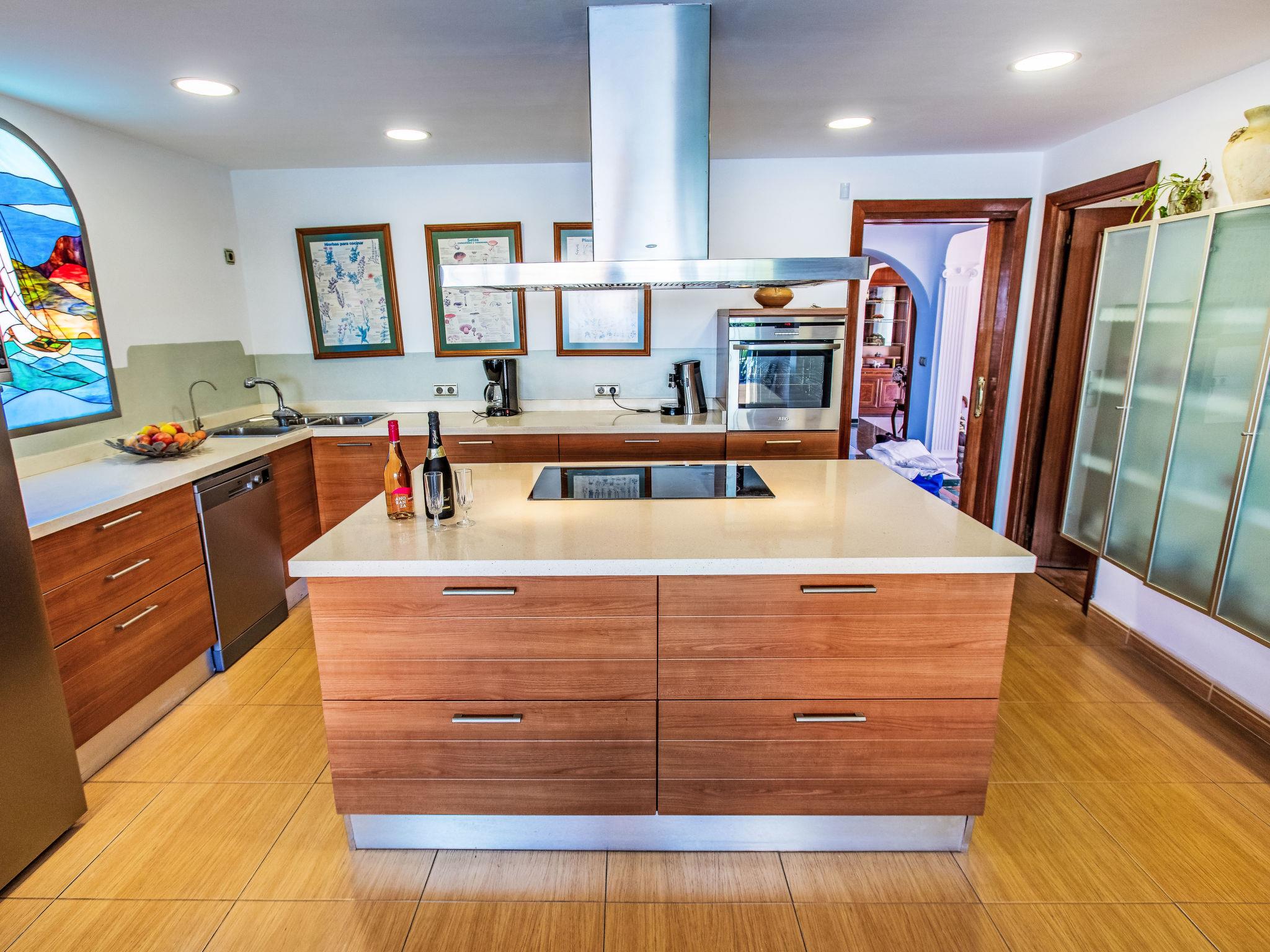 "Villa Almudena", 4-room house 200 m2, south facing position. Simple and practical furnishings: living/dining room with digital TV, air conditioning, forced-air heating and boiler (100 litres), electric shutters. Open kitchen (oven, dishwasher, 4 induction hot plates, toaster, kettle, microwave, electric coffee machine). Exit to the patio, to the swimming pool. Bath/bidet/WC. Heating not available in all rooms. Upper floor: 1 room with curtain with 1 french bed (1 x 140 cm, length 200 cm), air conditioning, fan and forced-air heating. 1 room with curtain with 2 beds (90 cm, length 190 cm), air conditioning and forced-air heating. 1 room with curtain with 1 french bed (1 x 140 cm, length 200 cm), air conditioning, fan and forced-air heating. 1 room with curtain with 1 french bed (1 x 150 cm, length 190 cm), air conditioning, fan and forced-air heating. Bath/WC. Large patio. Barbecue, deck chairs (4). Facilities: washing machine, iron, hair dryer. Internet (WiFi, free). Parking (2 cars). Please note: TV only ES. VUT/MA/77881 // Reg. Nr.: ESFCTU0000290250003884580000000000000000VUT/MA/778812