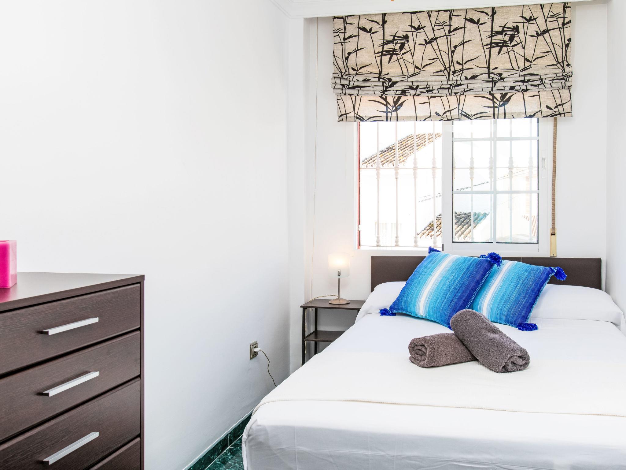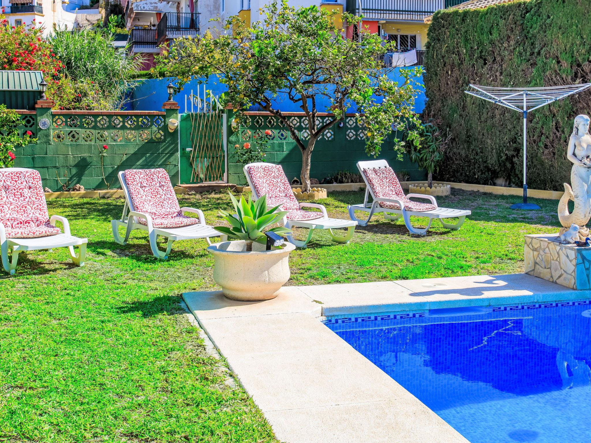 Rincon de la victoria: Large, cosy house "Villa Almudena", 2 storeys. In the resort 400 m from the centre of Rincon de la victoria, in a quiet position, 500 m from the sea, 500 m from the beach, south facing position. Private: beautiful garden to relax, swimming pool angular (7 x 4 m, depth 50 - 200 cm, seasonal availability: 01.Mar. - 01.Dec.). Shower/WC in the pool area. In the house: WiFi, air conditioning, washing machine. Shop, supermarket 600 m, shopping centre 1 km, bar 500 m, bakery 600 m, bus stop "walking distance" 600 m. Golf course (18 hole) 1 km. The owner does not accept any youth groups.