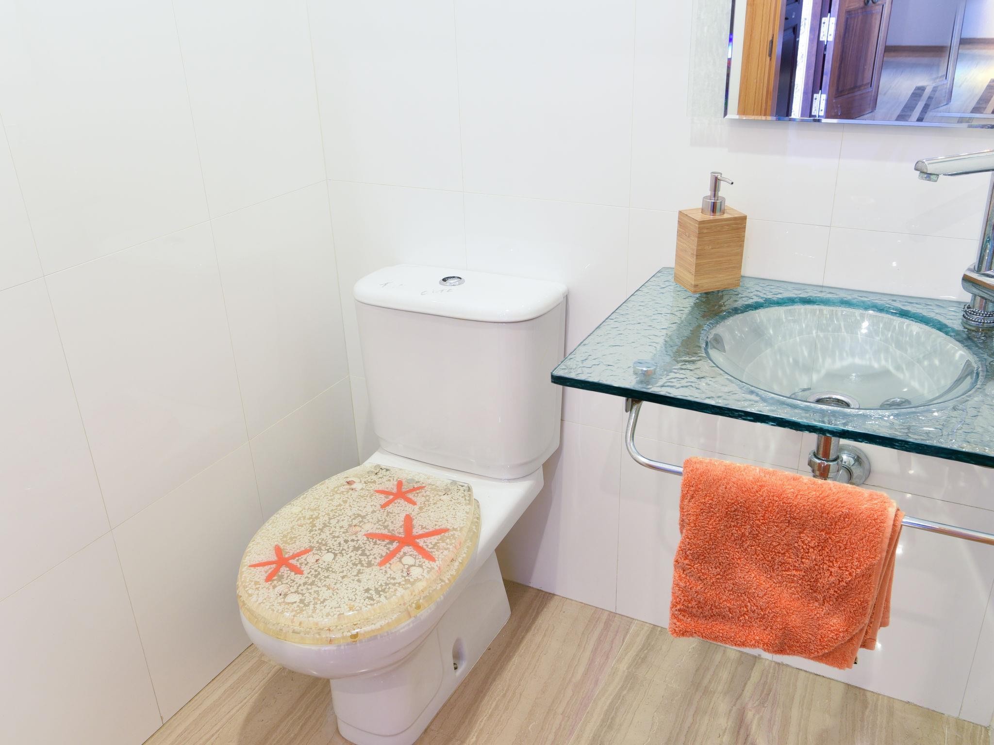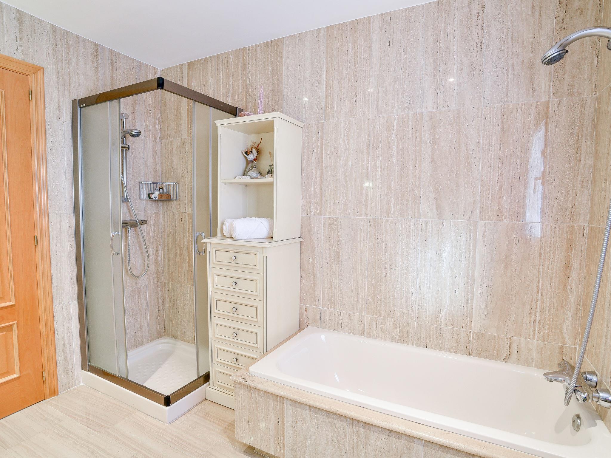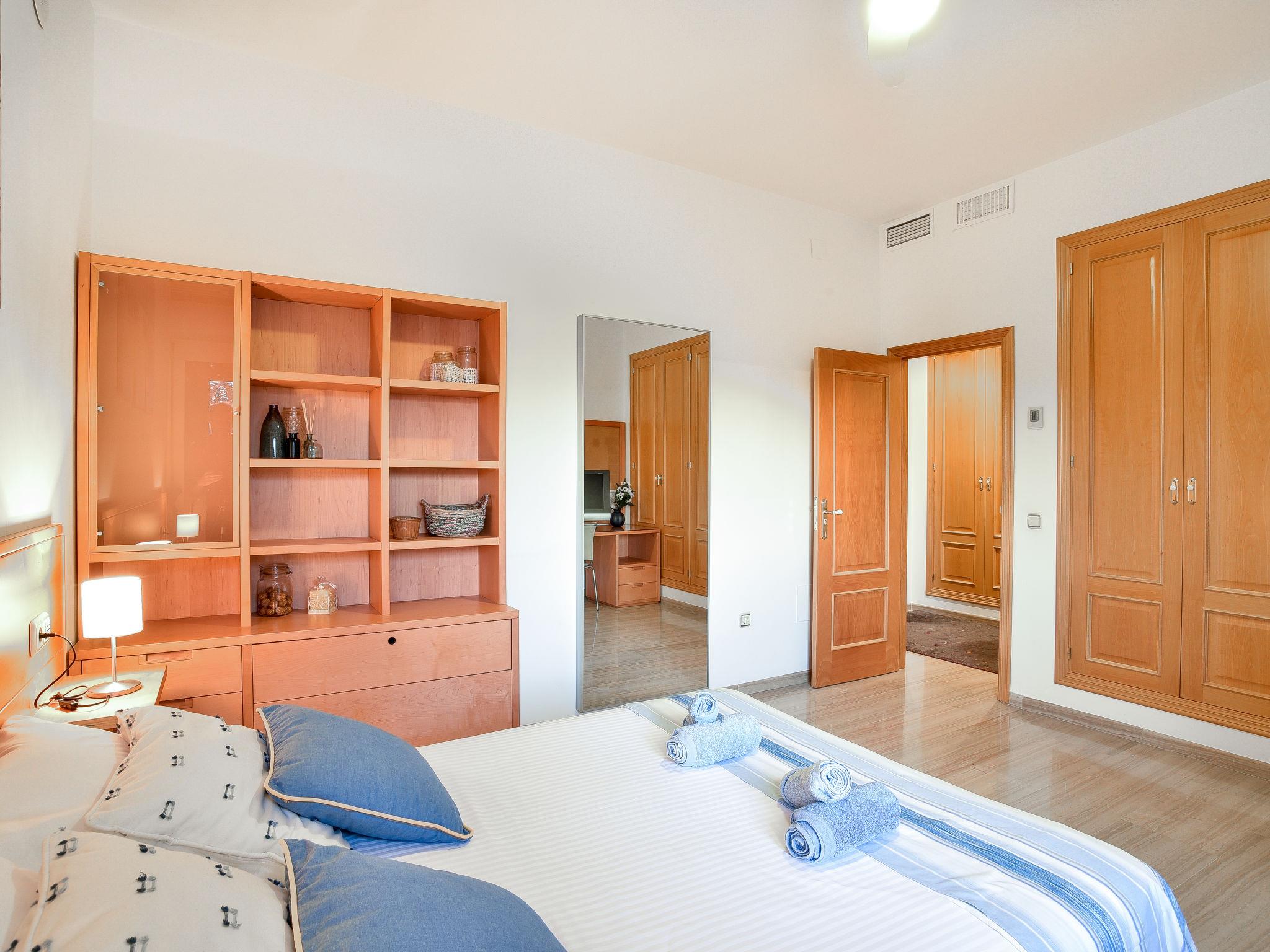 "El balcón de la cala", 5-room house 200 m2 on 2 levels, south facing position. Spacious and bright, practical and comfortable furnishings: living/dining room 40 m2, south facing position with digital TV. Exit to the terrace, south facing position. 1 room with 2 beds (90 cm, length 190 cm), shower/bidet/WC. 1 room with 2 beds (90 cm, length 190 cm). 1 room with 1 bed (150 cm), bath/bidet/WC. 1 room with 1 bed (135 cm), bath/shower/bidet/WC. Kitchen-/living room 30 m2 (oven, dishwasher, 4 ceramic glass hob hotplates, toaster, microwave, freezer). Exit to the terrace, south facing position. Sep. WC. Upper floor: 8 m2, 1 room with 1 bed (90 cm, length 180 cm), shower/WC. Large terrace 20 m2, south facing position, large patio 30 m2, south facing position. Terrace furniture, barbecue, deck chairs (4). Marvellous panoramic view of the sea. Facilities: washing machine, iron, hair dryer. Internet (WiFi, free). Please note: non-smokers only. TV only ES. VFT/MA/30320 // Reg. Nr.: ESFCTU0000290250009893030000000000000000VUT/MA/303201