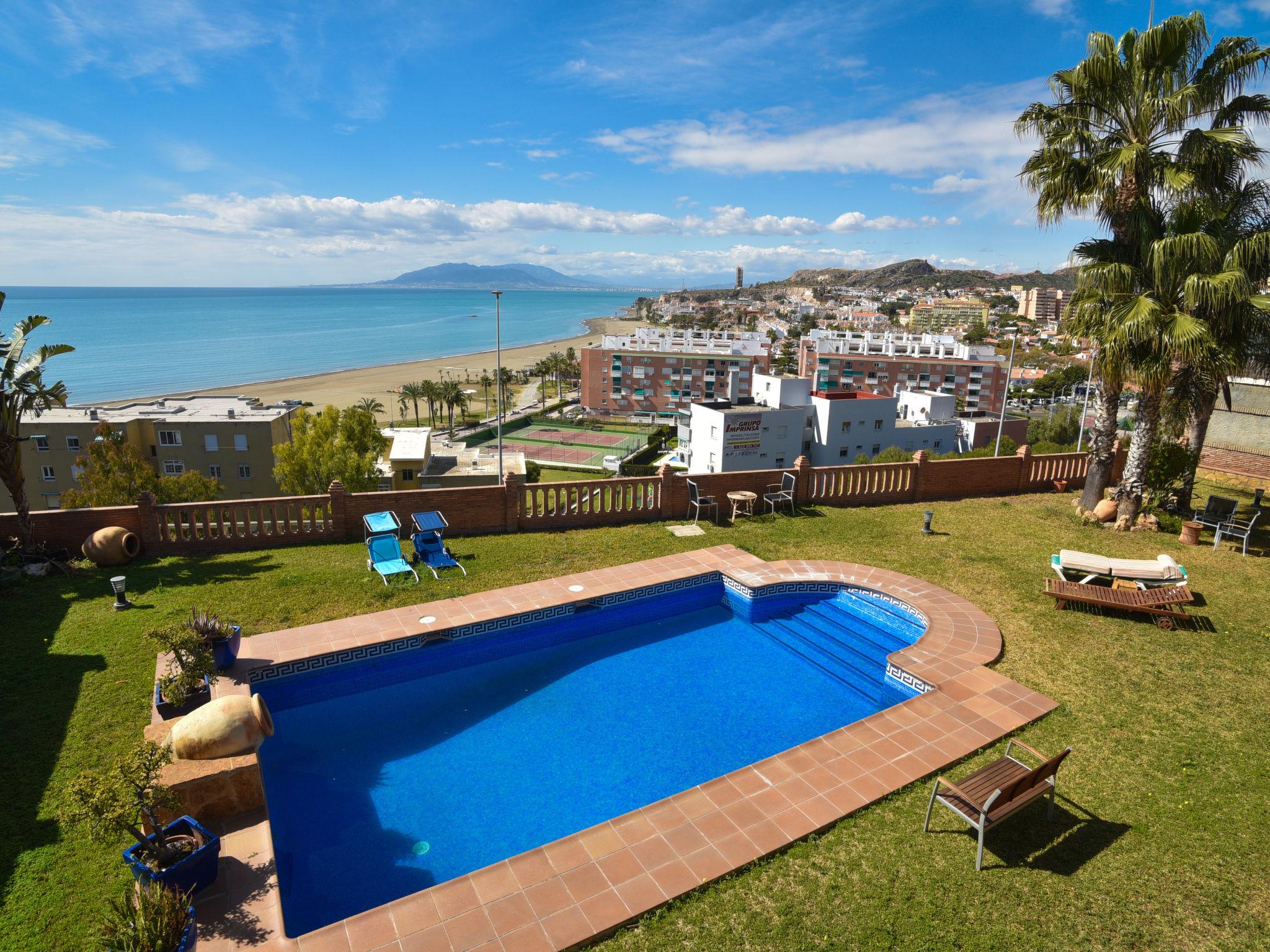 Rincón de la Victoria: Large, comfortable house "El balcón de la cala", built in 2004. In a quiet, sunny, elevated position, 600 m from the sea, south facing position. Pool maintenance by the owner/gardener. Private: with lawn 80 m2 trees, swimming pool angular (8 x 4 m, depth 120 - 220 cm, seasonal availability: 01.Jan. - 31.Dec.) with salt water. Shower/WC in the pool area, barbecue. In the house: WiFi, sun terrace, central heating system, air conditioning, washing machine. Parking (for 3 cars). Shop, supermarket 800 m, shopping centre 1 km, bakery 800 m, bus stop "walking distance" 300 m, sandy beach "walking distance" 600 m. Golf course (18 hole) 4 km. The owner does not accept any youth groups. Neighbourhood highly sensitive to noise. Quietness and good behaviour expected.