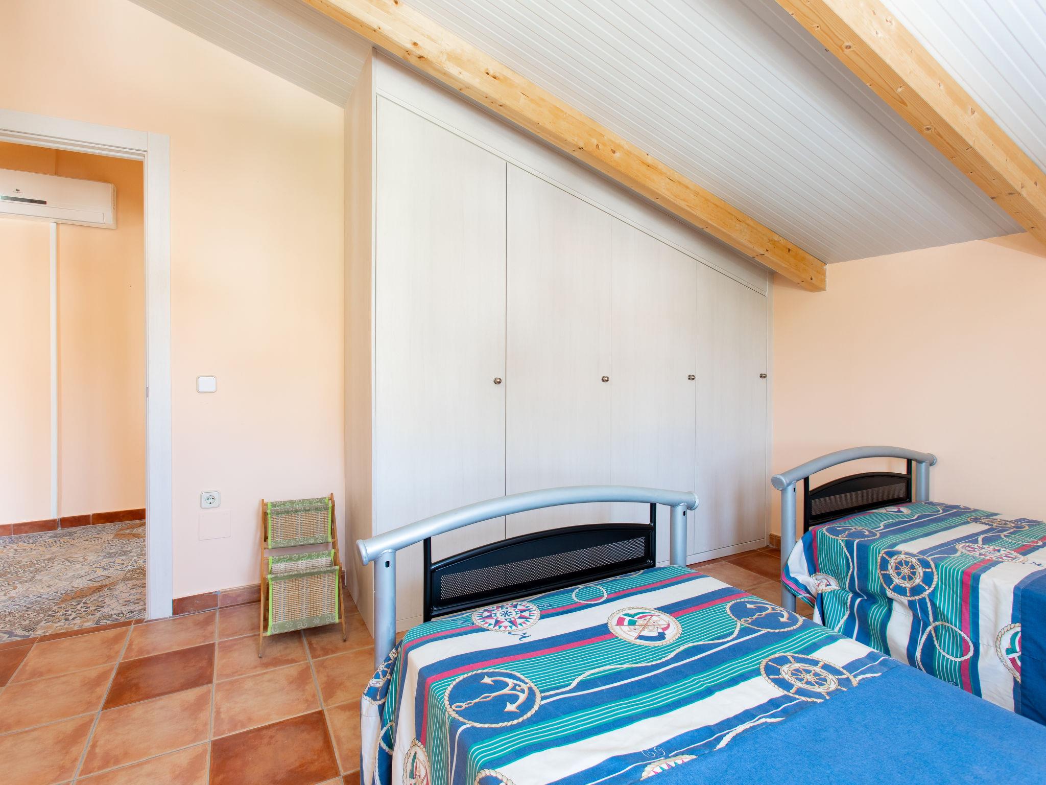 "Riomar Beach House", 4-room house 100 m2 on 2 levels, south facing position. Simple and comfortable furnishings: living/dining room with digital TV and air conditioning. Exit to the patio. 1 room with 1 french bed (1 x 135 cm, length 190 cm). Open kitchen (dishwasher, 4 ceramic glass hob hotplates, toaster, microwave, freezer, electric coffee machine) with air conditioning. Bath/shower. Upper floor: 1 room with 2 beds (90 cm, length 190 cm). 1 room with 2 beds (90 cm, length 190 cm). Bath/WC. Boiler (80 litres). Patio 20 m2, south facing position and west facing position. Terrace furniture, covered balcony. Facilities: washing machine, iron, mosquito net, hair dryer. Internet (WiFi, free). Garage on the property. Please note: TV only ES. VFT/MA/65061 // Reg. Nr.: ESFCTU0000290250002135830000000000000000VFT/MA/650614