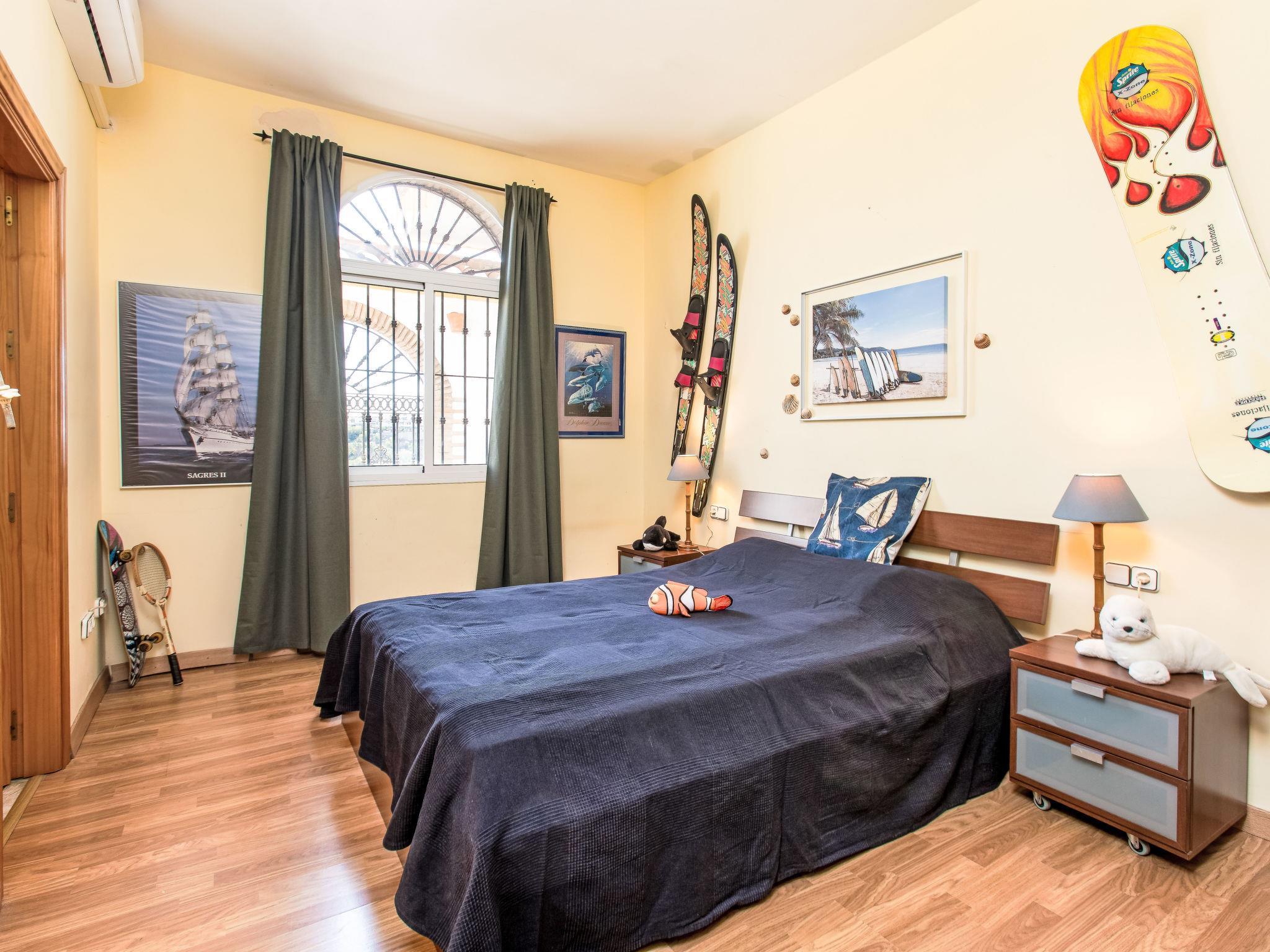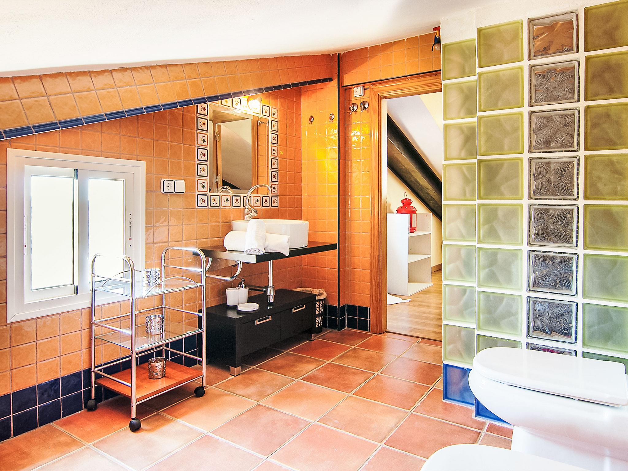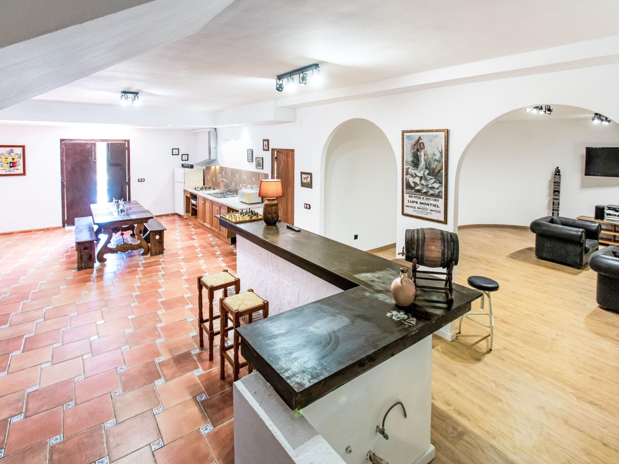 "Paraje los cabreras", 8-room house 413 m2 on 3 levels, south-east facing position. Spacious, practical furnishings: living room with open-hearth fireplace, digital TV, air conditioning, forced-air heating and boiler (100 litres). 1 room with 1 french bed (1 x 135 cm), shower/WC, air conditioning and forced-air heating. Living/dining room. Exit to the terrace. Open kitchen (5 hot plates, oven, dishwasher, toaster, kettle, microwave, freezer, electric coffee machine, cooking island) with dining table. Exit to the terrace. Sep. WC. On the lower ground floor: 1 room with 1 french bed (1 x 150 cm, length 200 cm), fan. 1 room with 1 french bed (1 x 150 cm, length 200 cm), fan. Lounge with TV. Bath/shower. Upper floor: 1 room with 1 french bed (1 x 150 cm, length 200 cm), bath/bidet/WC, air conditioning and forced-air heating. Exit to the terrace, south facing position. 1 room with 1 french bed (1 x 150 cm, length 200 cm). Exit to the balcony. 2nd upper floor: with sloping ceilings, 1 room with 2 french beds (1 x 150 cm, length 200 cm), shower/bidet/WC, air conditioning and forced-air heating. Shower/bidet/WC. Patio. Terrace furniture, barbecue, deck chairs (4). Partial view of the sea. Facilities: washing machine, iron, hair dryer. Internet (WiFi, free). Parking. Please note: TV only ES. VUT/MA/02216 // Reg. Nr.: ESFCTU0000290250003268700000000000000000VUT/MA/022168