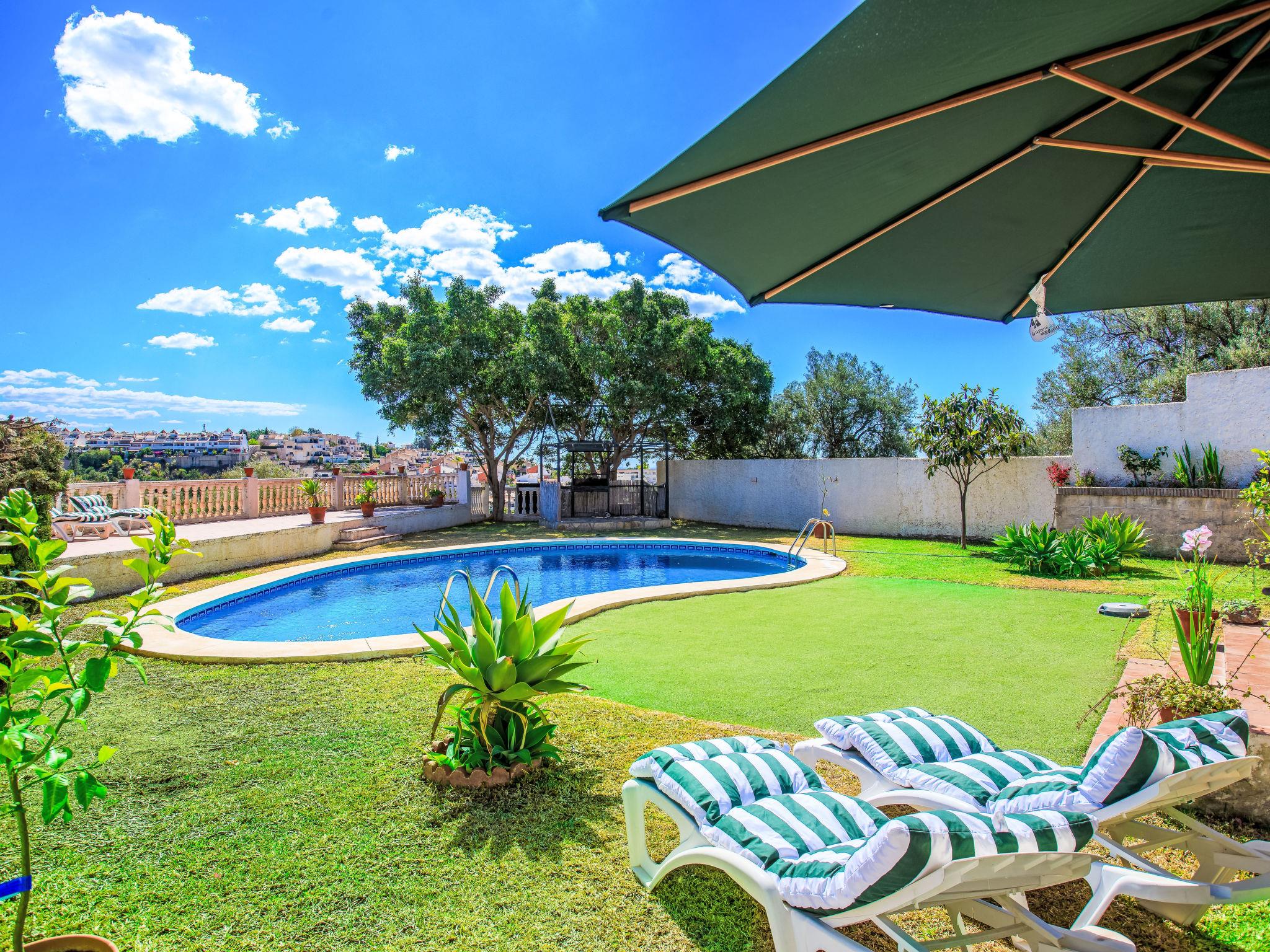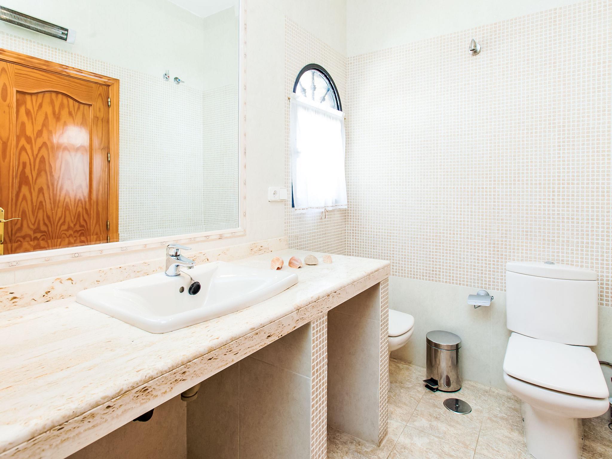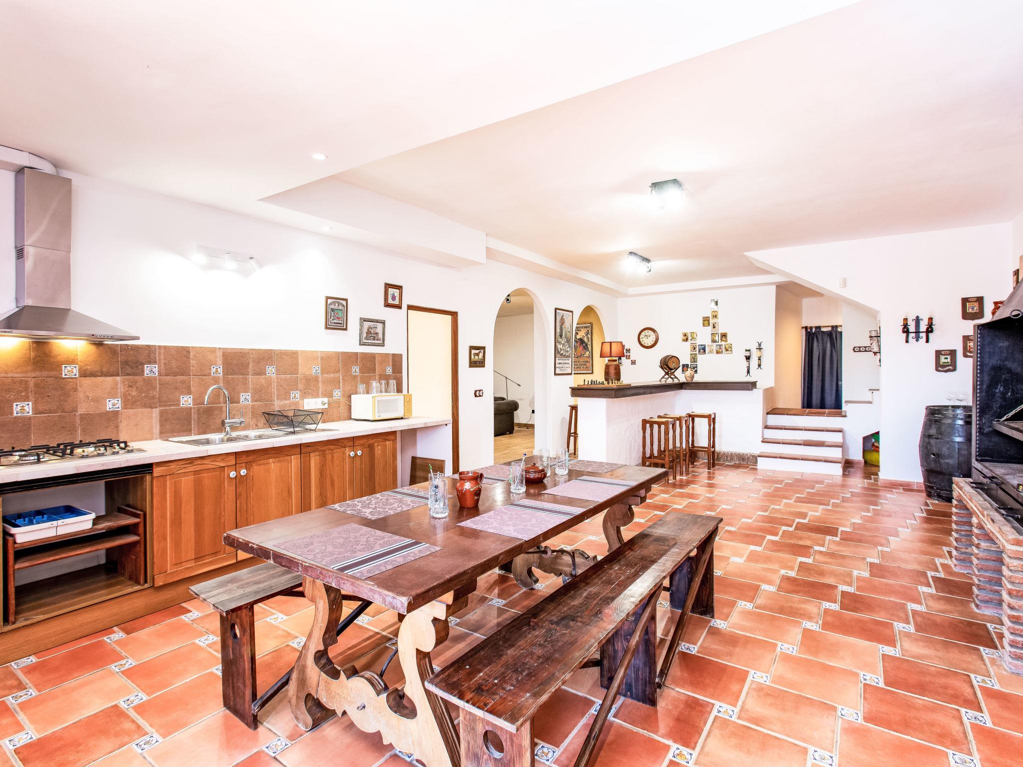 "Paraje los cabreras", 8-room house 413 m2 on 3 levels, south-east facing position. Spacious, practical furnishings: living room with open-hearth fireplace, digital TV, air conditioning, forced-air heating and boiler (100 litres). 1 room with 1 french bed (1 x 135 cm), shower/WC, air conditioning and forced-air heating. Living/dining room. Exit to the terrace. Open kitchen (5 hot plates, oven, dishwasher, toaster, kettle, microwave, freezer, electric coffee machine, cooking island) with dining table. Exit to the terrace. Sep. WC. On the lower ground floor: 1 room with 1 french bed (1 x 150 cm, length 200 cm), fan. 1 room with 1 french bed (1 x 150 cm, length 200 cm), fan. Lounge with TV. Bath/shower. Upper floor: 1 room with 1 french bed (1 x 150 cm, length 200 cm), bath/bidet/WC, air conditioning and forced-air heating. Exit to the terrace, south facing position. 1 room with 1 french bed (1 x 150 cm, length 200 cm). Exit to the balcony. 2nd upper floor: with sloping ceilings, 1 room with 2 french beds (1 x 150 cm, length 200 cm), shower/bidet/WC, air conditioning and forced-air heating. Shower/bidet/WC. Patio. Terrace furniture, barbecue, deck chairs (4). Partial view of the sea. Facilities: washing machine, iron, hair dryer. Internet (WiFi, free). Parking. Please note: TV only ES. VUT/MA/02216 // Reg. Nr.: ESFCTU0000290250003268700000000000000000VUT/MA/022168