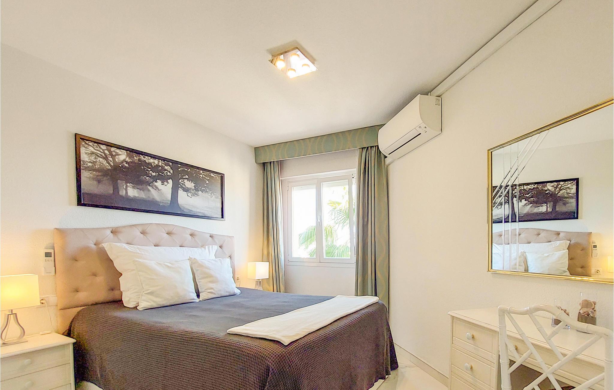Fra den dejlige terrasse er der en pragtfuld udsigt over havet. I bor mellem Fuengirola og Marbella, i et fantastisk område med have, fælles pool og en børnepool. Her er også liggestole til behageligt ophold i solen. I kan gå til butikker, restaurant og ikke mindst stranden og havet.